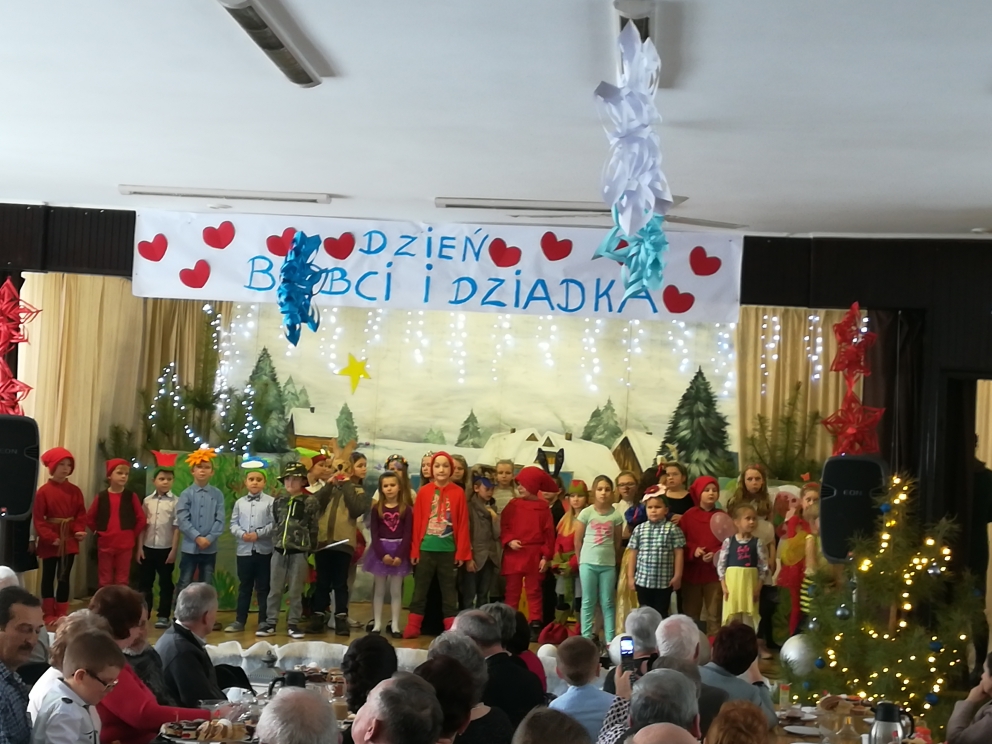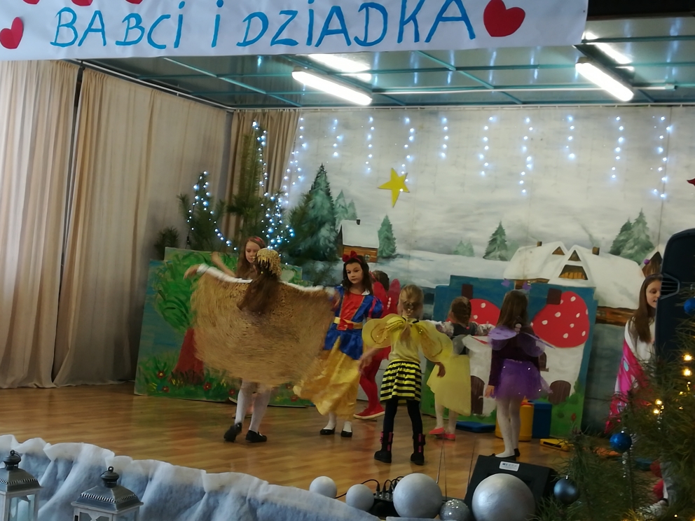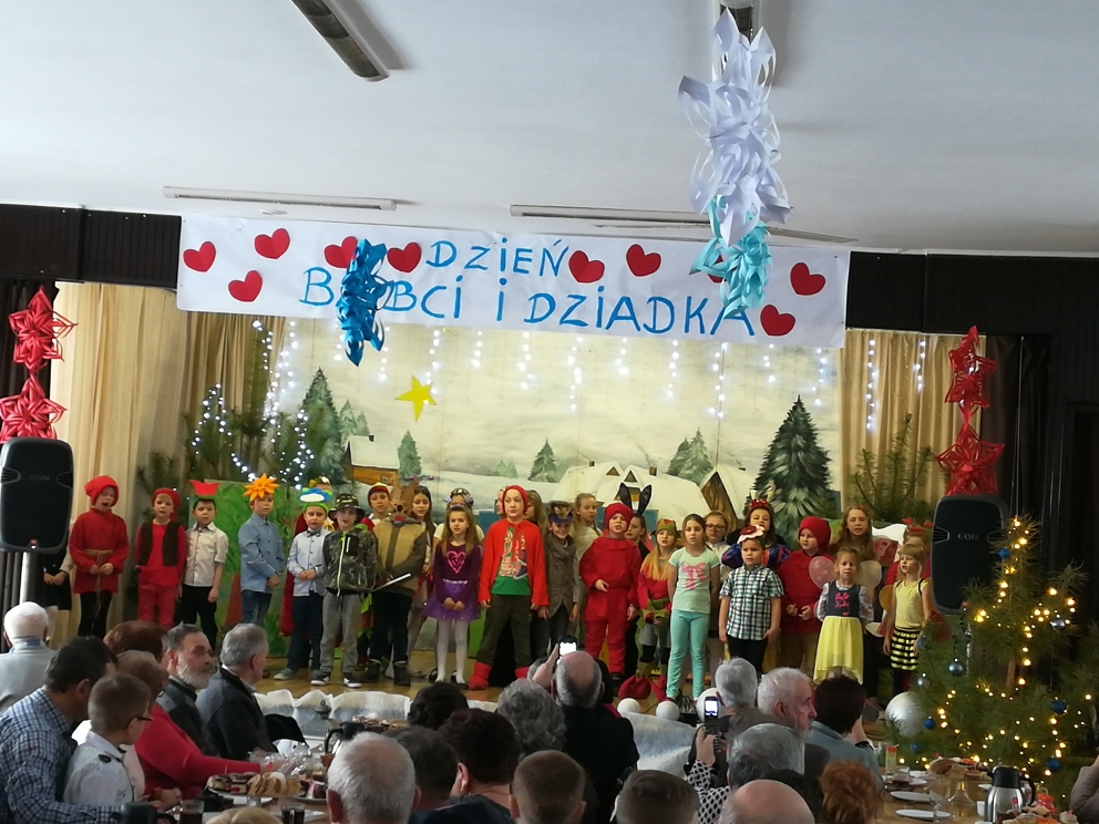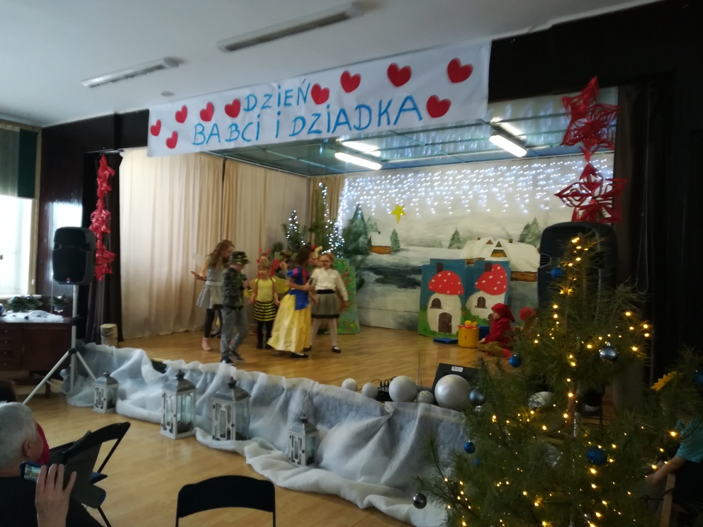 W naszej szkole uroczystości z okazji tych świąt są tradycją na stałe wpisaną w repertuar imprez szkolnych. W tym roku szkolnym spotkanie z Babciami i Dziadkami przygotowały klasy 0-III. Program artystyczny był bardzo urozmaicony. Najmłodsi uczniowie recytowali wiersze i śpiewali piosenki. Dzieci z klas I-III wykonali przedstawienie pt.:” Królewna Śnieżka”. Dziadkowie z wielkim zachwytem podziwiali zdolności aktorskie swoich wnuków. Na zakończenie spotkania wszyscy Dziadkowie otrzymali własnoręcznie wykonane laurki, a słodki poczęstunek był miłym dodatkiem takiego spotkania.