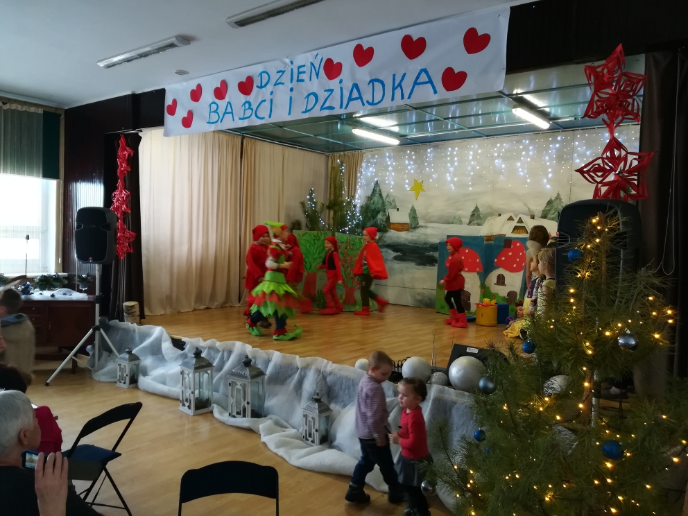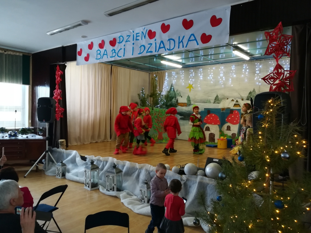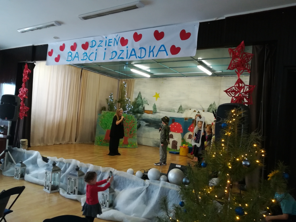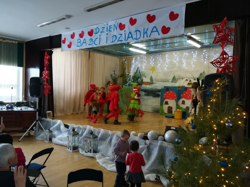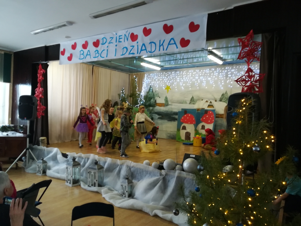 W naszej szkole uroczystości z okazji tych świąt są tradycją na stałe wpisaną w repertuar imprez szkolnych. W tym roku szkolnym spotkanie z Babciami i Dziadkami przygotowały klasy 0-III. Program artystyczny był bardzo urozmaicony. Najmłodsi uczniowie recytowali wiersze i śpiewali piosenki. Dzieci z klas I-III wykonali przedstawienie pt.:” Królewna Śnieżka”. Dziadkowie z wielkim zachwytem podziwiali zdolności aktorskie swoich wnuków. Na zakończenie spotkania wszyscy Dziadkowie otrzymali własnoręcznie wykonane laurki, a słodki poczęstunek był miłym dodatkiem takiego spotkania.
