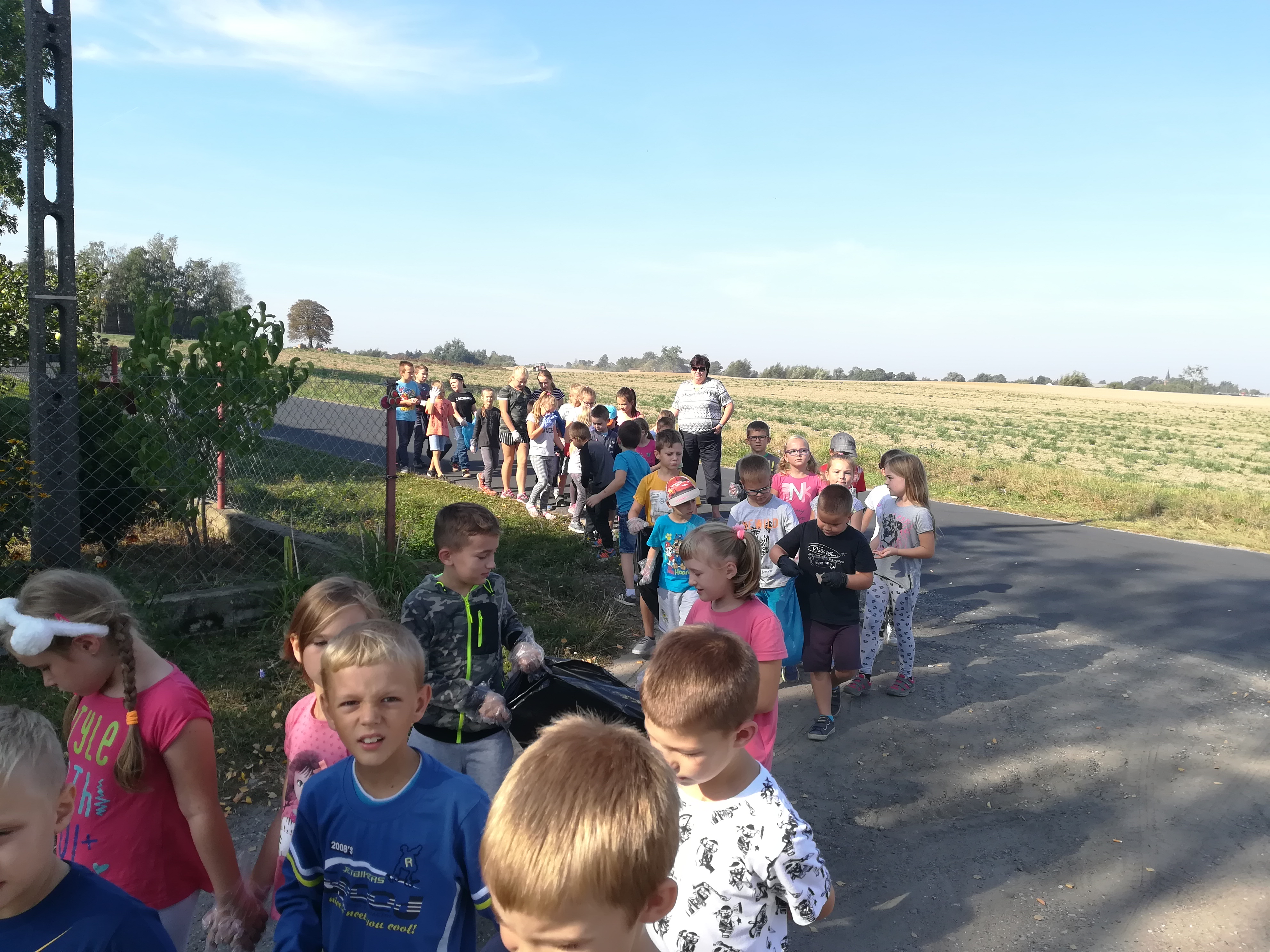 Czy można zrobić coś dobrego dla naszej planety? Można! W piątek 21 września, uczniowie naszej szkoły biorąc udział w ogólnopolskiej akcji „Sprzątanie świata” wzięli się do roboty i usunęli śmieci zalegające w naszej okolicy. Dzięki wielkiemu zaangażowaniu uczniów wszystkich klas nazbieraliśmy wiele worków pełnych odpadów. Tegoroczne działania uświadomiły uczniom, że wyrzucone do wody lub porzucone w lesie szklane i plastikowe butelki, foliowe torby i opakowania po produktach spożywczych, stwarzają bezpośrednie zagrożenie dla naszego środowiska. Praca na rzecz ochrony środowiska trwa w naszej szkole przez cały rok. Dziękujemy uczniom za ich ogromne zaangażowanie w tę akcję!