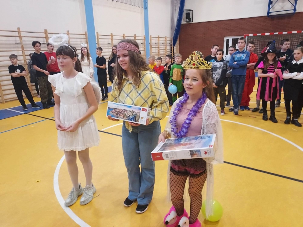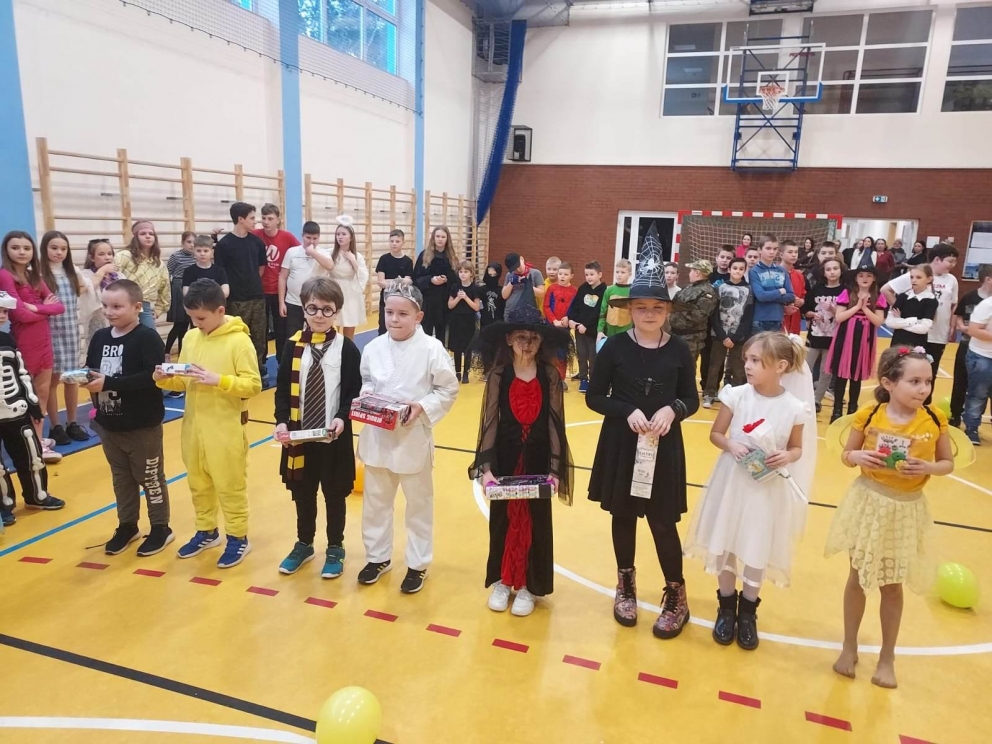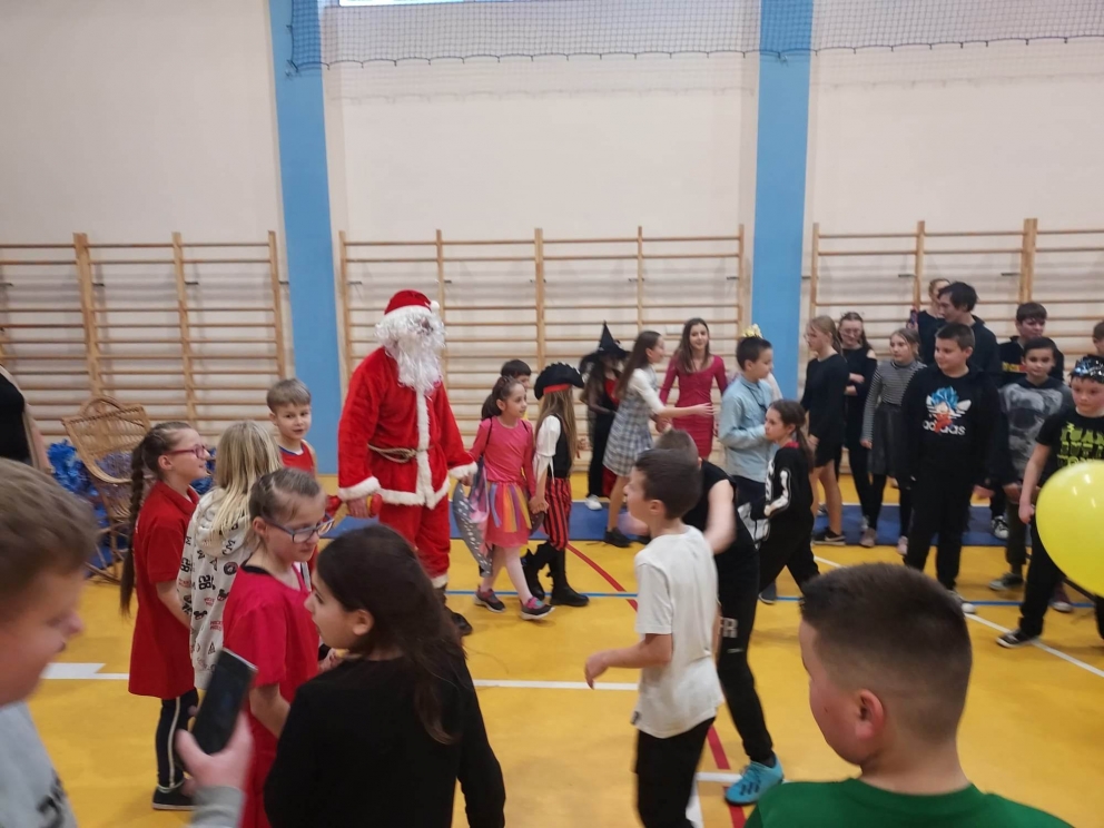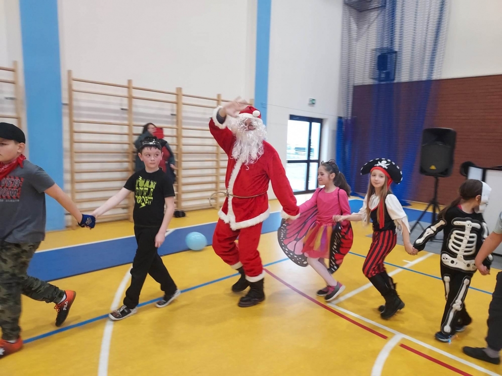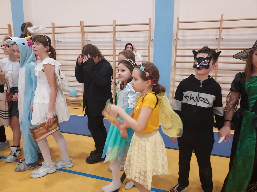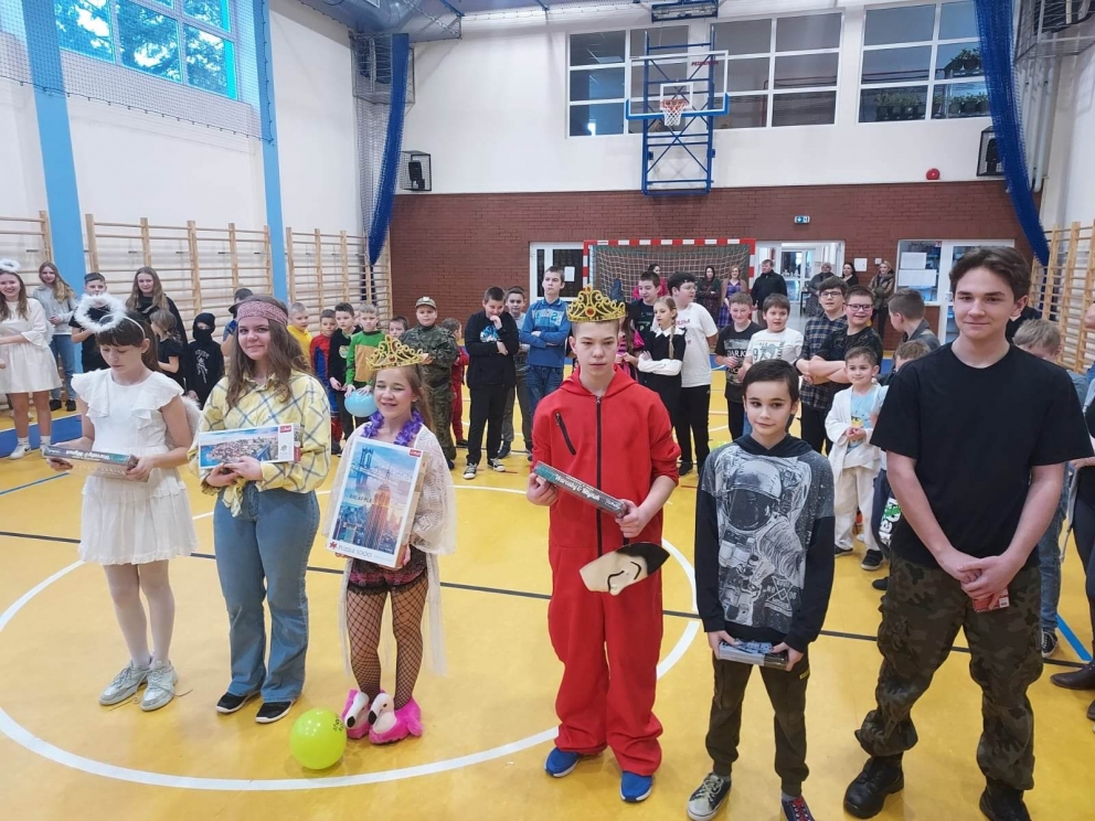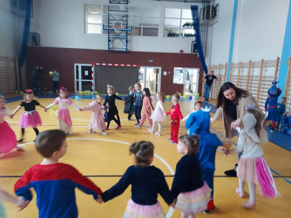Karnawał to wspaniały czas na organizowanie hucznej zabawy! Taka właśnie odbyła się w murach naszej szkoły 27 stycznia. Uczestnicy klas młodszych i przedszkola przybyli w pięknych przebraniach. Na balu nie brakowało bohaterów kreskówek i filmów księżniczek, wróżek. Po sali przemykali się również policjanci, żołnierze, Superman, Batman. Niektórzy uczniowie ukryli swoje twarze pod maskami, przez co byli nie do poznania. Do zabawy przyłączyli się również rodzice. Zabawa została prowadzona prze profesjonalnego didżeja pana Wojciecha Brzozowskiego. Do tańca i zabaw porywała wszystkich skoczna i głośna muzyka. Oprawa muzyczna prowadzona przez didżeja przy błyskach kolorowych świateł oraz efektach specjalnych sprawiła, że nikt nie schodził z parkietu naszej sali. W trakcie balu była również przerwa na poczęstunek i złapanie oddechu pomiędzy kolejnymi hitami muzycznymi.
