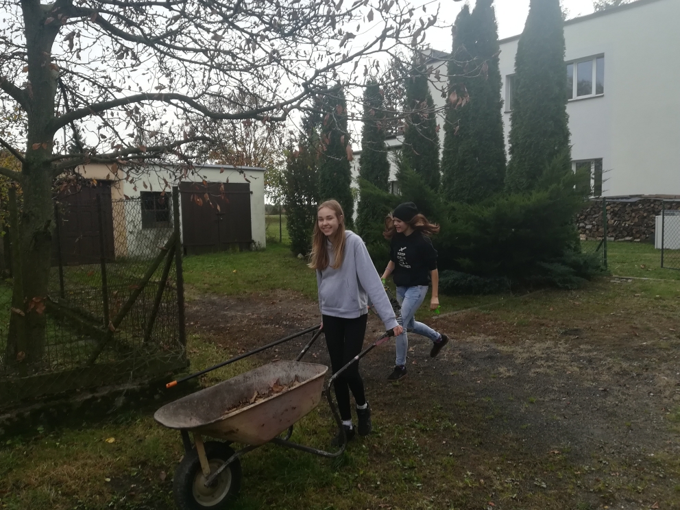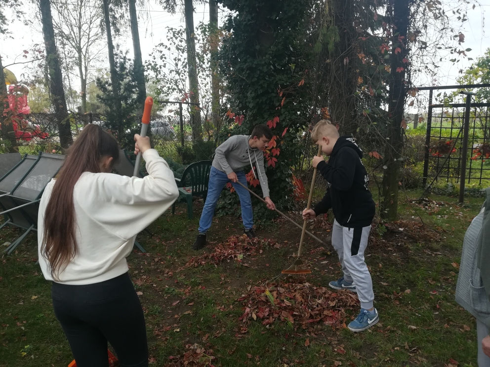 17 października wolontariusze z klasy VIII udali się do pań emerytek mieszkających w pobliżu szkoły, w celu zrobienia jesiennych porządków. Młodzież grabiła liście, wyrywała chwasty. Uczniowie za swoje wielkie serce otrzymali słodycze.