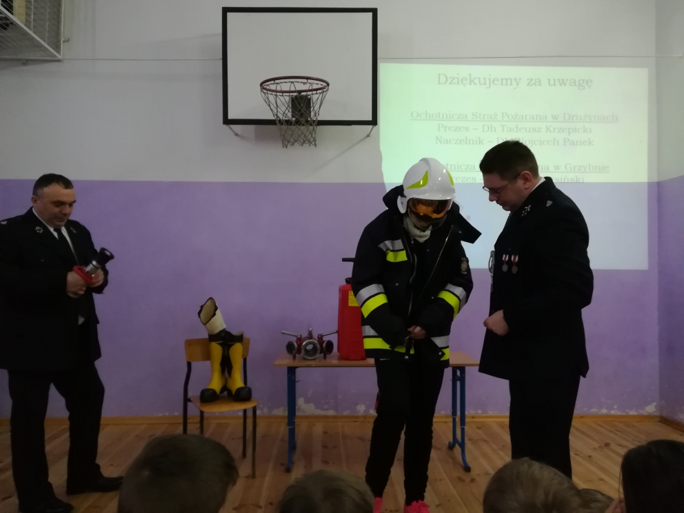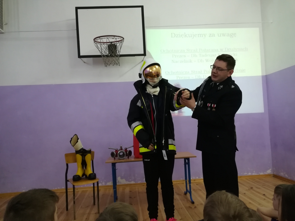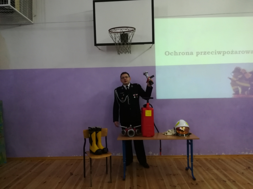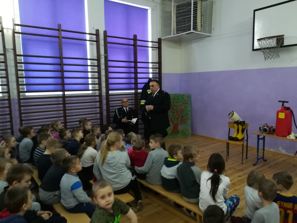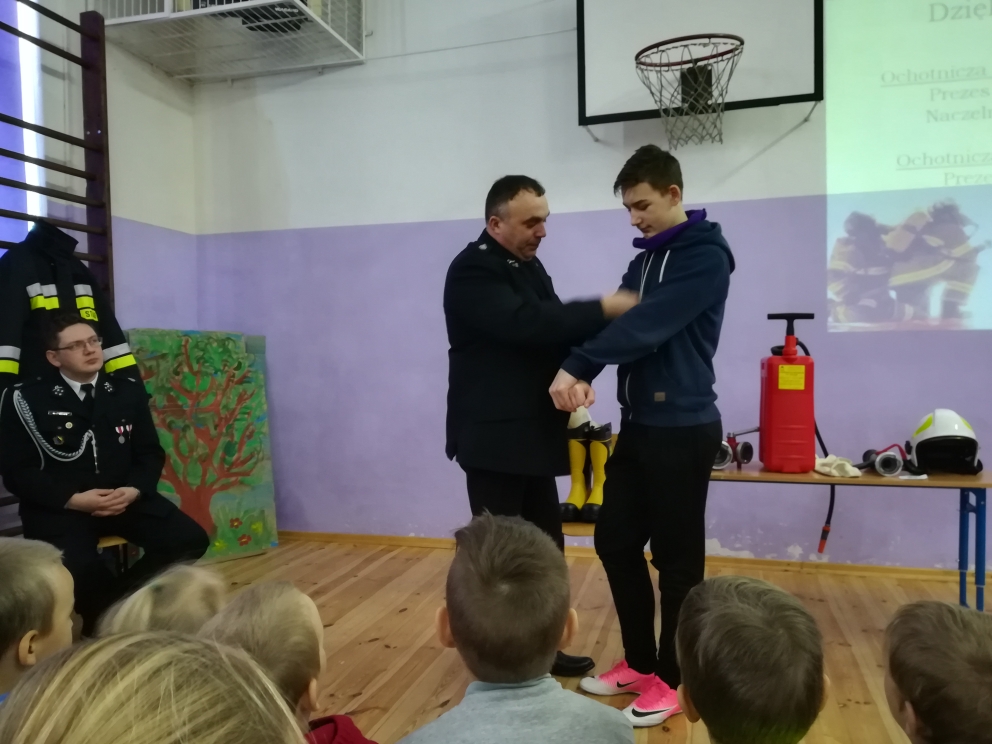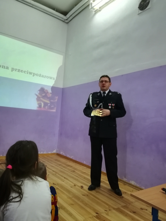 W związku z tym uczniów naszej szkoły odwiedził przedstawiciel policji i straży pożarnej, który przeprowadził pogadankę na temat bezpiecznego spędzania ferii. Uczniowie brali aktywny udział w prowadzonej przez policjanta rozmowie. Ponadto pan strażak przybliżył dzieciom trudy pracy strażaka. Uczniowie mieli okazję przymierzyć mundur strażacki i przez chwilę poczuć się prawdziwymi strażakami.