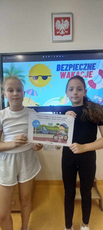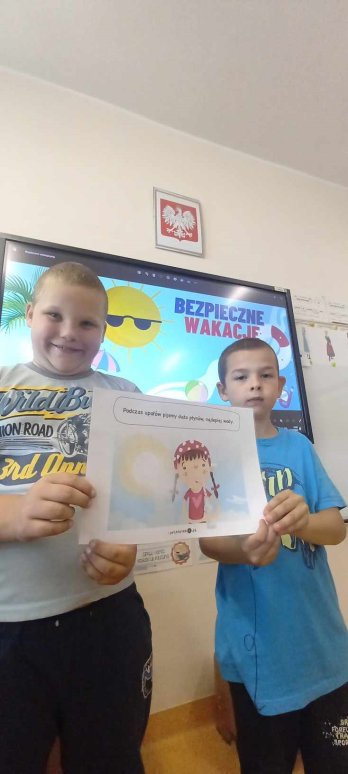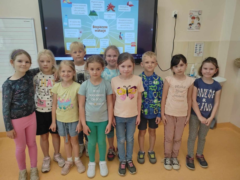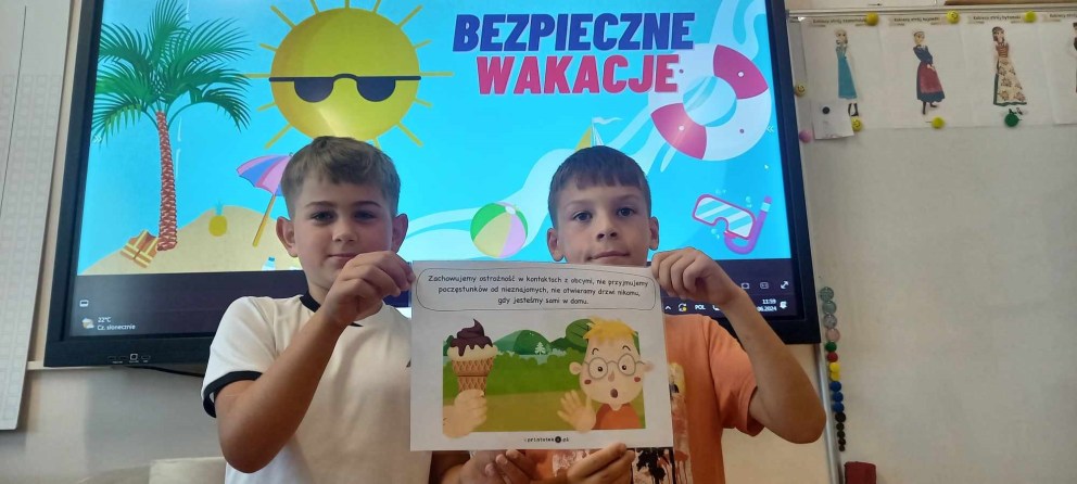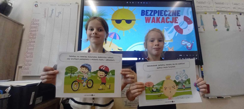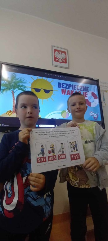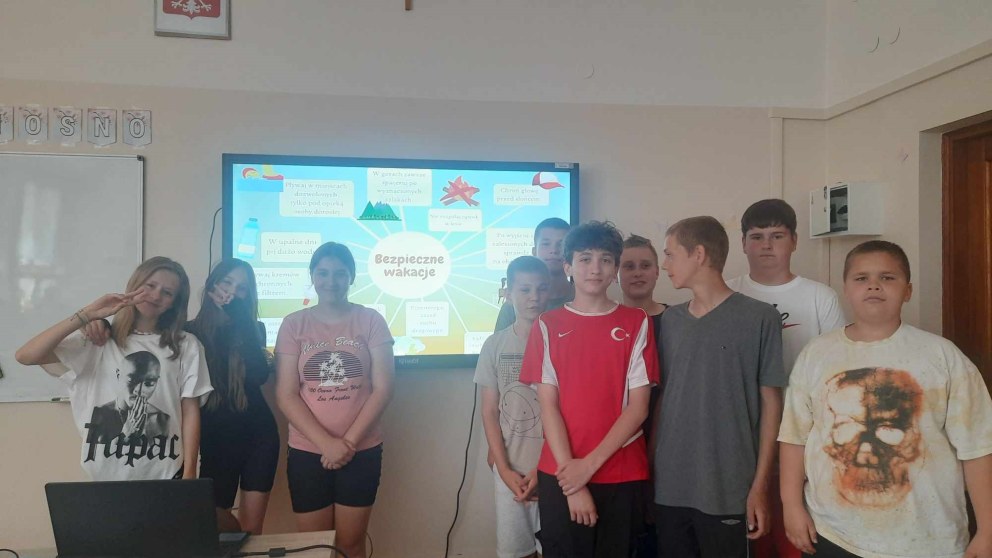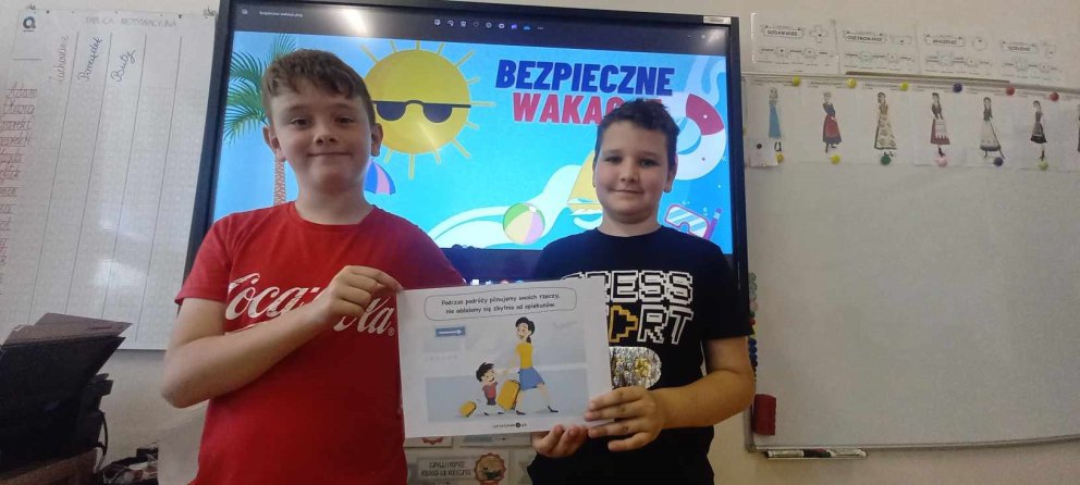 Wakacje to beztroski czas odpoczynku i relaksu, dlatego w tym czasie, w szczególny sposób należy dbać o bezpieczeństwo swoje i innych. W związku z nadchodzącym dwumiesięcznym wypoczynkiem przeprowadzono na godzinach wychowawczych profilaktyczne pogadanki w trakcie, których uczniowie dowiedzieli się, jak bezpiecznie zachowywać się podczas nadchodzących wolnych dni. Wspólnie przypomnieli sobie, jak bezpiecznie poruszać się po drodze oraz spędzać czas wolny w domu, na placu zabaw, nad wodą, w lesie, czy w górach. Wychowawcy zwrócili szczególną uwagę na wzmożoną czujność w stosunku do osób nieznajomych. Przypomnieli numery telefonów alarmowych.