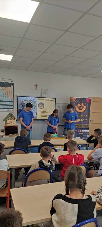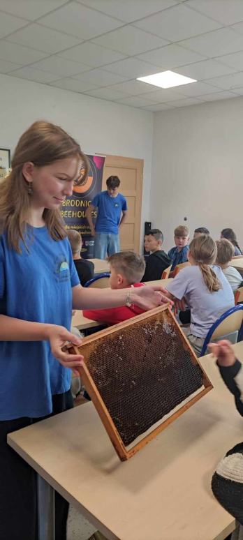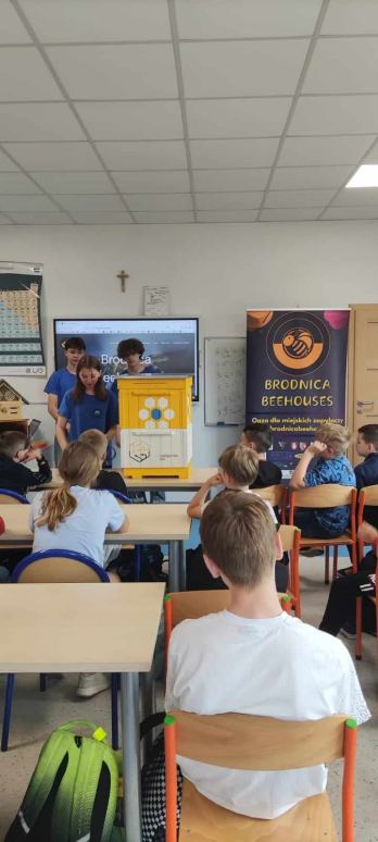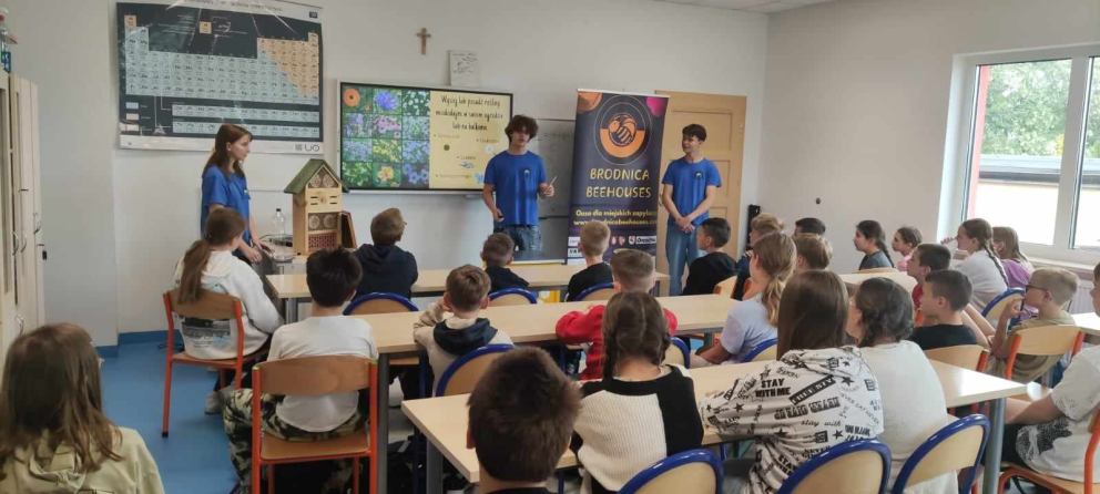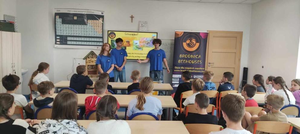 24 maja odwiedzili naszą szkołę: Zuzanna Czupryńska, Jędrzej Pisarek, Wiktor Gencel uczniowie Centrum Kształcenia Zawodowego i Ustawicznego w Brodnicy pod opieką Pana Pawła Cieczko, którzy są twórcami projektu edukacyjnego pt.: ,, BrodnicaBeeHouses-oaza dla małych zapylaczy”. Podczas prelekcji uczniowie klasy IV i V dowiedzieli się: