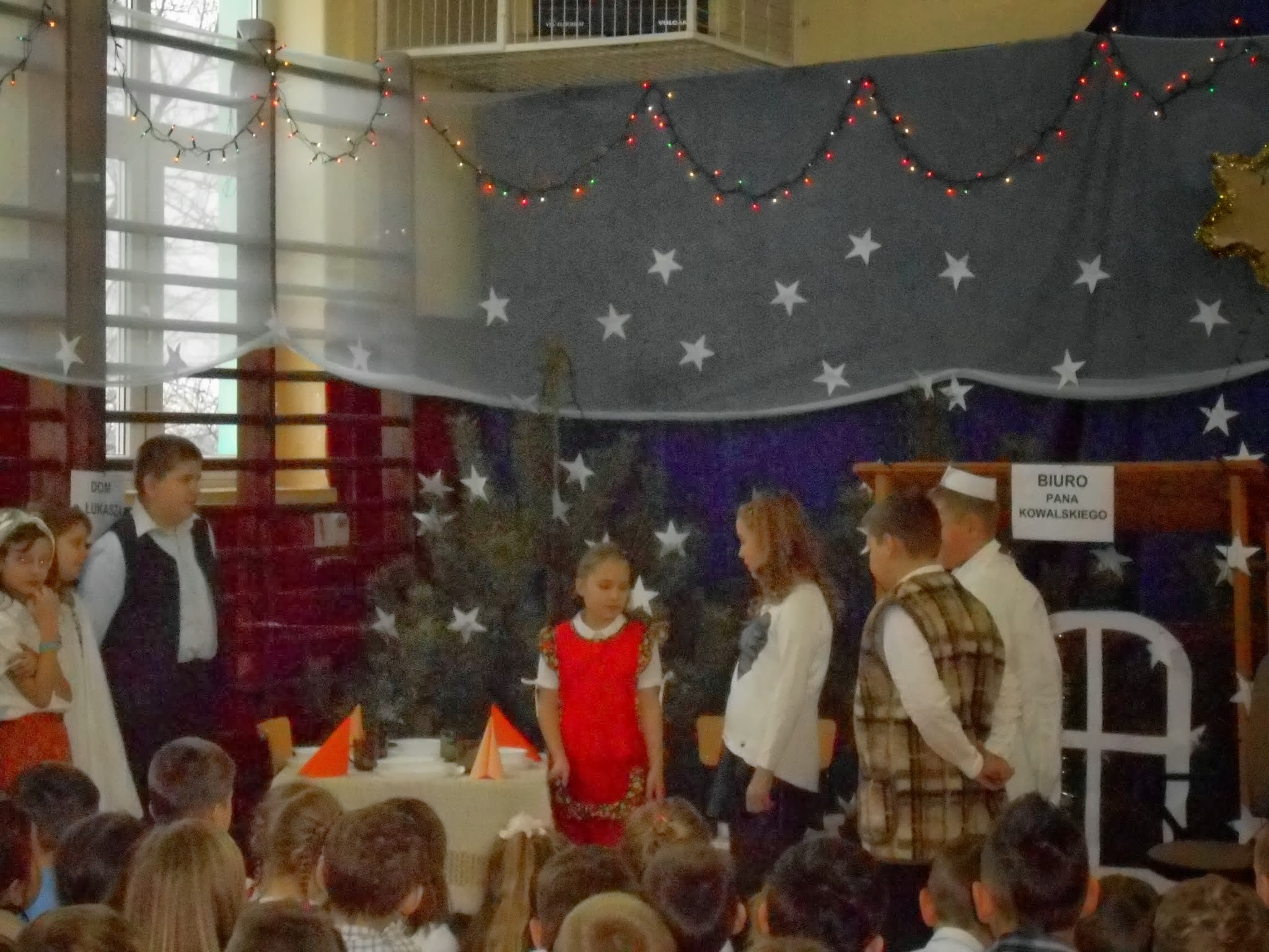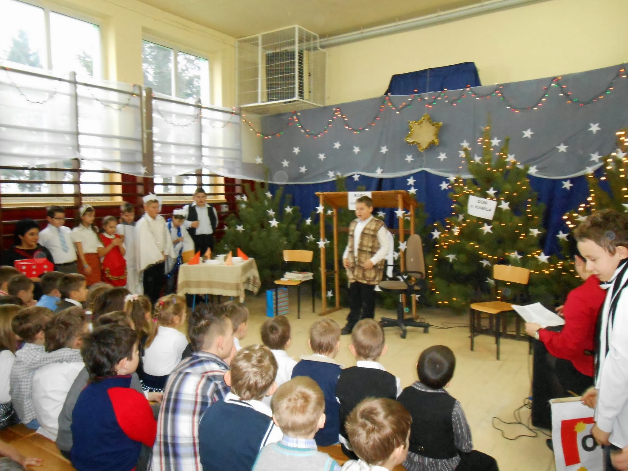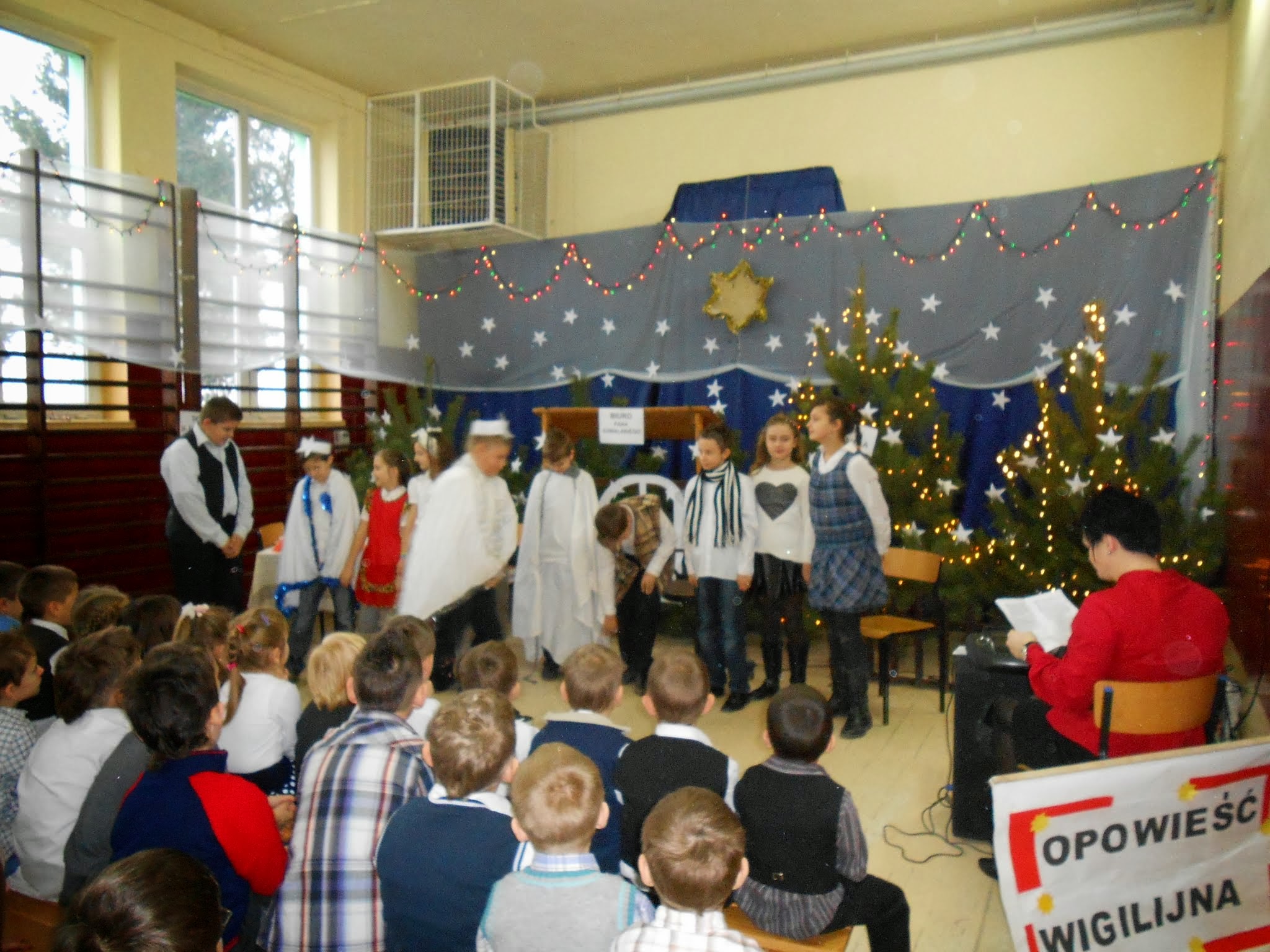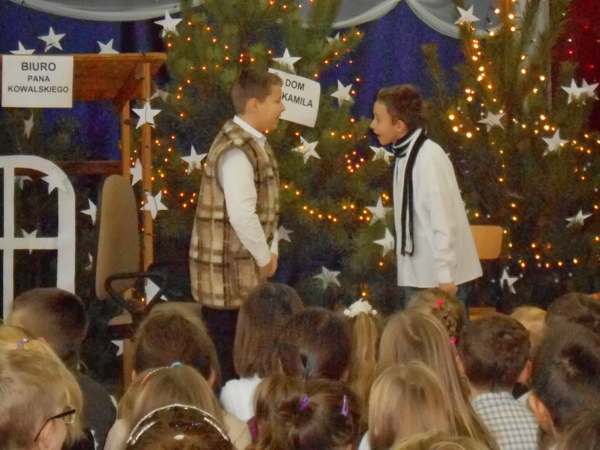 20 grudnia cała społeczność uczniowska obchodziła Wigilię Szkolną. Wszyscy uczniowie zebrali się na sali, gdzie klasa 4 odegrała przygotowane Jasełka. W tym roku przypomnieliśmy sobie ” Opowieść Wigilijną” na podstawie Karola Dickensa, w bardziej współczesnej formie, która bardzo podobała się widowni. Następnie wszyscy razem wraz ze śpiewnikami w rękach śpiewaliśmy kolędy i pastorałki. W rodzinnej atmosferze uczniowie udali się do klas, gdzie czekał na nich słodki poczęstunek, którym zakończyliśmy ostatni dzień w szkole. Następnie wszyscy udali się na zasłużony wypoczynek.