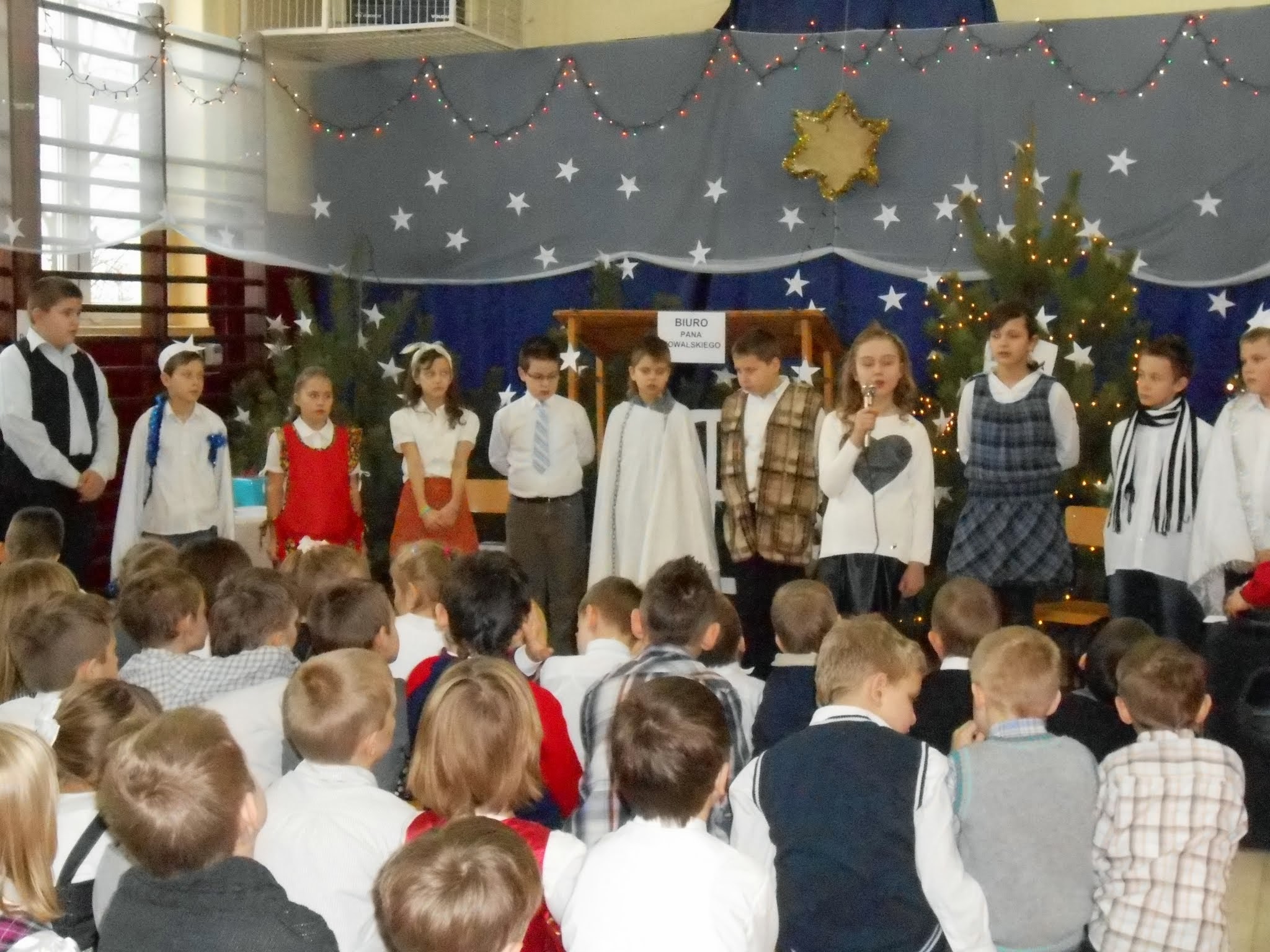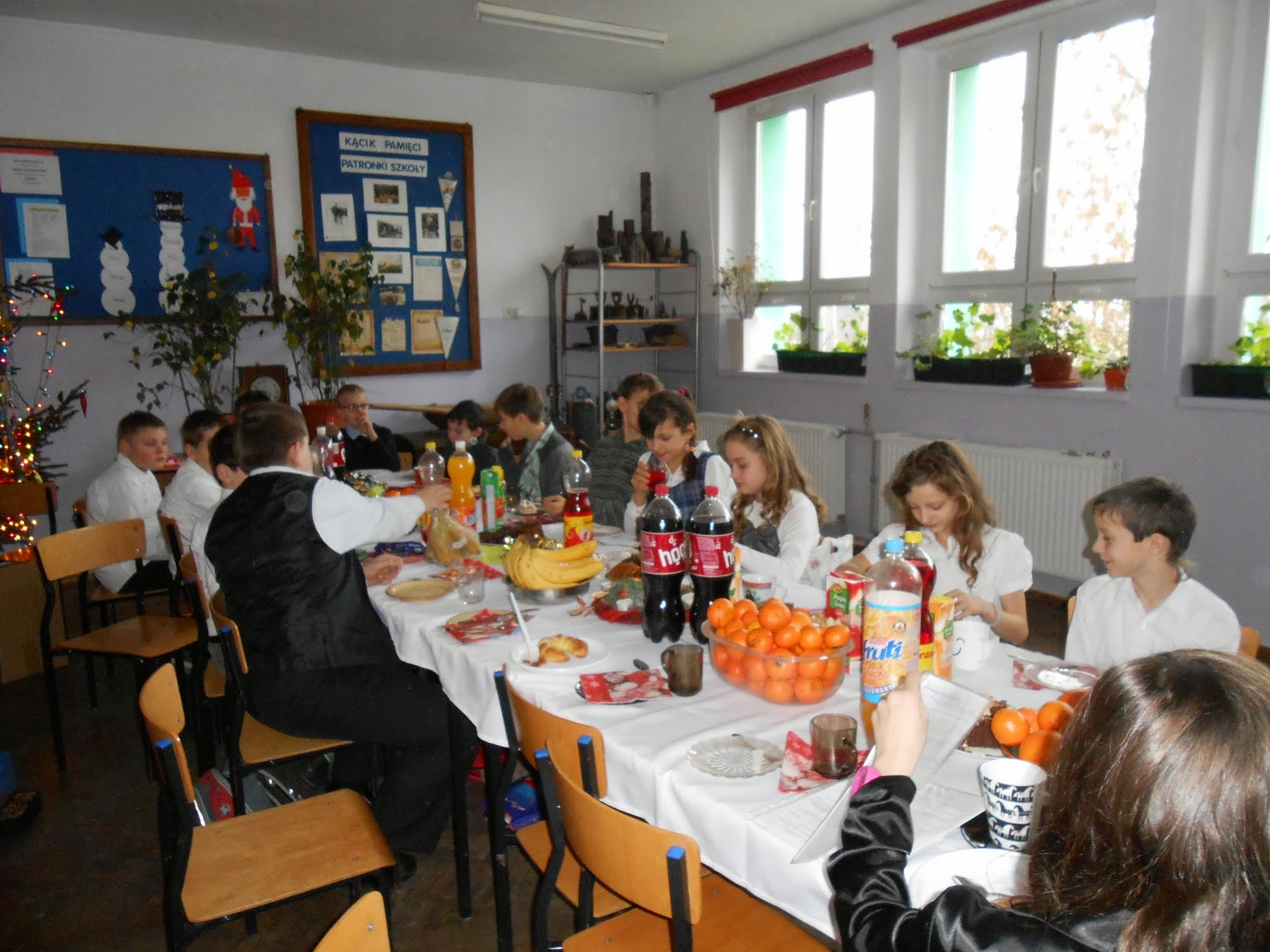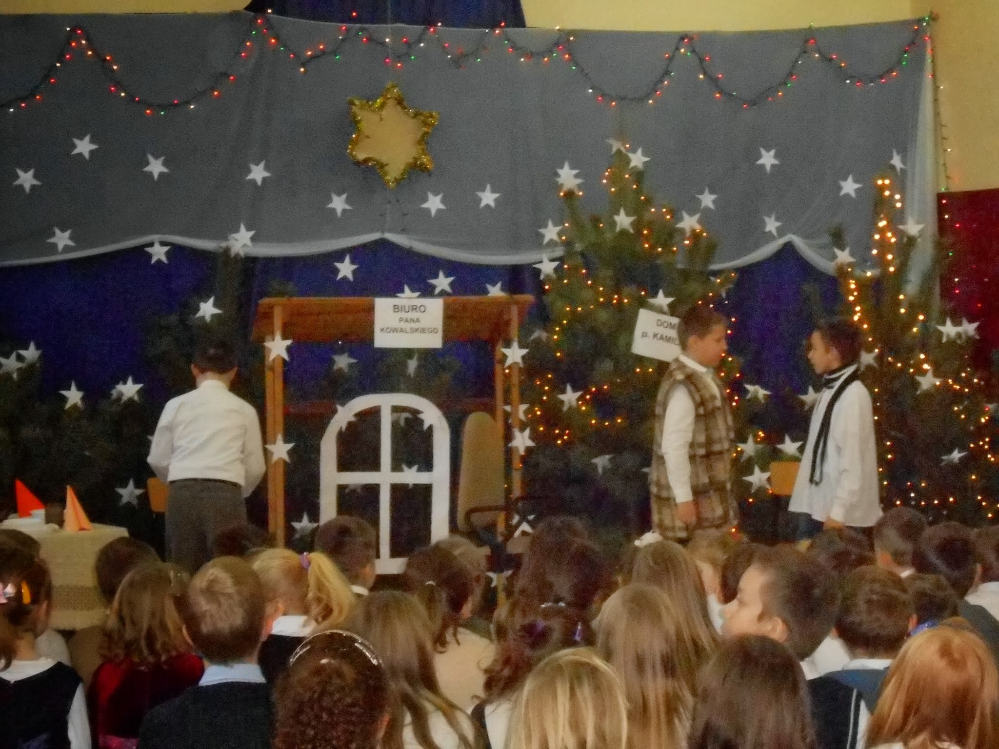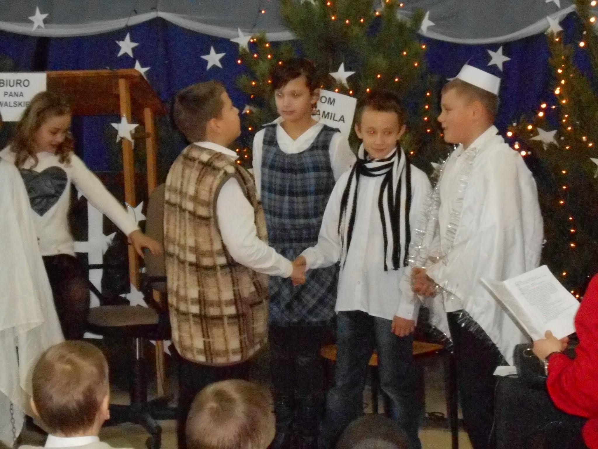 20 grudnia cała społeczność uczniowska obchodziła Wigilię Szkolną. Wszyscy uczniowie zebrali się na sali, gdzie klasa 4 odegrała przygotowane Jasełka. W tym roku przypomnieliśmy sobie ” Opowieść Wigilijną” na podstawie Karola Dickensa, w bardziej współczesnej formie, która bardzo podobała się widowni. Następnie wszyscy razem wraz ze śpiewnikami w rękach śpiewaliśmy kolędy i pastorałki. W rodzinnej atmosferze uczniowie udali się do klas, gdzie czekał na nich słodki poczęstunek, którym zakończyliśmy ostatni dzień w szkole. Następnie wszyscy udali się na zasłużony wypoczynek.