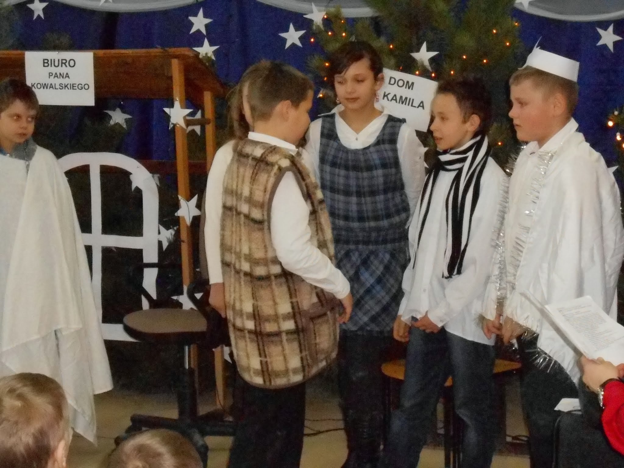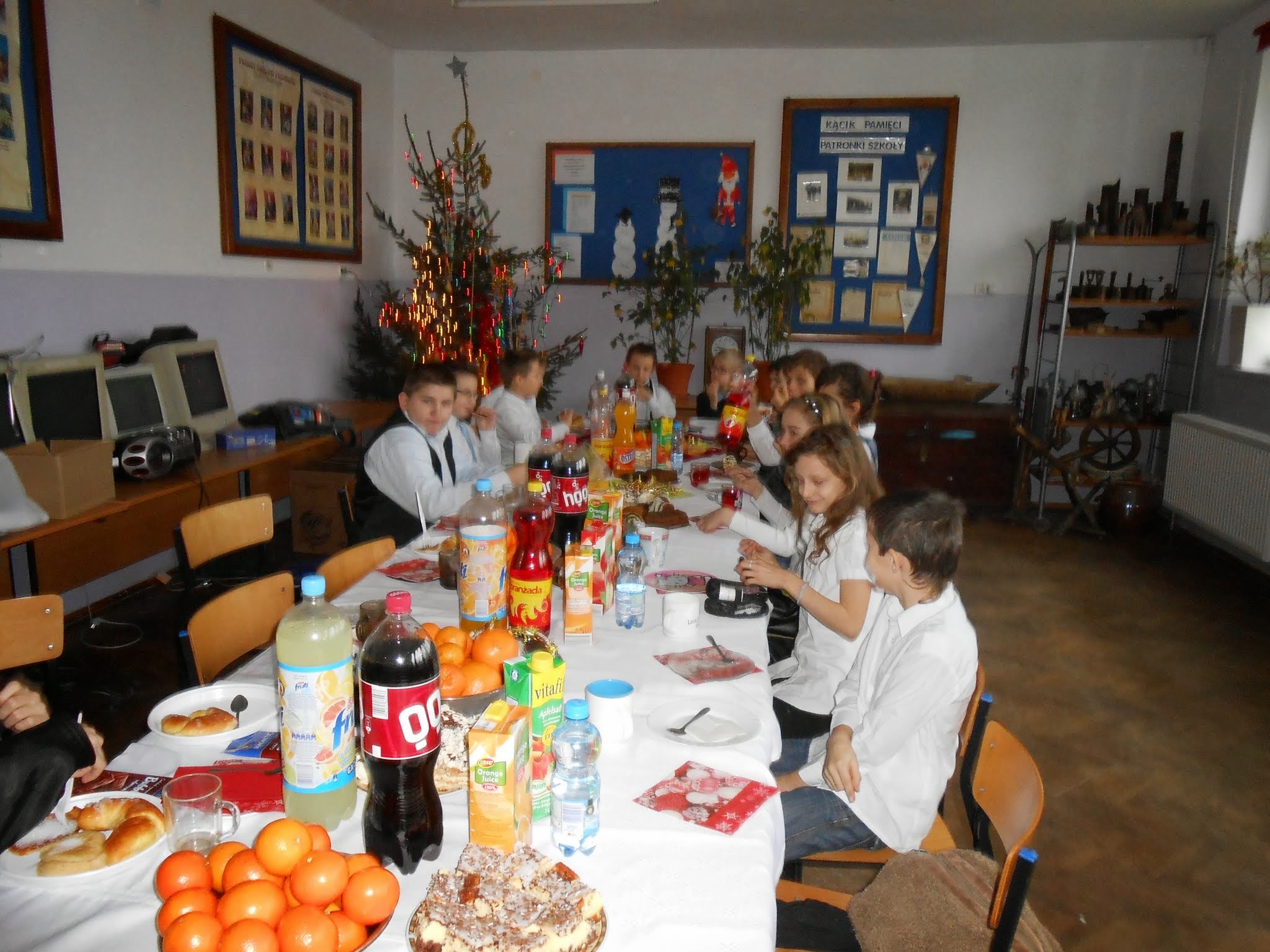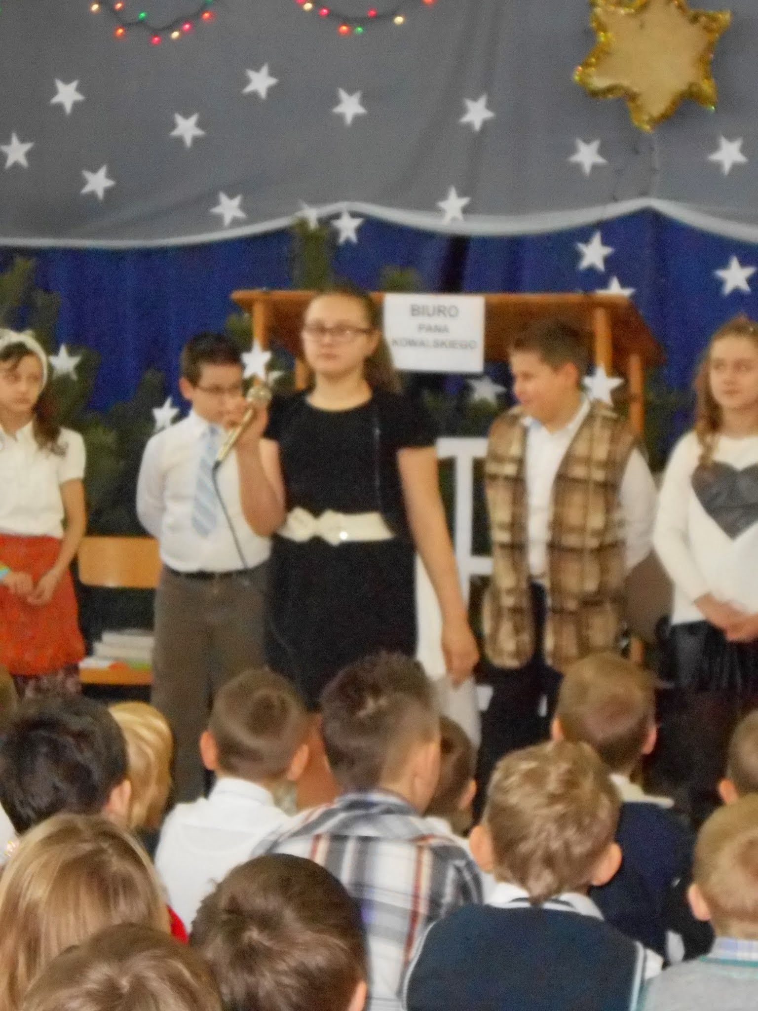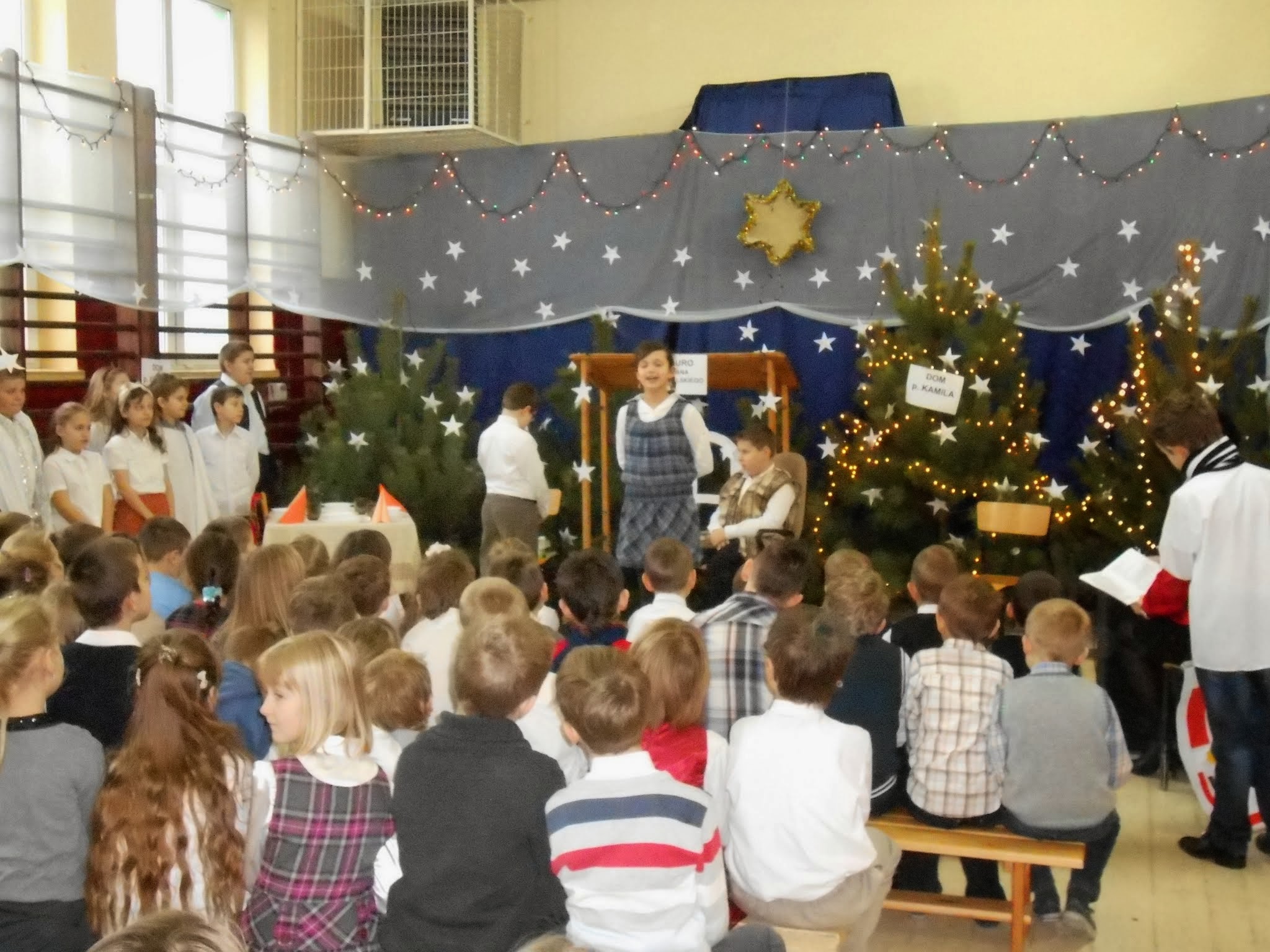 20 grudnia cała społeczność uczniowska obchodziła Wigilię Szkolną. Wszyscy uczniowie zebrali się na sali, gdzie klasa 4 odegrała przygotowane Jasełka. W tym roku przypomnieliśmy sobie ” Opowieść Wigilijną” na podstawie Karola Dickensa, w bardziej współczesnej formie, która bardzo podobała się widowni. Następnie wszyscy razem wraz ze śpiewnikami w rękach śpiewaliśmy kolędy i pastorałki. W rodzinnej atmosferze uczniowie udali się do klas, gdzie czekał na nich słodki poczęstunek, którym zakończyliśmy ostatni dzień w szkole. Następnie wszyscy udali się na zasłużony wypoczynek.