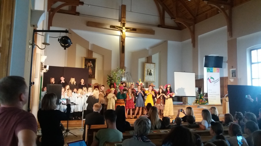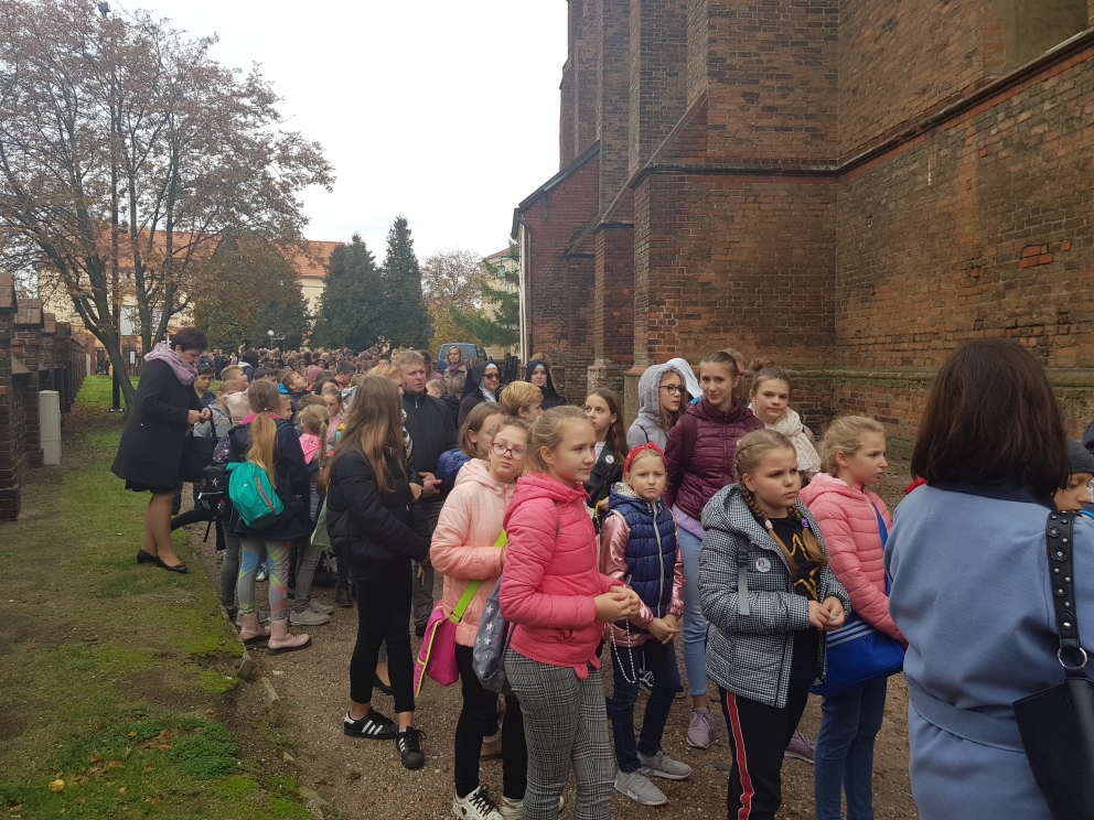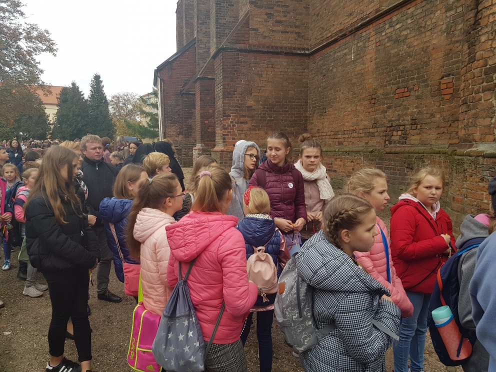 19 października uczniowie naszej szkoły uczestniczyli w Diecezjalnym Spotkaniu Misyjnym, które odbyło się w Chełmnie. Wydarzenie to wpisywało się w diecezjalne obchody Nadzwyczajnego Miesiąca Misyjnego ogłoszonego w całym Kościele przez papieża Franciszka. Uczestnicy spotkania mieli przyjemność obejrzeć musical prezentujący w swej treści klimat pracy misjonarzy na różnych kontynentach. Temat misji jeszcze bardziej przybliżyli goście specjalni – ksiądz misjonarz oraz siostra zakonna posługujący na kontynencie afrykańskim. Kolejnym punktem spotkania była prezentacja historii Papieskich Dzieł Misyjnych Dzieci, które angażują młodych w niesienie pomocy ich rówieśnikom z krajów misyjnych. Oczywiście nie zabrakło i modlitewnego zaangażowania. Najpierw przemierzając ulice miasta dzieci i młodzież wraz z opiekunami odmówili różaniec w intencji misji i misjonarzy a następie uczestniczyli w uroczystej Mszy Świętej, której przewodniczył biskup Józef Szamocki. Diecezjalne Spotkanie Misyjne miało na celu nie tylko poszerzyć wiedzę na temat misyjnej działalności Kościoła, ale stać się również impulsem