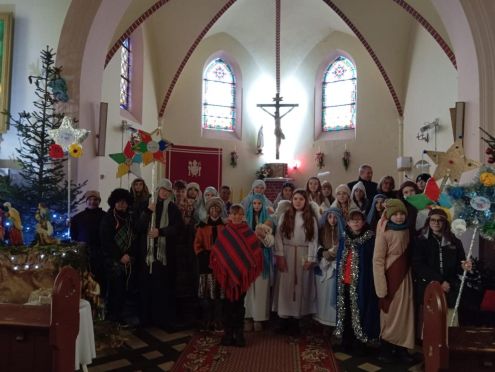 Od wielu lat 6 stycznia uczniowie naszej szkoły pod kierunkiem katechety pana Pawła Budzyńskiego włączają się w akcję „Papieskiego Dzieła Misyjnego Dzieci” i stają się kolędnikami misyjnymi. Idąc do okolicznych domów z radosną nowiną o narodzeniu Pana Jezusa i Bożym błogosławieństwem, starają się jednocześnie przybliżyć trudną sytuację swoich rówieśników z krajów misyjnych i uzyskać dla nich materialne wsparcie. Otrzymane ofiary posłużą misjonarzom. Dzięki zebranym datkom będą mogli pomóc dzieciom w krajach misyjnych realizując projekty z zakresu ochrony zdrowia, edukacji i formacji chrześcijańskiej. W tym roku zebrana kwota trafi do dzieci z Demokratycznej Republiki Konga. Kolędowanie misyjne zwyczajowo rozpoczęło się o godzinie 11: 00 w parafii Najświętszego Serca Pana Jezusa w Grzybnie Mszą Świętą z uroczystym rozesłaniem. Kolędnicy w każdym odwiedzonym domu zostawili pamiątkę. W tym roku miała ona kształt orzeszka ziemnego, ponieważ dzieci z Demokratycznej Republiki Konga często pracują na utrzymanie rodzin przy zbiorach orzeszków ziemnych i rowerami zawożą je na targi, pokonując niekiedy nawet 300 km. Nasi kolędnicy spotkali się z wielką życzliwością ze strony mieszkańców i jak zwykle wrócili do swoich domów z radością, uśmiechem i pełnymi kieszeniami słodyczy.