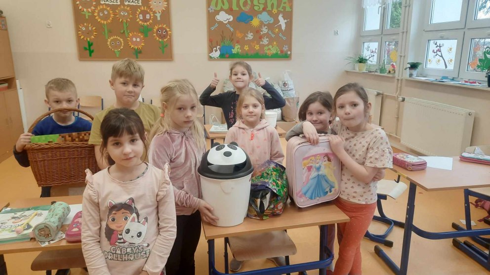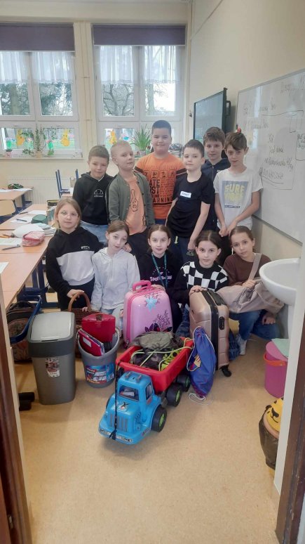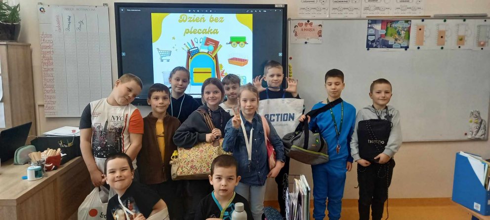 W poniedziałek, 18 marca obchodzony był w naszej szkole Dzień bez plecaka – z ang. „no backpack day”. Tego dnia uczniowie przyszli do szkoły bez plecaków. Zabawa polegała na tym, by przynieść do szkoły wszystkie potrzebne przybory w dowolny, zabawny sposób. Dzień bez plecaka to święto, które pochodzi z USA. Wymyśliła je Amerykanka Mongai Fankam – aktywistka i założycielka fundacji, dzięki której z zebranych datków kupowane są w pełni wyposażone plecaki a następnie wysyłane do państw Afryki. Podczas „No backpack day” dzieci przychodzą do szkoły bez plecaków, a swoje książki i przybory szkolne noszą w rękach lub w plastikowych torbach. W ten sposób chcą zwiększać świadomość trudnych warunków bytowych oraz problemów z dostępem do edukacji milionów dzieci na całym świecie. Wiele z nich musi chodzić do szkoły pieszo, z książkami i zeszytami w rękach lub w reklamówkach, bo nie stać ich na plecak. Uczniowie naszej szkoły zapakowali swoje przybory szkolne, książki i drugie śniadanie w przeróżny sposób. Widzieliśmy w szkole sklepowe wózki, chlebaki, kosze na zakupy, poszewki na poduszki, kaski motorowe, pojemniki na ciasto, drapaki dla kota, skrzynki na narzędzia, walizki, skrzynie i wiele innych rzeczy, których nie sposób wymienić. Ograniczeniem była tylko wyobraźnia.