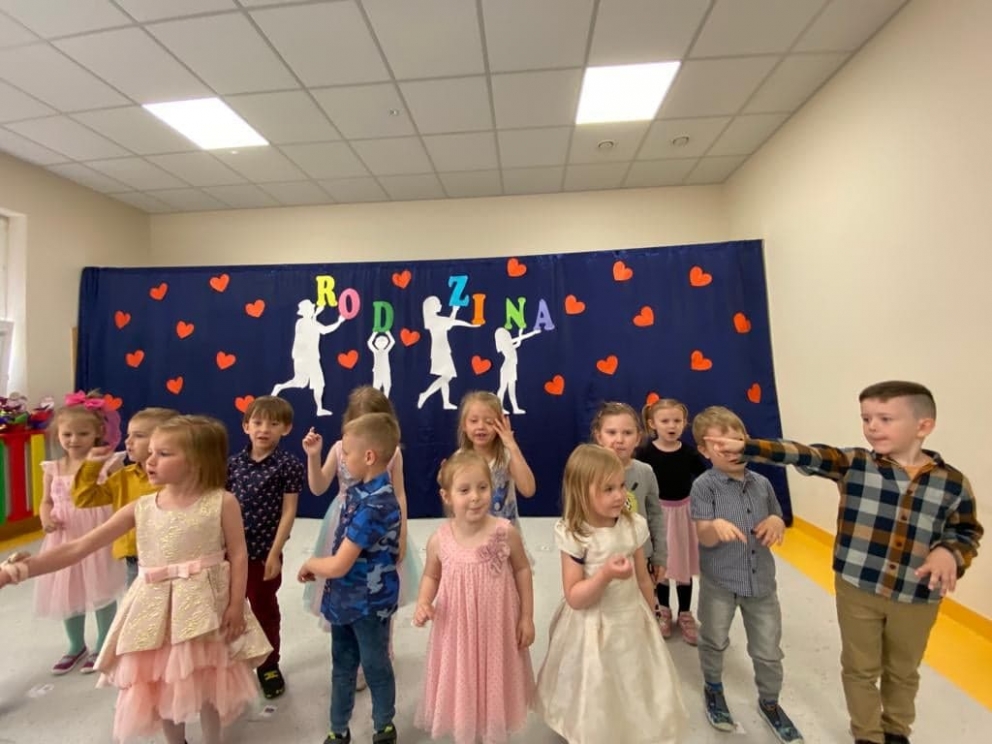 3 czerwca w słoneczne piątkowe przedpołudnie w przedszkolu odbył się Dzień Rodziny. W tym dniu przypadło wielkie świętowanie uroczystości Dnia Mamy i Taty. Święto było bardzo doniosłe za sprawą rodziców, którzy pojawili się w komplecie. Najmłodsi w pięknych strojach zaprezentowali bogaty program artystyczny. Były wiersze, piosenki, życzenia dla kochanych rodziców. Podczas wręczania własnoręcznie wykonanych upominków całusom i uściskom nie było końca. Po prezentacji słowno – muzycznej wszyscy udali się na boisko szkolne gdzie czekało wiele atrakcji. Były zamki dmuchane, zabawy ruchowe, pokazy strażackie. Można było skosztować swojskie, domowe wypieki, kiełbaskę z grilla, watę cukrową czy też popcorn.