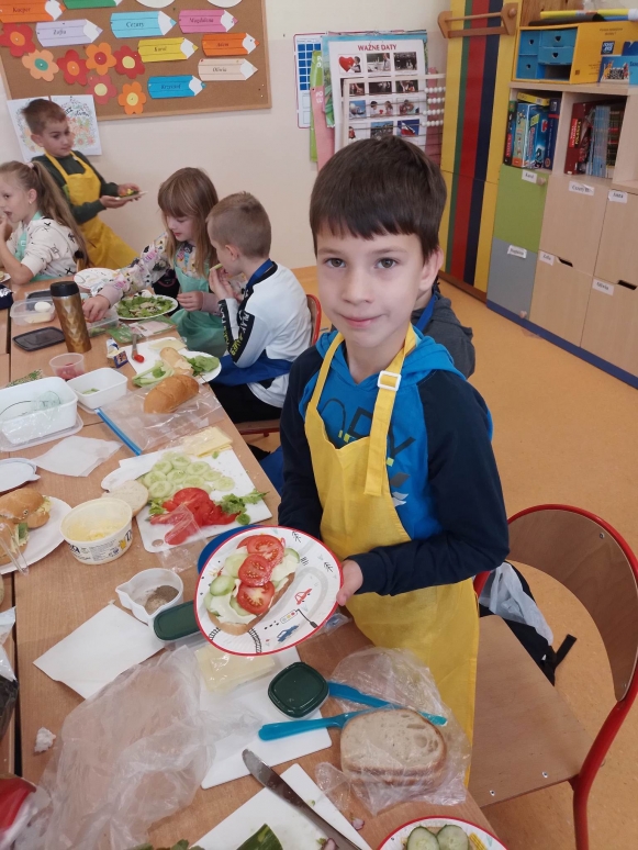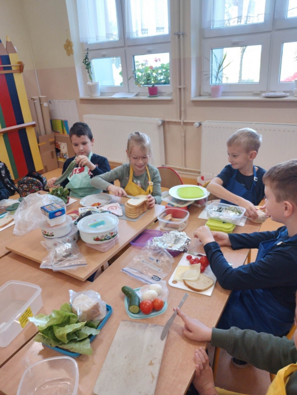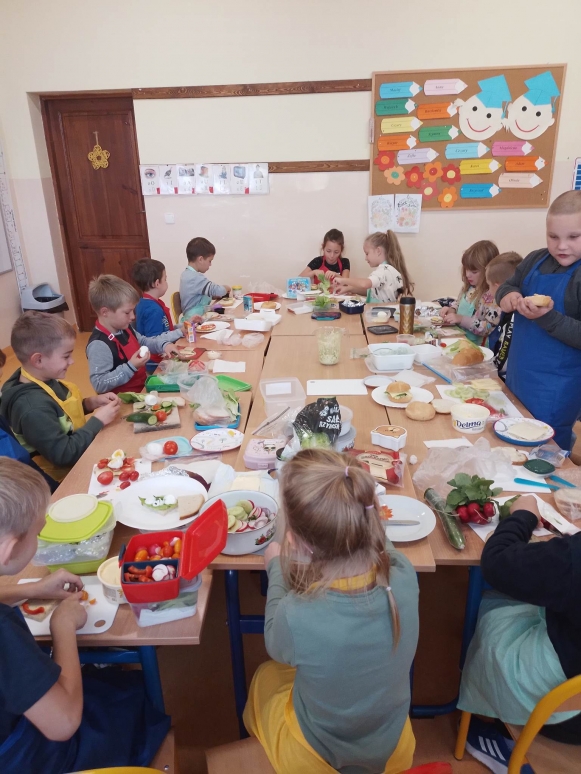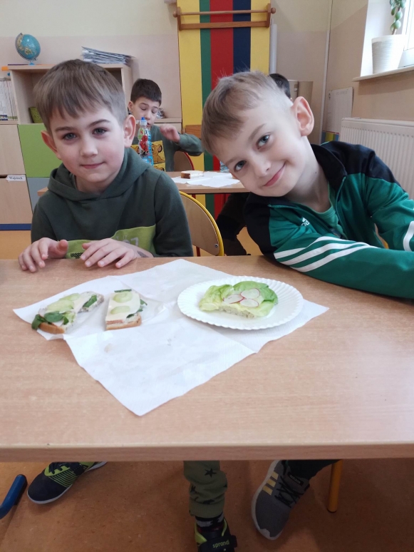 Śniadanie to najważniejszy posiłek dnia. Dzięki niemu dzieci mają energię do nauki, lepiej koncentrują się podczas lekcji i mają siłę do zabawy. To najlepszy start w nowy dzień. Dlatego też, uczniowie naszej szkoły przygotowali i wspólnie skonsumowali zdrowe śniadanie. Akcja przeprowadzona została w ramach obchodów „Tygodnia mózgu”. Był to dzień szczególny. Śniadanie poprzedziliśmy zajęciami, które miały na celu uświadomienie dzieciom, jak ważne jest spożywanie rano zdrowego posiłku. Uczniowie poznali 12 zasad zdrowego odżywiania się oraz przypomnieli reguły zachowania się przy stole. Dzieci z entuzjazmem uczestniczyły w podjętej akcji. Niesamowicie zaangażowali się  w nią także rodzice, wyrażając aprobatę oraz uznanie dla takich działań. To właśnie oni dostarczyli  produkty potrzebne do zorganizowania  zdrowego śniadania. Na stole znalazły się, zatem: pieczywo różnego rodzaju i różnego kształtu, masło, wędliny, jajka, sery, jogurty, owoce, warzywa, szaszłyki, sałatki, płatki owsiane,   herbata  i mleko. Zapach roznosił się po całej szkole. Było wesoło, smacznie i sympatycznie. Dzieci potrafiły dzielić się produktami, działać wspólnie i zgodnie. Nie bały się próbować nowych smaków. Takie śniadanie było dla nich prawdziwą frajdą. Na twarzach promieniał uśmiech i  zachwyt. Po takim śniadaniu nie było mowy, by ktoś odszedł od stołu głodny. Dzieci nabrały dużo energii i mocy, aby sprostać szkolnym obowiązkom. Była to niezapomniana przygoda edukacyjna na temat zdrowego odżywiania.