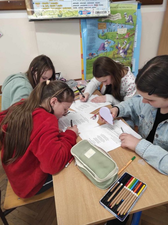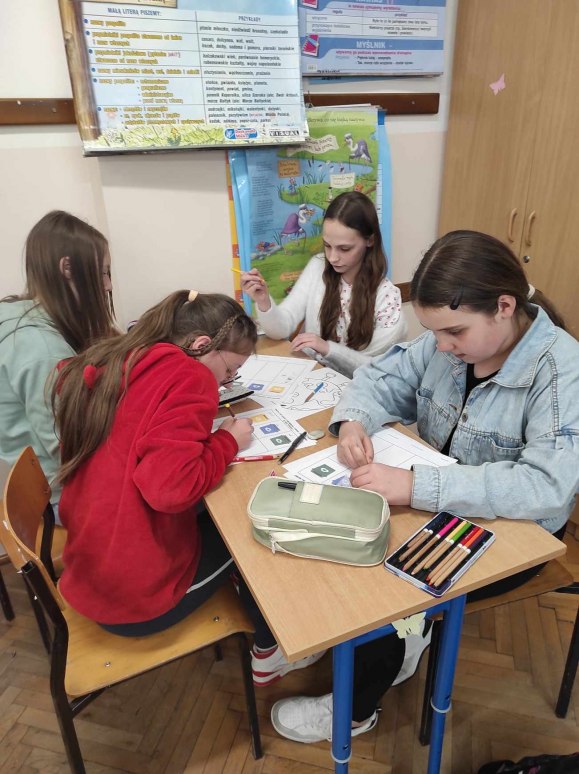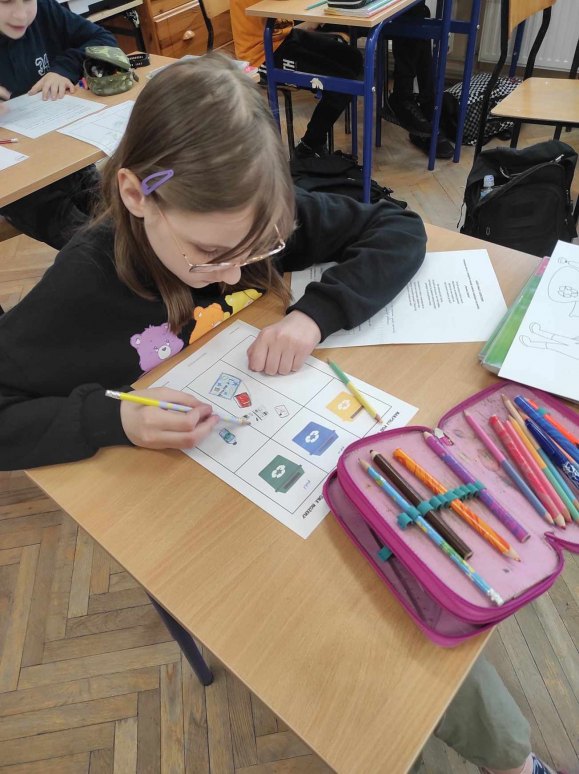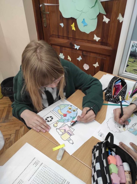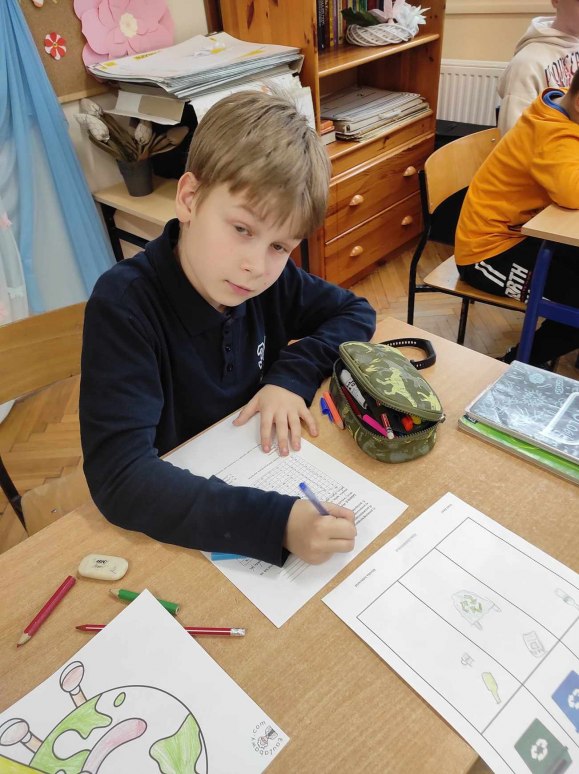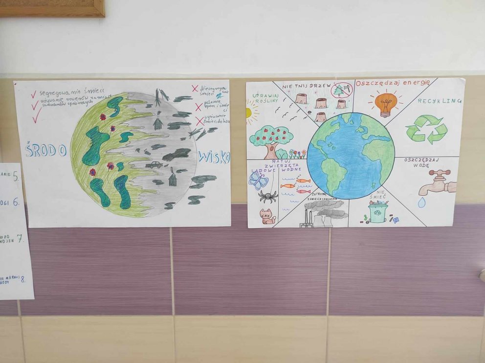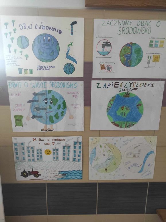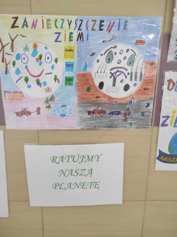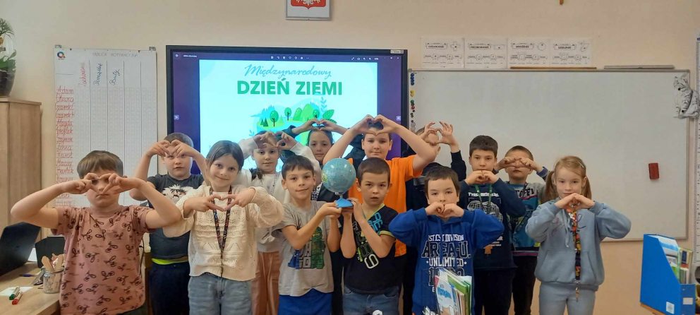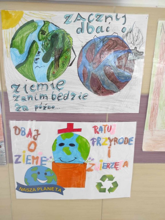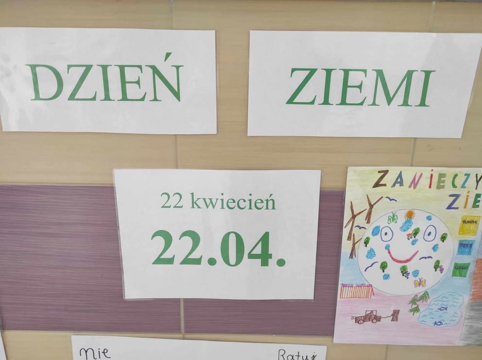 Dzień Ziemi obchodzony 22 kwietnia to czas, kiedy ludzie na całym świecie łączą siły, aby uświadomić wszystkim, że wspaniałe dary przyrody trzeba wykorzystywać mądrze – tak, aby starczyło ich dla przyszłych pokoleń. Musimy być przyjaciółmi przyrody – ekologami i dbać o środowisko. Budzenie wśród dzieci i młodzieży współodpowiedzialności za stan środowiska w przyszłości, poczucia troski o stan czystości najbliższego otoczenia oraz wychowanie w duchu miłości i szacunku do przyrody, to główne cele tegorocznych obchodów Dnia Ziemi w naszej szkole. Wychowawcy klas wspólnie z nauczycielką geografii panią Małgorzatą Węgrzynowską przygotowali z tej okazji wiele atrakcji i niespodzianek. Najpierw uczniowie obejrzeli prezentację pt.: „Ziemia – nasz dom”, podczas której dowiedzieli się, jakie nasza planeta ma dla nas przepiękne dary oraz co ją zatruwa i niszczy. Z kolei po obejrzeniu filmiku pt.: „Rady Pana Śmietnika” wszyscy dowiedzieli się, co to jest recykling i jak należy segregować odpady. Uczniowie z ogromnym zapałem rozwiązywali krzyżówki, rebusy, karty pracy. Wykonywali plakaty oraz inne prace plastyczne. Wszystkie prace były piękne i pomysłowe. Chętni uczniowie mogli pochwalić się swoją wiedzą podczas quizu i zagadek ekologicznych.