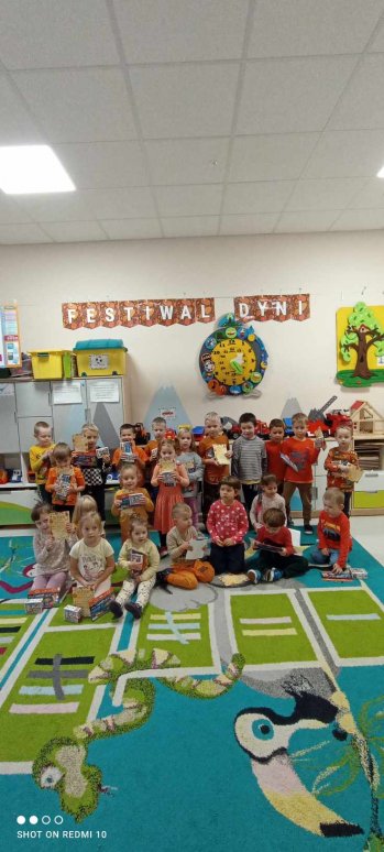 27 października w przedszkolu odbył się „Festiwal Dyni”. Dzieci wykonywały różne zadania, karty pracy oraz prace plastyczne o tematyce dyni. Na koniec dnia wszystkim uczestnikom II Przeglądu Najśmieszniejszych Dyń wręczono upominki i pamiątkowe dyplomy. W przeglądzie udział wzięły przedszkolaczki i zerówiaczki.
