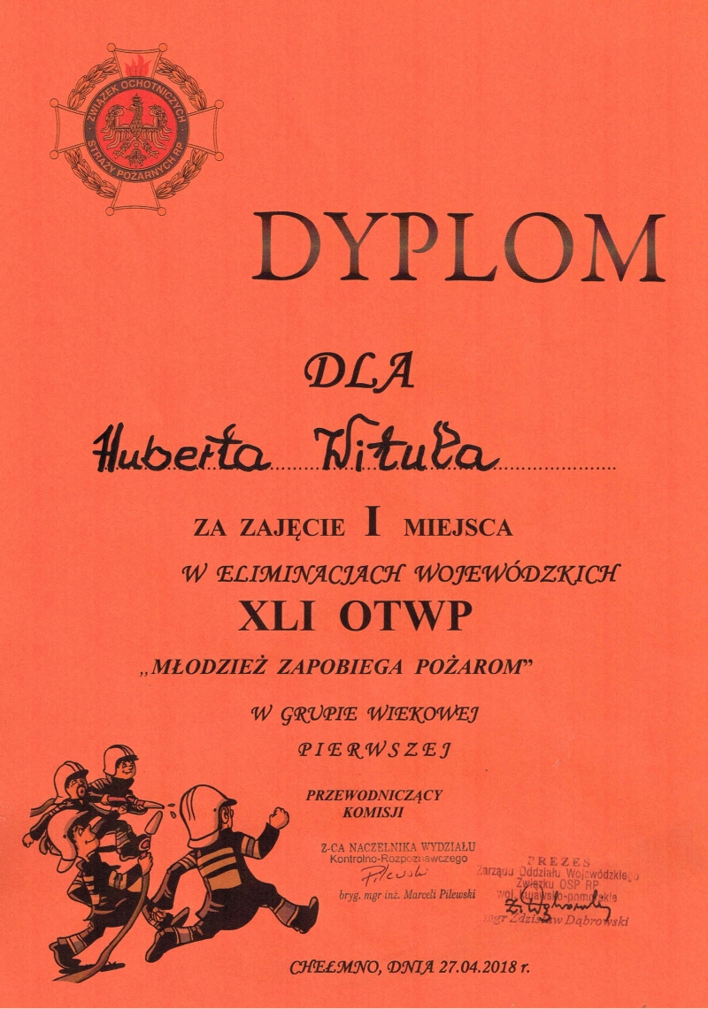 W dniu 27 kwietnia 2018 w Chełmnie odbyły się eliminacje wojewódzkie Ogólnopolskiego Turnieju Wiedzy Pożarniczej (OTWP). W turnieju wzięli udział zwycięzcy eliminacji powiatowych z każdego powiatu województwa kujawsko-pomorskiego.