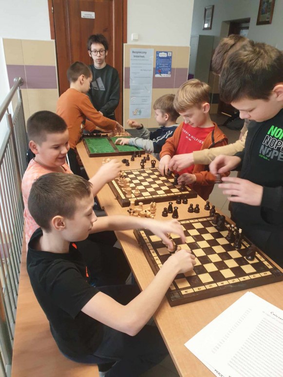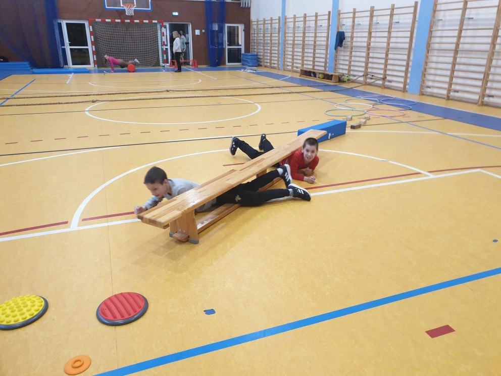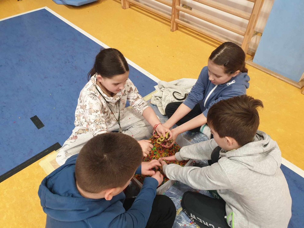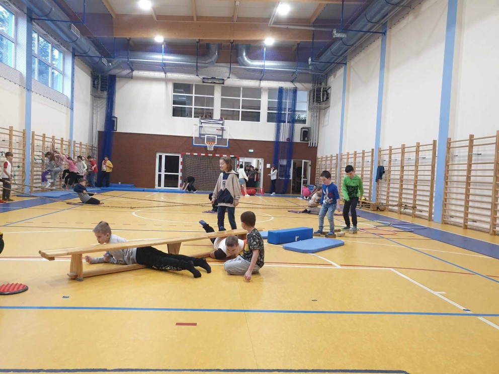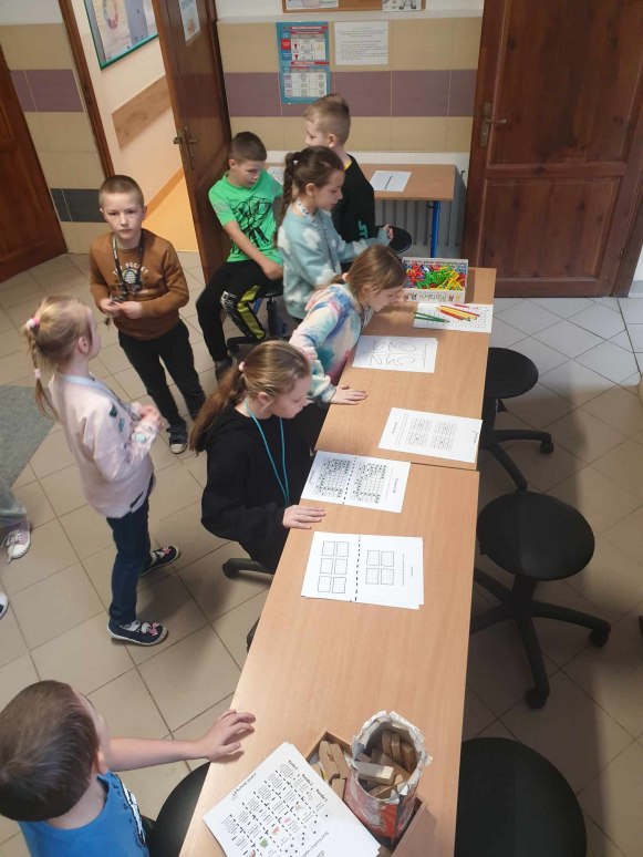 W ubiegłym tygodniu nasi uczniowie po raz kolejny mieli okazję zgłębić wiedzę i poznać działanie najbardziej fascynującego organu ludzkiego ciała, jakim jest mózg. Podobnie jak w latach poprzednich, tak i w tym roku, w dniach 11 – 17 marca odbyła się na terenie naszej szkoły coroczna akcja edukacyjna o nazwie „Tydzień Mózgu”. To wyjątkowy czas, pełen ciekawych atrakcji. Dzięki nim można było dowiedzieć się jak działa nasz mózg, ale także poznać wiele pomysłów na to, w jaki sposób zadbać o jego zdrowie i sprawność. „Mózgami” całego przedsięwzięcia były Panie Kamila Sobiech i Angelika Kozłowska. Każdy dzień „Tygodnia Mózgu” miał swoją nazwę i niepowtarzalny charakter. Wszystko zaczęło się „relaksacyjnym poniedziałkiem”. W czasie długich przerw na sali gimnastycznej rozbrzmiewały dźwięki relaksacyjnej muzyki. Uczniowie wyposażeni w poduszki i przytulanki leżąc na wygodnych materacach, mieli okazję wyciszyć się i poddać całkowitemu odprężeniu. Głównym celem tego dnia było ukazania negatywnych skutków przebywania w hałasie dla zdrowia naszego mózgu, a przy okazji zmniejszenie ilości decybeli na szkolnych korytarzach. Po błogim poniedziałku nadszedł czas na intensywną gimnastykę mózgu pod nazwą „logiczny wtorek”. Był to również Dzień liczby π (czyt. pi). Uczniowie podczas przerw lekcyjnych rozwiązywali matematyczne łamigłówki, logiczne zagadki, układali klocki według określonego schematu, grali w szachy lub w warcaby. Ten dzień okazał się kopalnią wiedzy na temat tego, jak można w świetny sposób zorganizować sobie czas wolny jednocześnie dbając o sprawność i zdrowie naszego mózgu. Chcąc opisać, co działo się kolejnego dnia, można by powiedzieć: „w zdrowym ciele, zdrowy MÓZG”. „Sportowa środa” przebiegała pod znakiem aktywności fizycznej. Najpierw grupa młodszych, a potem starszych uczniów w czasie długich przerw wykonywała na sali gimnastycznej szereg ćwiczeń zgodnie z filmikami instruktażowymi. Zwieńczeniem aktywności fizycznej była nauka i wspólne wykonanie tańca ludowego o nazwie „Belgijka”. Następnego dnia przed głównym wejściem do szkoły zrobiło się niezwykle kolorowo, a wszystko to za sprawą „kolorowego czwartku”. Uczniowie przy użyciu kolorowej kredy wnieśli trochę barw w „szare życie” kostki brukowej, malując na niej różne wzory, kształty czy figury. Było wiele radości i uśmiechu, a jak wiadomo śmiech to zdrowie, również dla naszego mózgu. Ostatni dzień, „kreatywny piątek” postawił przed naszymi uczniami zadanie zmierzenia z torem przeszkód. Ich mózgi musiały wykazać się doskonałą współpracą w innymi częściami ciała, jak również kreatywnością, aby ten tor przeszkód pokonać. Dzień ten oprócz możliwości wykazania się zręcznością i pomysłowością wyposażył uczniów w wiedzę o tym, w jaki sposób odbierają różnego rodzaju bodźce i sygnały płynące z otoczenia i w jaki sposób na nie reagują.