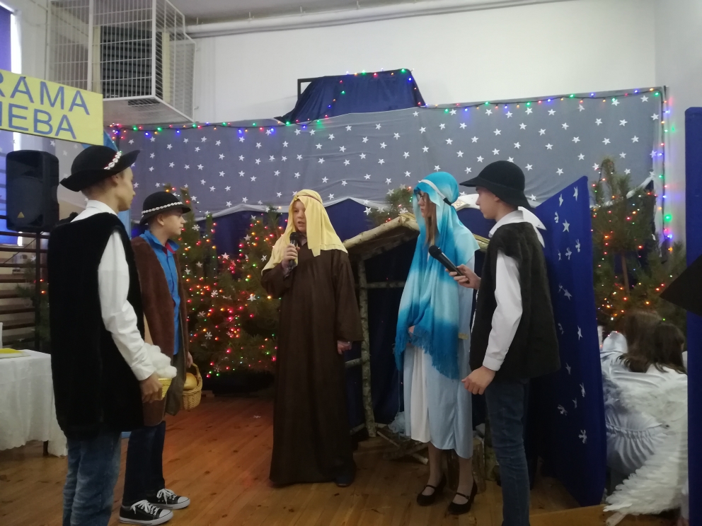 Czas oczekiwania na Boże Narodzenie należy do najpiękniejszych w roku. Dlatego też tradycją Szkoły Podstawowej im. Małgorzaty Sulek w Drużynach są coroczne jasełka przygotowywane przez uczniów pod opieką katechety. Nie inaczej było i w tym roku. Uczniowie klas: V-VIII mieli możliwość zaprezentowania swoich zdolności artystycznych, aktorskich, wokalnych i muzycznych. W pięknej scenografii i w specjalnie przygotowanych kostiumach wprowadzili zgromadzoną publiczność w świąteczny nastrój. Mogliśmy po raz kolejny przeżyć historię narodzin Jezusa Chrystusa. Oprócz św. Józefa, Maryi, Trzech Króli, aniołów, pasterzy na scenie pojawił się św. Piotr, uczeń, biznesmen, nauczycielka. Przedstawienie przeplatane było kolędami, pastorałkami wykonaniu uczniów. Ogromne zaangażowanie młodych aktorów i czas poświęcony na próby – opłacił się. Jasełka bardzo się podobały. Zostały ciepło przyjęte przez publiczność i nagrodzone gromkimi brawami. Pomysłodawcą scenariusza i organizatorem przedstawienia był nauczyciel religii pan Paweł Budzyński.