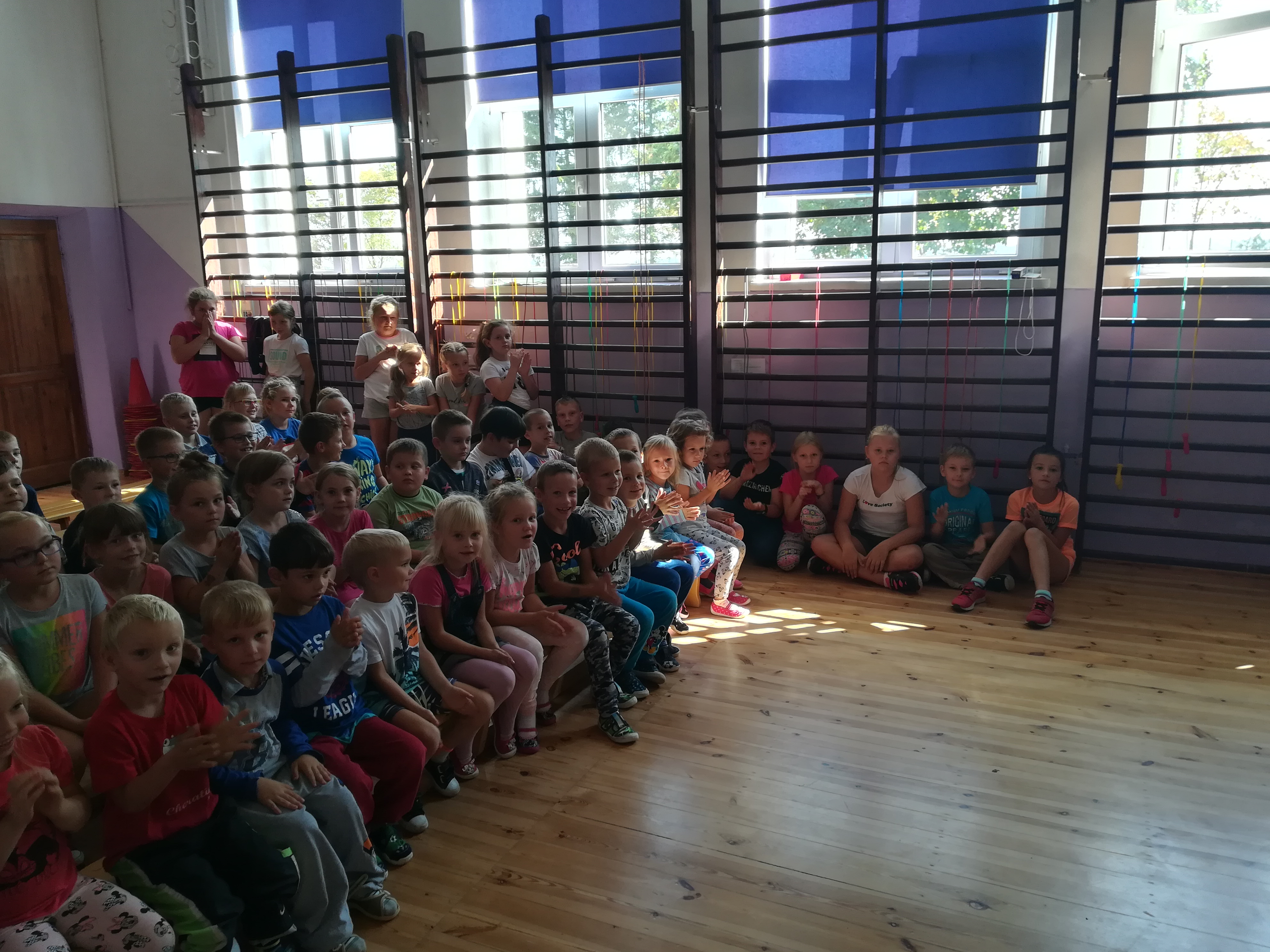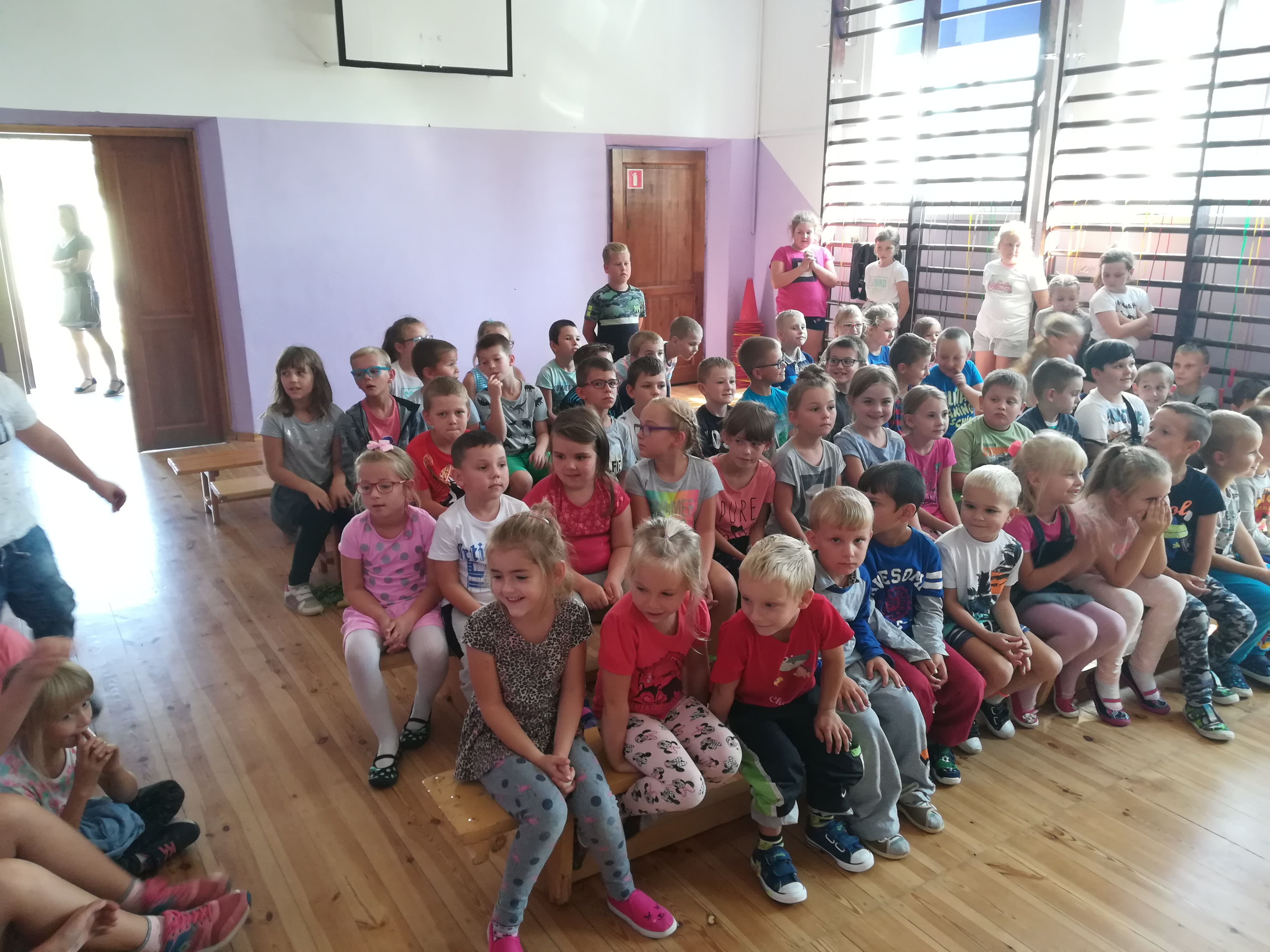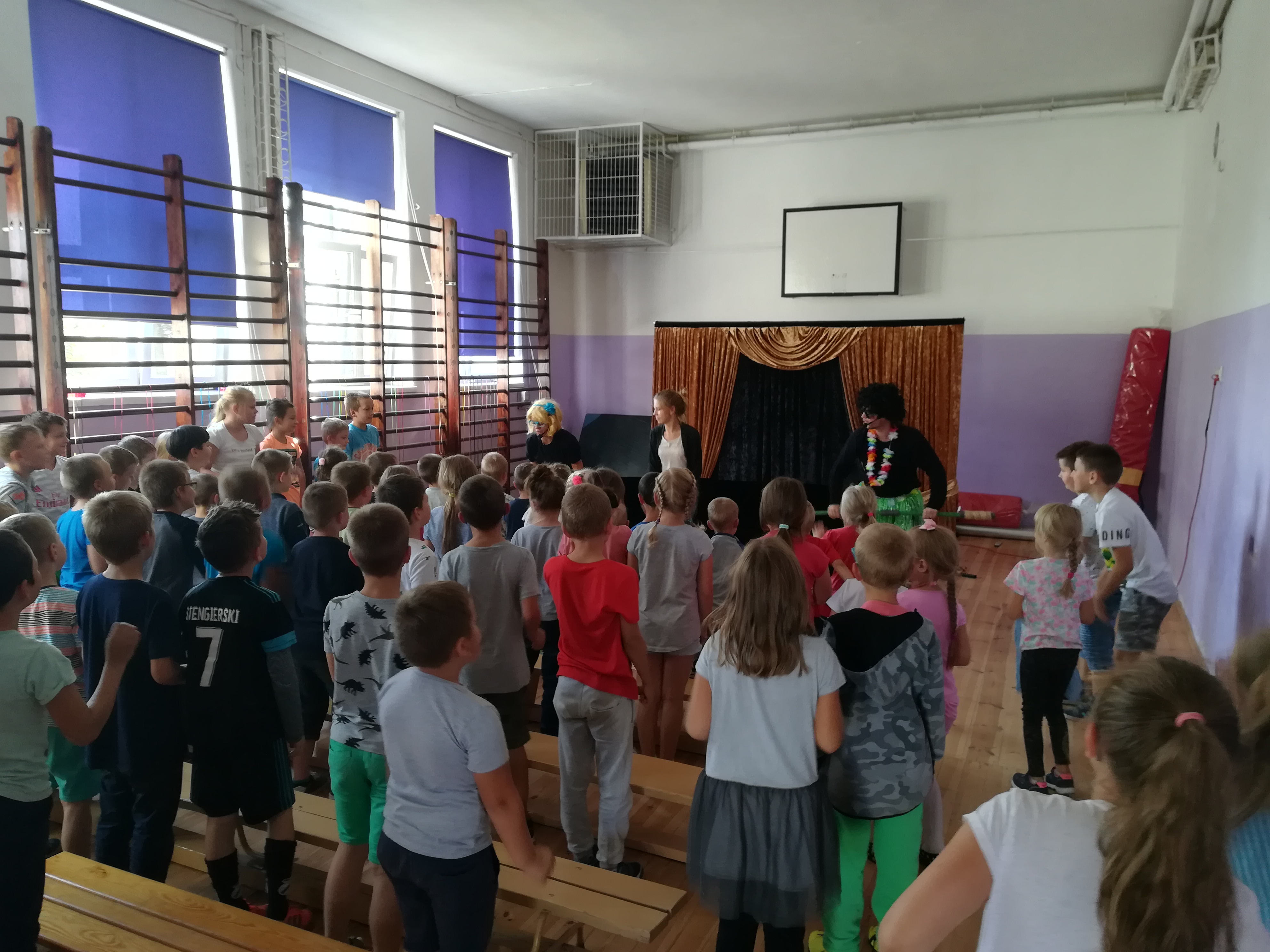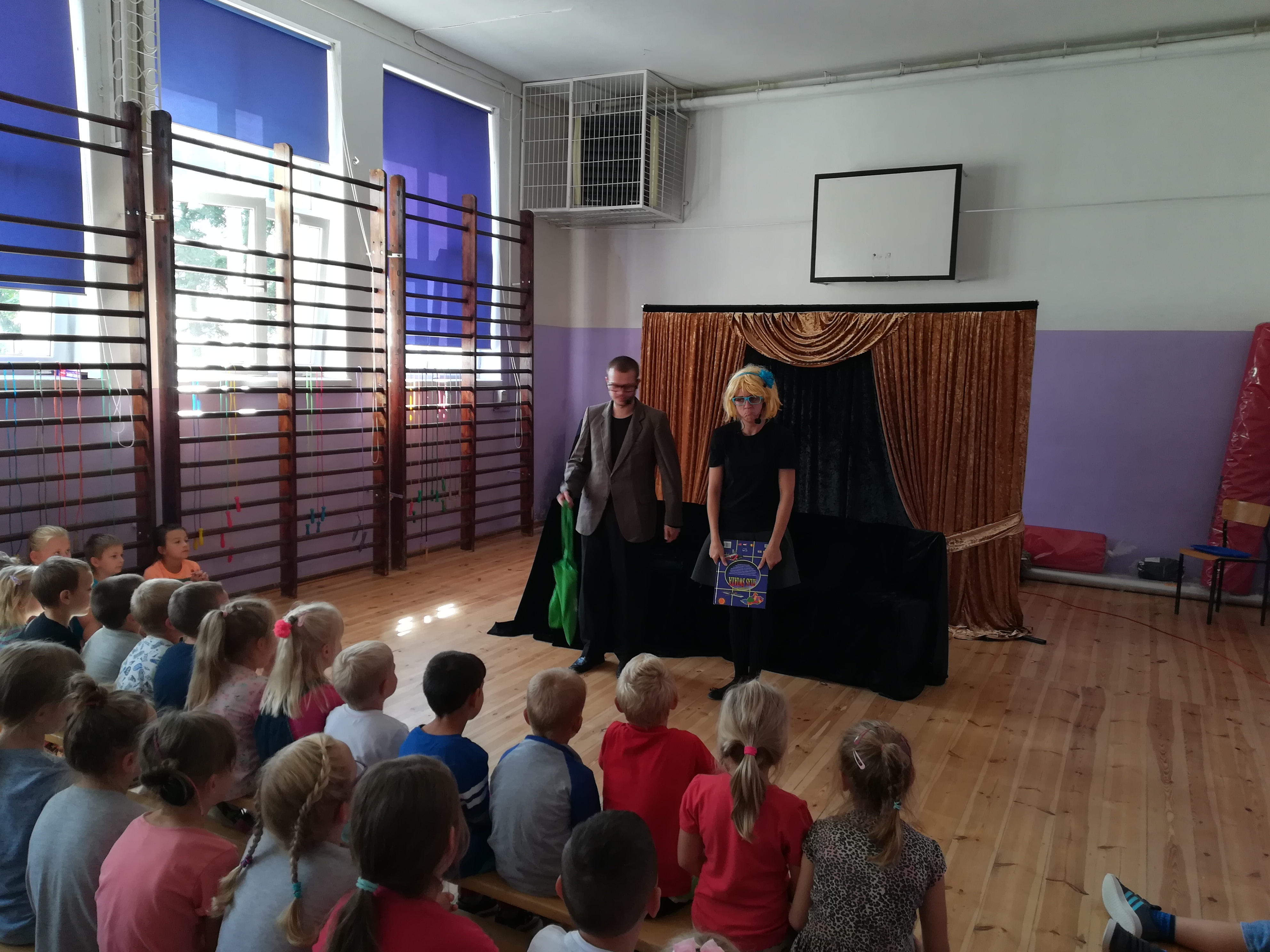 21 września uczniowie klas I – III obejrzeli przedstawienie, pt: „Jestem przyjacielem ludzi” w wykonaniu aktorów Teatru Kurtyna z Krakowa. Głównym bohaterem bajki był chłopiec o imieniu Antek. Pewnego dnia w rękach Antoniego pojawia się przekładany z kąta w kąt prezent od babci, który niestety nie jest nową grą wideo. To tylko zwykła książka,” Ilustrowany Atlas Świata”. I kiedy znudzony chłopiec po raz pierwszy leniwie postanawia zerknąć na pierwszą stronę pod okładką, nie zdaje sobie sprawy z tego, że właśnie postawił milowy krok w podróży, której celem jest poznanie siebie i swojego miejsca w świecie. Za sprawą fenomenu teatru wyobraźnia chłopca poprowadzi jego i widzów drogą poznania różnorodności ludzi, ich spraw, radości, trosk i marzeń. A kluczem do ich zrozumienia będą niezwykłe, sceniczne spotkania Antoniego z przedstawicielami innych ras i kultur. Czy Eskimos tylko udaje radość i pogodę, rozświetlając swym uśmiechem pustkę ogromnych białych przestrzeni Grenlandii, w której przyszło mu żyć mimo nieludzkiego mrozu, jaskrawego słońca i przyrody, która jak nigdzie na świecie broni swoich skarbów? Co powiedziałby tata małego mieszkańca Afryki, gdyby codziennie mógł napełnić wannę wodą dla swojego syna? Jak sobie radzą z zanieczyszczeniem powietrza mieszkańcy Chin, kiedy wietrzą mieszkanie? Dlaczego kolor skóry oraz język, którym posługują się inni ludzie nie mają żadnego znaczenia na zawieranie przyjaźni? Po skończonej lekturze niezwykli znajomi Antoniego znikają z jego pokoju. Jednak nie znika ze sceny i widowni ta wyjątkowa atmosfera, pozwalająca zrozumieć, że postawa otwartości i akceptacji, woli porozumienia oraz ciekawości dotyczącej poznawania różnic pozwala zrozumieć człowiekowi, kim jest i jakie przed nim, jako gospodarzem świata, stoją wyzwania i obowiązki. „Jestem przyjacielem ludzi” to dynamiczne przedstawienie, pełne zaskakujących zwrotów komediowej akcji.