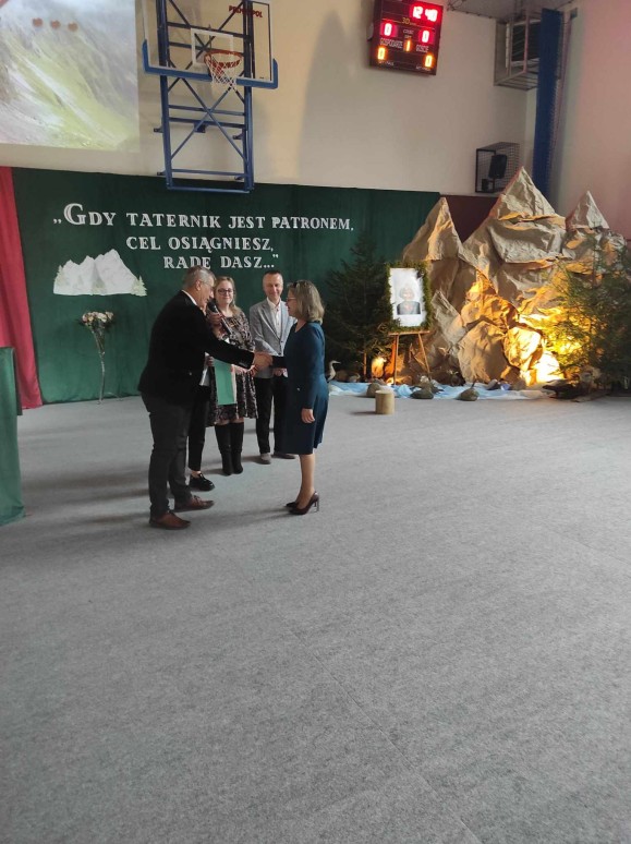 2 października obchodziliśmy uroczystość jubileuszu 30 – lecia nadania naszej szkole imienia Małgorzaty Sulek. Uroczystość miała podniosły charakter. Rozpoczęła się wprowadzeniem sztandaru a następnie odśpiewaniem pieśni szkoły pt.: „Jak okiem sięgnąć”. W dalszej części głos zabrała Pani Dyrektor Bożena Grela, która powitała przybyłych gości. Swoją obecnością zaszczycili nas: Pan Paweł Klonowski Wójt Gminy Bobrowo, Pani Bernadeta Krasucka specjalista do spraw oświaty w Gminie Bobrowo, Pani Alina Prokopowicz Przewodnicząca Komisji Oświaty, Kultury i Sportu w Gminie Bobrowo, Dyrektorzy szkół podstawowych z terenu gminy Bobrowo w osobach: Pani Aleksandra Kotas, Pan Sławomir Linettej, Pani Katarzyna Malinowska-Wituła, pan Jacek Sokołowski oraz Pan Konstanty Jamroży Radny wsi Grzybno. Pan Władysław Szulc Radny wsi Drużyny, Pan Roman Węgrzynowski radny wsi Kruszyny Szlacheckie, Pan Dawid Jasiński Prezes Ochotniczej Straży Pożarnej w Grzybnie, Pan Kazimierz Hurtak sołtys wsi Grzybno, Pan Tadeusz Krzepicki sołtys wsi Drużyny, Pan Przemysław Małkiewicz sołtys wsi Kruszyny Szlacheckie, byli dyrektorzy szkoły: Pani Lubomira Wróblewska oraz Pani Kamila Sobiech i Rada Rodziców na czele z jej przewodniczącą Panią Agnieszką Ziółkowską. Ponadto pani dyrektor powitała: przybyłych rodziców, sympatyków szkoły, pracowników obsługi oraz uczniów. Następnie powiedziała: Historia naszej szkoły jest dość długa, albowiem trwa już 60 lat. Budynek szkoły to tzw. Tysiąclatka, czyli szkoła wzniesiona w ramach programu oświatowego, realizowanego w czasie jubileuszu Tysiąclecia Państwa Polskiego, które przypadało na 1966 r. Jej budowę sfinansowano ze środków pochodzących z budżetu państwa oraz funduszy społecznych. Pierwszy kamień pod budowę położono w 1963 r., a budynek oddano do użytku w roku 1964. Pierwotnie szkoła otrzymała imię Janka Krasickiego. Na przełomie lat 80-tych i 90-tych ubiegłego stulecia tradycją tej szkoły stały się wakacyjne obozy wędrowne w Tatry organizowane przez ówczesną nauczycielkę geografii p. Zofię Roznerską. Przewodnikiem po tatrzańskich szlakach dla młodzieży ze Szkoły w Drużynach była właśnie pani Małgorzata Sulek. To ona zachęcała młodzież do wędrówek pośród gór, pokazywała najciekawsze zakątki Tatr, ciekawie opowiadała i nigdy nie odmawiała pójścia z młodzieżą na szlak. Tak było też latem 1991 r. Dla uczestników obozu wędrownego z Drużyn zrezygnowała z wyjazdu na urlop, by móc poprowadzić ich po szlakach Tatrzańskiego Parku Narodowego. Oni zachwyceni jej osobą, porwani przez jej pasję, którą była miłość do Tatr przemierzyli bezpiecznie górskie ścieżki, by wrócić cało do domu. Między panią Małgosią a uczestnikami obozu zawiązała się nić przyjaźni. Oni pokochali ją, a ona ich. Dwa tygodnie później wieść o tragicznej śmierci ukochanej przewodniczki, która zginęła na szlaku ochraniając własnym ciałem młodych turystów – uczestników innego obozu wędrownego przed spadającymi kamieniami, wstrząsnęła całą społecznością naszej szkoły. Dla uczczenia jej osoby i tak wielkiego poświęcenia z inicjatywy Rady Pedagogicznej ówczesna Pani Dyrektor – Lubomira Wróblewska wystąpiła do władz z wnioskiem o nadanie szkole jej imienia. Pani Małgorzata Sulek została naszym patronem 30 września 1994r. Zapewne zastanawiacie się, po co szkole potrzebny jest patron? Patron to ktoś, kogo podziwiamy i chcemy naśladować. Jego osiągnięcia są dla nas wzorem. To bardzo ważna postać w życiu szkoły. Wokół niej buduje się tradycje, wprowadza uczniów w świat wartości. W czasach, kiedy notujemy upadek autorytetów, wybór patrona to trudne zadanie. Nasza szkoła dokonała tego wyboru przed trzydziestoma laty. W chwilach, kiedy czujemy się zagubieni, warto przyjrzeć się osobom, które dokonały w swoim życiu wielkich czynów. Ale pamiętajmy – wielki nie znaczy spektakularny, rzucający się w oczy. Ogromną zaletą ludzi wielkich jest skromność – oni nie uważają, że robią coś niezwykłego. I zapewne pani Małgosia też tak nie uważała, uznała, że tak po prostu trzeba. Fakt, że nasza szkoła podstawowa posiada swego Patrona sprawia, że nie jest anonimowa. Wiedza o postaci, znajomość jej losów i dokonań – rodzi szacunek do patrona, szacunek do szkoły noszącej jego imię, a poprzez to, szacunek do wiedzy i nauki. Motywuje do jeszcze większego wspólnego wysiłku, by w szkole było lepiej, mądrzej, ciekawiej i bardziej przyjaźnie. Pani dyrektor swoje przemówienie zakończyła słowami: