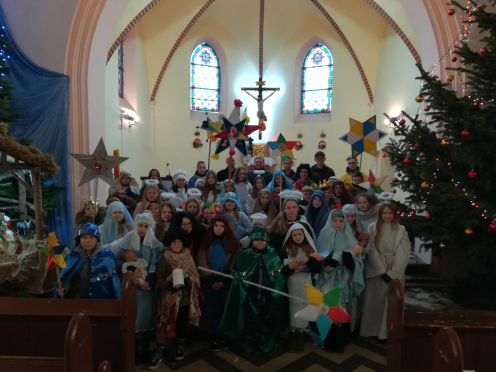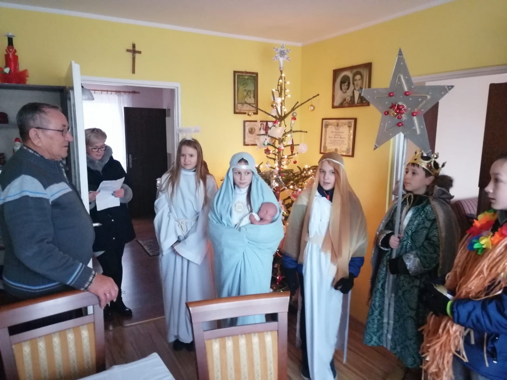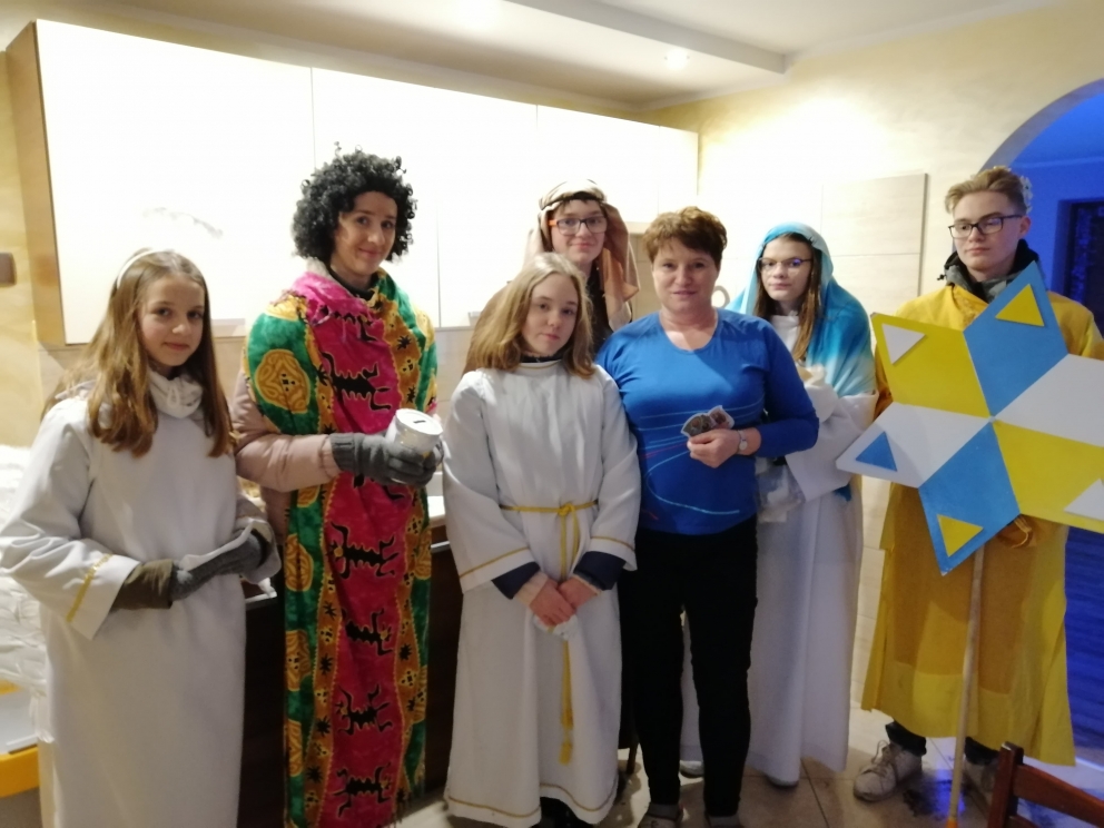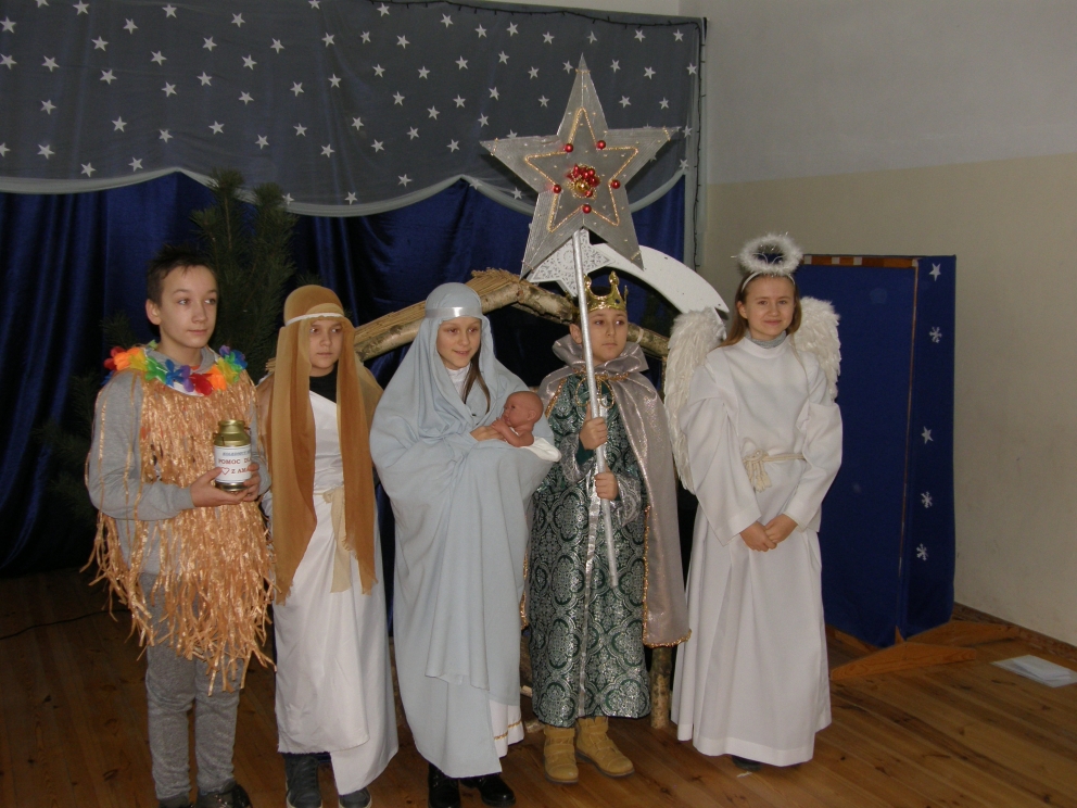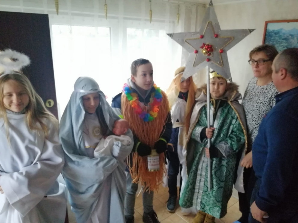 Jak co roku uczniowie naszej szkoły wraz z opiekunami włączyli się w ogólnopolską akcję kolędników misyjnych. Dzieci z klas III-VIII pod kierunkiem katechety pana Pawła Budzyńskiego przygotowały inscenizację o Bożym Narodzeniu i o trudnych warunkach życia ich rówieśników mieszkających w Amazonii. Odwiedziły prawie wszystkich mieszkańców naszej parafii przekazując radość Bożego Narodzenia i zbierając ofiary dla biednych dzieci z Amazonii. Dziękujemy rodzicom, uczniom, nauczycielom, opiekunom, sympatykom szkoły za życzliwe przyjęcie, wspólny śpiew kolęd i złożone ofiary. Niech Boże Błogosławieństwo wspiera i prowadzi wszystkich w Nowym Roku!