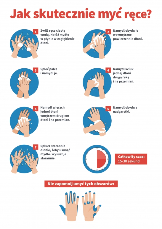 Instrukcja jak poprawnie i skutecznie myć ręce znajduje się poniżej.