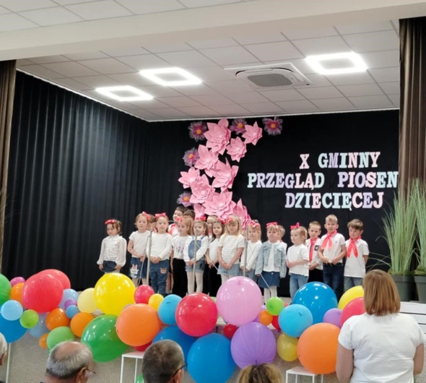 W dniu 11.06.2025 dzieci z przedszkola i zerówki wzięły udział z X Gminnym Przeglądzie Piosenki Dziecięcej. Naszą szkołę reprezentowały dwa zespoły – Kropelki i Bratki oraz dwie solistki – Maria Roznerska i Zofia Małkiewicz. Po występach artyści otrzymali drobne upominki oraz dyplom dla grupy.