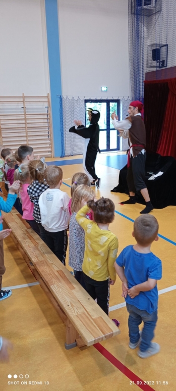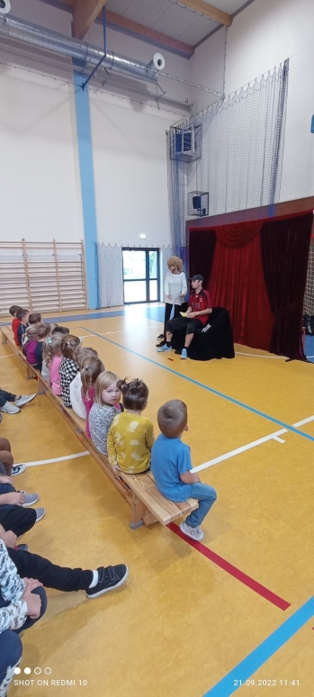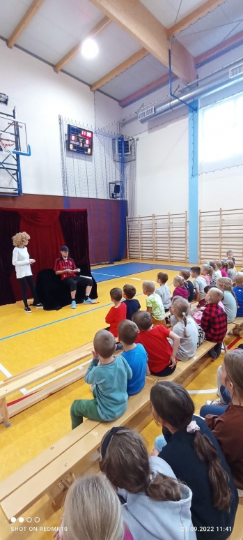 W środę 21 września 2022 r. dzieci z oddziału przedszkolnego, zerowego oraz klas I – III obejrzały przedstawienie profilaktyczne „Mapa Skarbów” przygotowane przez aktorów Teatru Profilaktycznego „Kurtyna” z Krakowa. Uczniowie zastali zapoznani z podstawowymi zasadami bezpieczeństwa, właściwego zachowania się w sytuacji zagrożenia oraz poznali dobre i złe strony Internetu. Dodatkowo przedstawienie kształtowało postawę odpowiedzialności za własne zdrowie oraz ukazywało niebezpieczeństwo użycia łatwo dostępnych lekarstw i używek takich jak alkohol czy papierosy. W ramach kształtowania postaw społecznych poruszona została problematyka wytrwałość w działaniu i dążeniu do celu, umiejętność właściwego zachowania się w sytuacjach zwycięstwa i porażki, nawiązywania i podtrzymywania relacji z rówieśnikami, rozpoznawania ich potrzeb, empatia i szacunek dla słabszych.