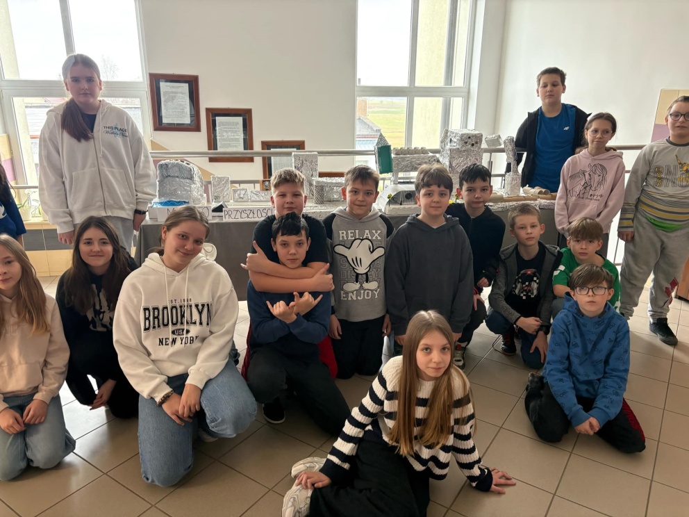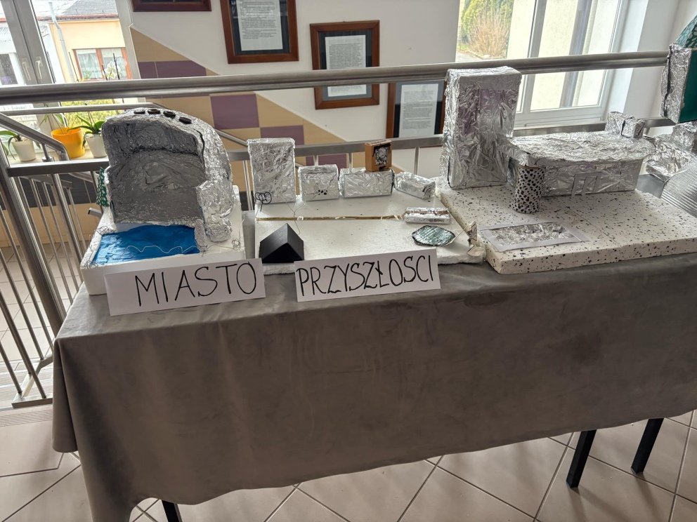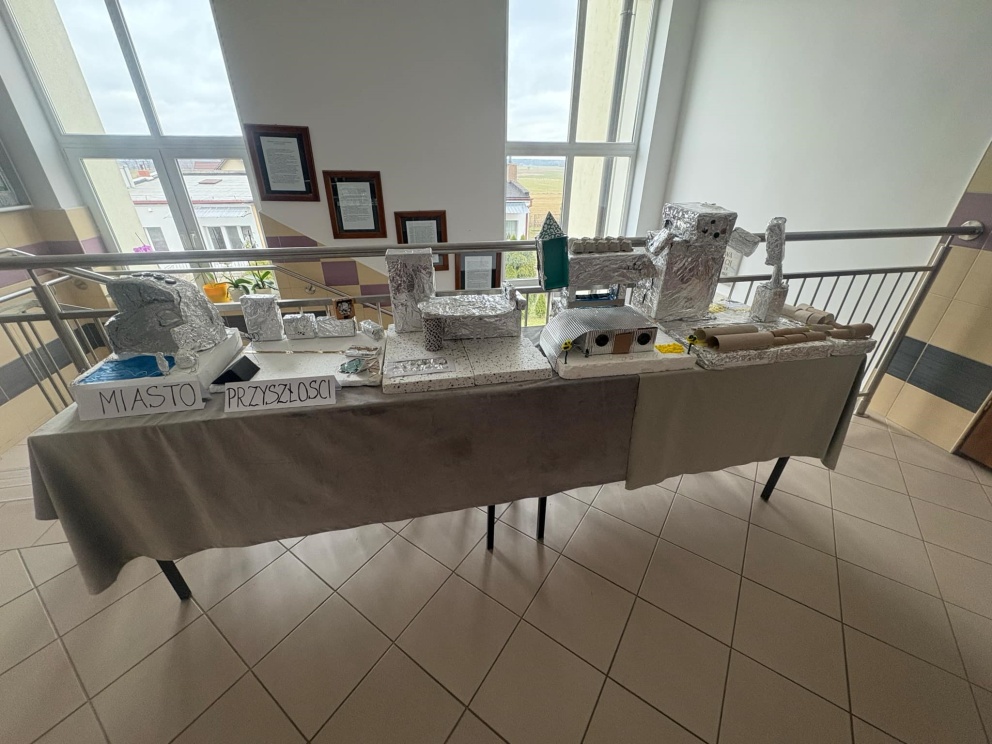 Przez ostatnie 3 tygodnie podczas lekcji plastyki uczniowie klasy V tworzyli formę przestrzenną z zastosowaniem różnych kształtów, form i brył. Poznali rodzaje form, typy brył i wykorzystali je we własnych działaniach plastycznych. Zadaniem uczniów było zbudowanie makiety „Miasta przyszłości”. Praca miała charakter zespołowy. W zespołach panowała życzliwa atmosfera, widać było pełnię zaangażowania każdego członka zespołu. Praca w grupach dała uczniom możliwość integracji zespołu, a działania plastyczne wiele radości i zabawy. Oto wynik ich pracy: