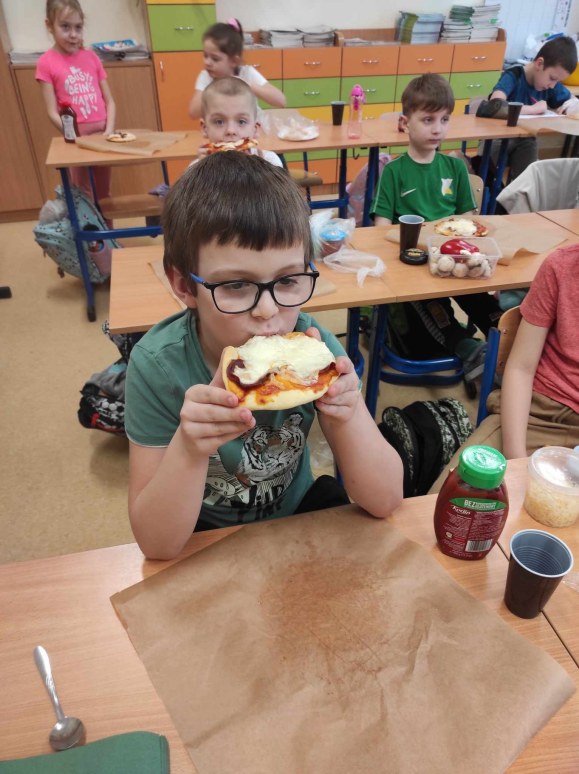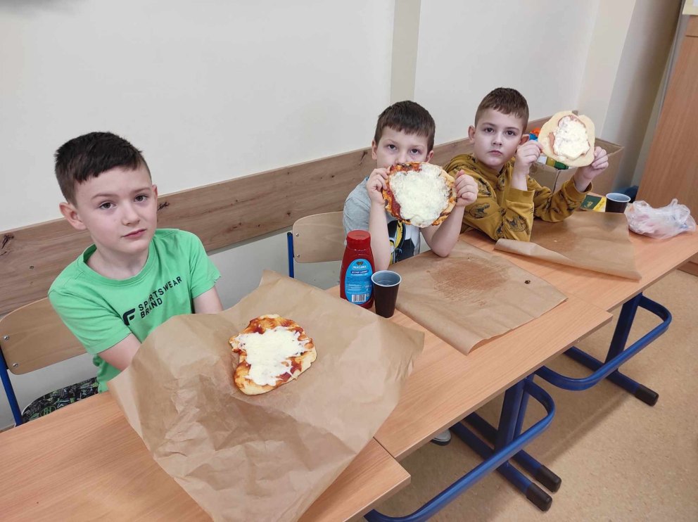 7 lutego obchodziliśmy w naszej szkole Międzynarodowy Dzień Pizzy. Nasi uczniowie spisali się na medal! W szkolnej kuchni powstały prawdziwe kulinarne arcydzieła – pyszne pizze niczym z włoskich pizzerii. Dzieci samodzielnie przygotowały różnorodne kompozycje: z rukolą, oscypkiem, brokułami, kurczakiem, szynką, salami, kukurydzą, ogórkiem a także klasyczne margherity. Po upieczeniu przyszedł czas na degustację i częstowanie nauczycieli, uczniów oraz pracowników szkoły. Każdy kawałek smakował wyśmienicie, a radość ze wspólnego świętowania była ogromna!