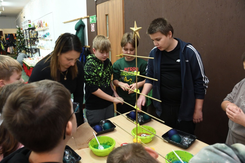 Dnia 6 grudnia uczniowie klas IV, V i VI udali się w mikołajkową podróż do Gniezna. Ciekawym miejscem, które zwiedzali było Muzeum Początków Państwa Polskiego. Tam dowiedzieli się, jak powstało Państwo Polskie, kim byli jego pierwsi władcy i jak żyli wówczas ludzie. Obejrzeli wystawy dotyczące: początków państwowości polskiej, ceramiki gnieźnieńskiej, sztuki romańskiej w Polsce oraz historii Gniezna. Stamtąd udali się do fabryki bombek choinkowych GABI-GLASS, gdzie prześledzili cały proces produkcyjny bombek choinkowych i dowiedzieli się jak one powstają. Następnie wszyscy uczniowie uczestniczyli w warsztatach plastycznych, podczas których pod czujnym okiem pracowników fabryki z działu zdobnictwa, sami ozdabiali 3 bombki według własnego pomysłu. Każdy z uczestników warsztatów otrzymał także na pamiątkę bombkę choinkową z własnym imieniem. Po obiedzie w restauracji, gdzie nie lada wyzwaniem dla wycieczkowiczów było zachowanie się zgodnie z zasadami savoir-vivre, zwiedzaliśmy podziemia Katedry Gnieźnieńskiej i oglądaliśmy wnętrze kościoła. Nieco zmęczeni, ale pełni wrażeń i zadowoleni wróciliśmy wieczorem do domów.