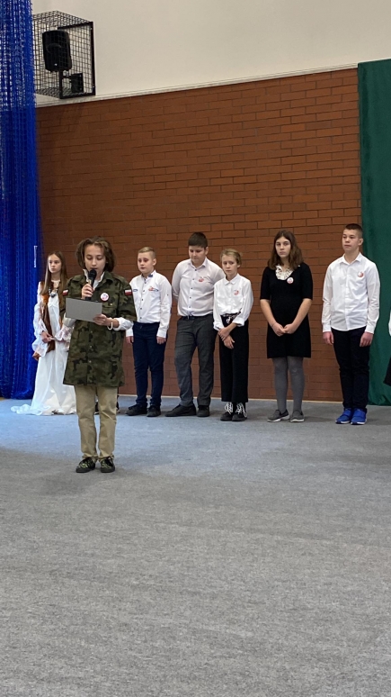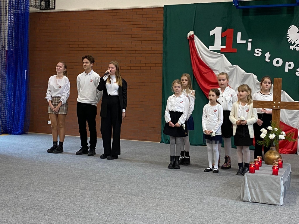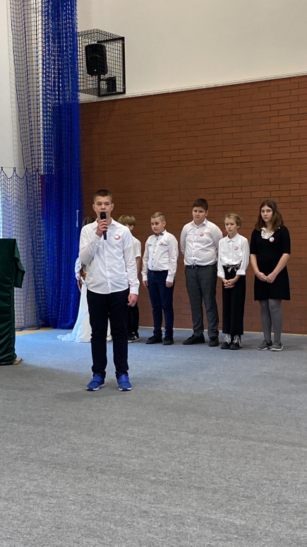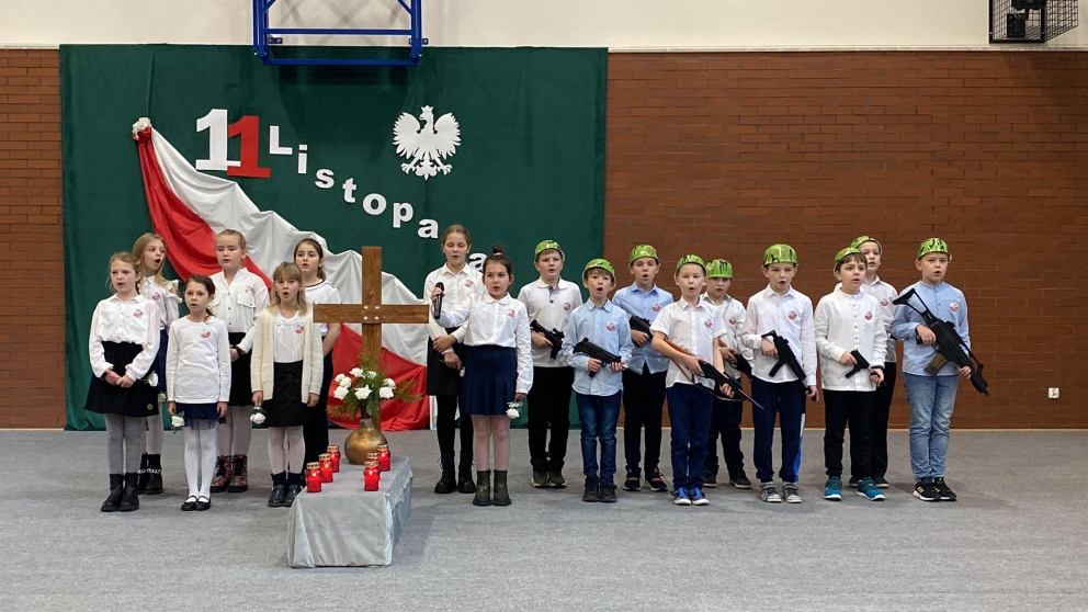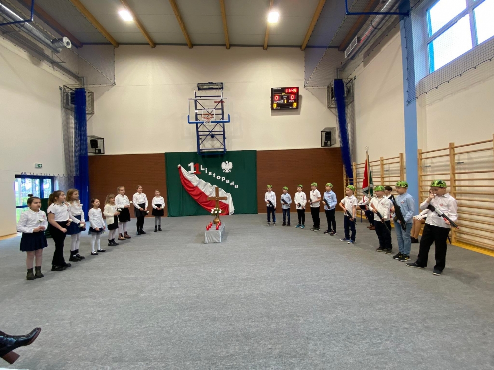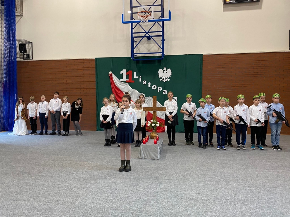 10 listopada odbyła się w naszej szkole uroczysta akademia z okazji 104 rocznicy odzyskania przez Polskę niepodległości. Podczas tej uroczystości przygotowanej przez uczniów z klasy III oraz VI, VII i VIII przypomniana została historia niewoli naszej ojczyzny, począwszy od dnia, kiedy Polska przestała istnieć na mapie Europy, jako niepodległe państwo, przez dzieje tragicznej walki naszego narodu o wyzwolenie, aż po dzień odzyskania niepodległości. Akademia z okazji Święta Niepodległości była dla uczniów wspaniałą lekcją historii i patriotyzmu. Na zakończenie uroczystości, Pani Dyrektor Bożena Grela podziękowała nauczycielom, uczniom za cenną lekcję historii, która była także ważnym źródłem informacji o trudnych losach naszej Ojczyzny.