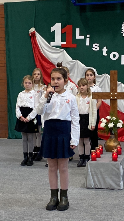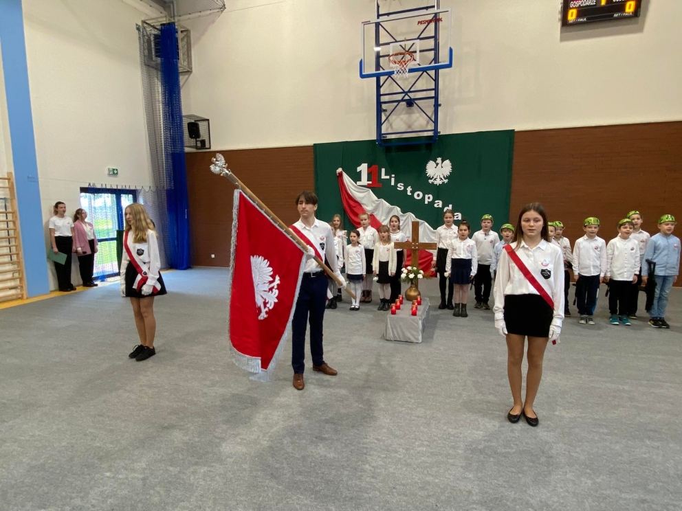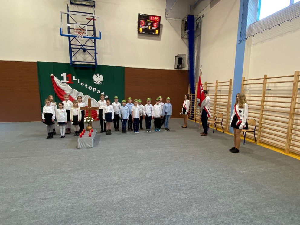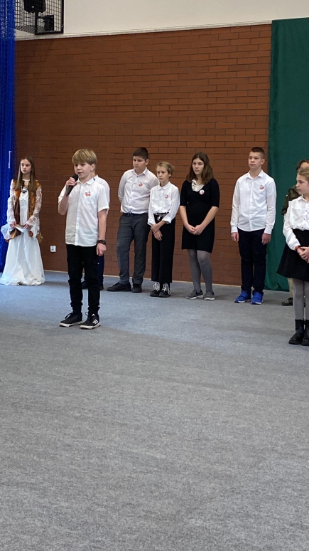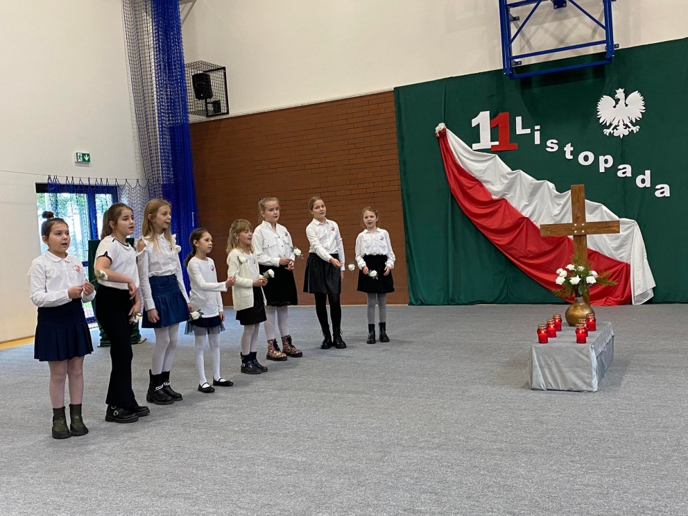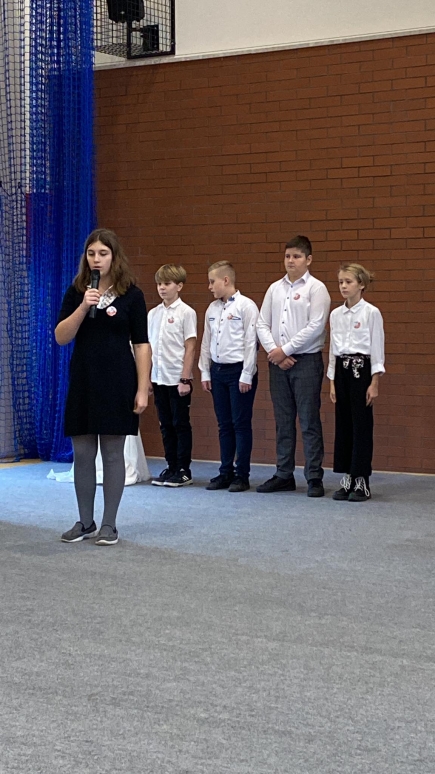 10 listopada odbyła się w naszej szkole uroczysta akademia z okazji 104 rocznicy odzyskania przez Polskę niepodległości. Podczas tej uroczystości przygotowanej przez uczniów z klasy III oraz VI, VII i VIII przypomniana została historia niewoli naszej ojczyzny, począwszy od dnia, kiedy Polska przestała istnieć na mapie Europy, jako niepodległe państwo, przez dzieje tragicznej walki naszego narodu o wyzwolenie, aż po dzień odzyskania niepodległości. Akademia z okazji Święta Niepodległości była dla uczniów wspaniałą lekcją historii i patriotyzmu. Na zakończenie uroczystości, Pani Dyrektor Bożena Grela podziękowała nauczycielom, uczniom za cenną lekcję historii, która była także ważnym źródłem informacji o trudnych losach naszej Ojczyzny.