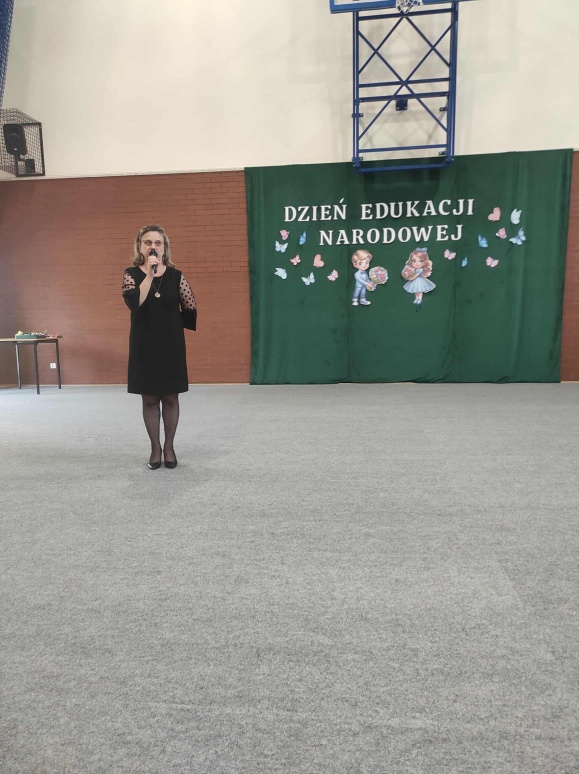 10 października odbyła się w naszej szkole uroczysta akademia z okazji Dnia Edukacji Narodowej, którą otworzyła Dyrektor Szkoły Pani Bożena Grela. Powitała przybyłych gości, nauczycieli, pracowników szkoły oraz uczniów. Następnie podziękowała wszystkim za pasję, kreatywność, codzienne zaangażowanie i wkład w kształcenie oraz wychowanie młodego pokolenia. W dalszej części odbył się występ artystyczny, który spotkał się z uznaniem i entuzjazmem zgromadzonej publiczności wprowadzając wszystkich w radosny nastrój. Nauczyciele oraz pracownicy szkoły mieli okazję poczuć się wyjątkowo i zauważyć, jak wielkie znaczenie ma ich praca. Akademia była również chwilą refleksji nad misją edukacji oraz budowaniem relacji między uczniami a nauczycielami.