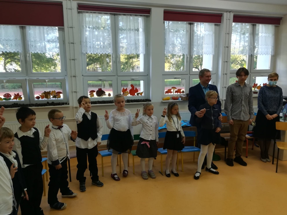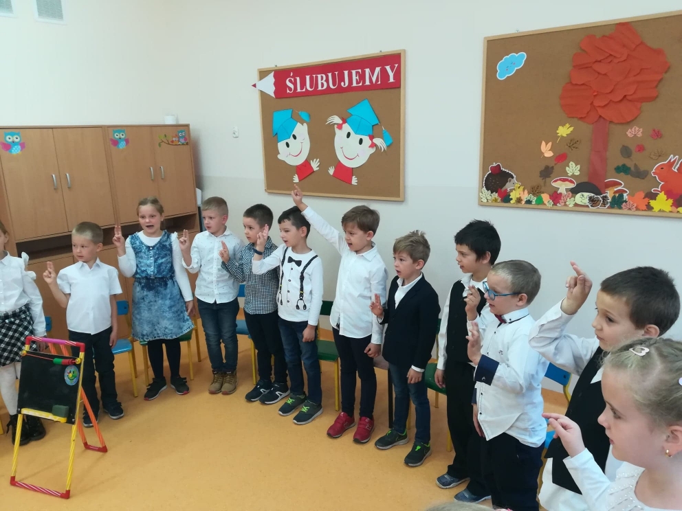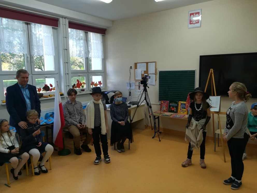 Tradycją szkolnej biblioteki jest przyjęcie do grona czytelników uczniów klasy I. To uroczyste wydarzenie miało miejsce 16 października. Nasi najmłodsi uczniowie złożyli ŚLUBOWANIE w obecności pani dyrektor Kamili Sobiech, swojej wychowawczyni oraz pani bibliotekarki. Poznali zasady korzystania z wypożyczalni oraz zbioru książek, otrzymali pomocne dla nich instrukcje i pamiątkowe zakładki do książek. Uroczystość obfitowała w niespodzianki. Był teatrzyk młodego aktora z inscenizacją wierszy dla dzieci, które wyszły spod pióra polskich poetów. Część artystyczną pasowania przygotowali uczniowie klasy IV pod kierunkiem pani bibliotekarki Jadwigi Cieczko. Nasi nowi czytelnicy mają już na swoim koncie pierwsze wypożyczone samodzielnie książki.