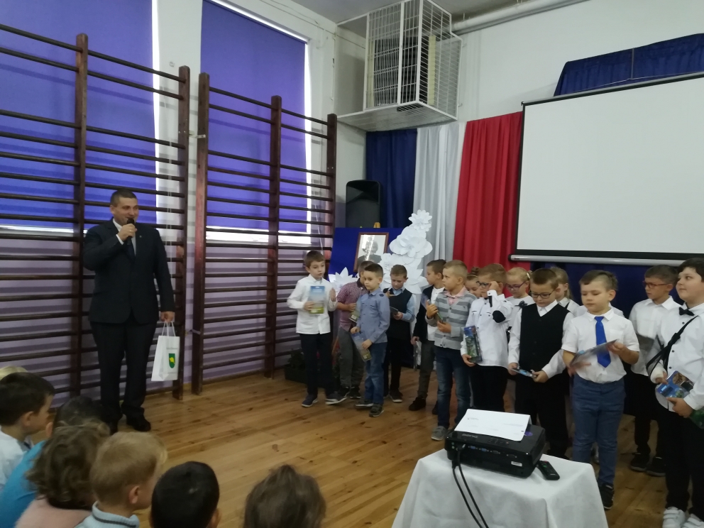 W dniu dzisiejszym w naszej szkole odbyło się pasowanie na ucznia klasy I. W uroczystości wzięli udział wszyscy uczniowie klasy pierwszej wraz z wychowawczynią i rodzicami. Na uroczystość przybyli zaproszeni goście: Wójt Gminy Bobrowo pan Paweł Klonowski. Radny wsi Drużyny pan Władysław Szulc, radny wsi Kruszyny pan Roman Węgrzynowski, sołtys wsi Grzybno pan Kazimierz Hurtak oraz ksiądz Parafii Grzybno Jarosław Janowski. Ponadto swoją obecnością zaszczyciły nas emerytowane nauczycielki pani Zofia Roznerska oraz Lubomira Wróblewska. Wszyscy goście zostali ciepło powitani przez dyrektora szkoły panią Kamilę Sobiech. Pierwszoklasiści recytowali wiersze, śpiewali piosenki. Zgodnie stwierdzono, że świetnie zdali egzamin i mogą zostać przyjęci w poczet uczniów szkoły. Następnie pierwszoklasiści złożyli uroczyste ślubowanie. Niezwykłym przeżyciem było dla nich pasowanie, którego dokonała dyrektor szkoły pani Kamila Sobiech przez symboliczne dotknięcie każdego z kandydatów magicznym ołówkiem. Każdy pierwszoklasista otrzymał pamiątkowy dyplom oraz drobny upominek od Rady Rodziców, Wójta Gminy Bobrowo oraz kolegów i koleżanek z klasy II. Wszystkim pasowanym uczniom i uczennicom życzymy sukcesów w nauce oraz radosnych chwil spędzonych w naszej szkole.