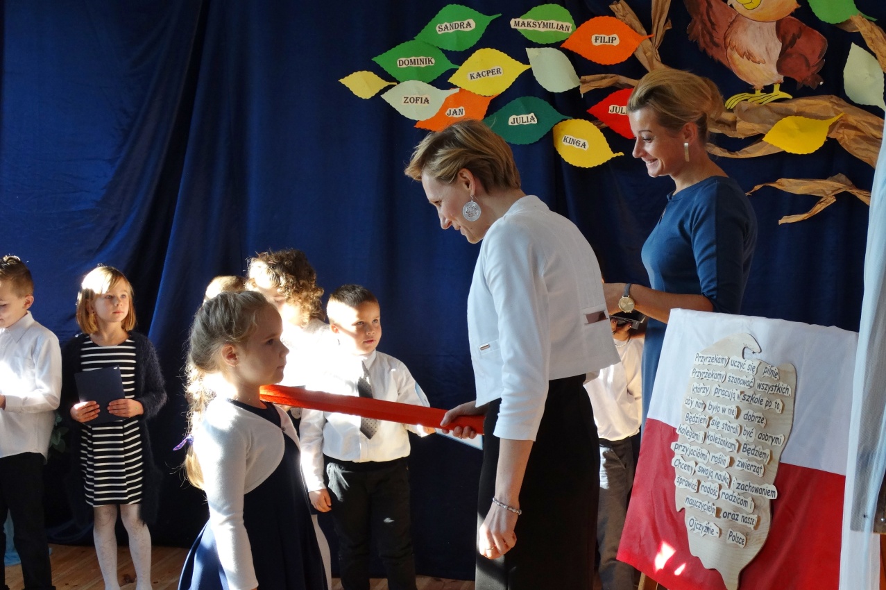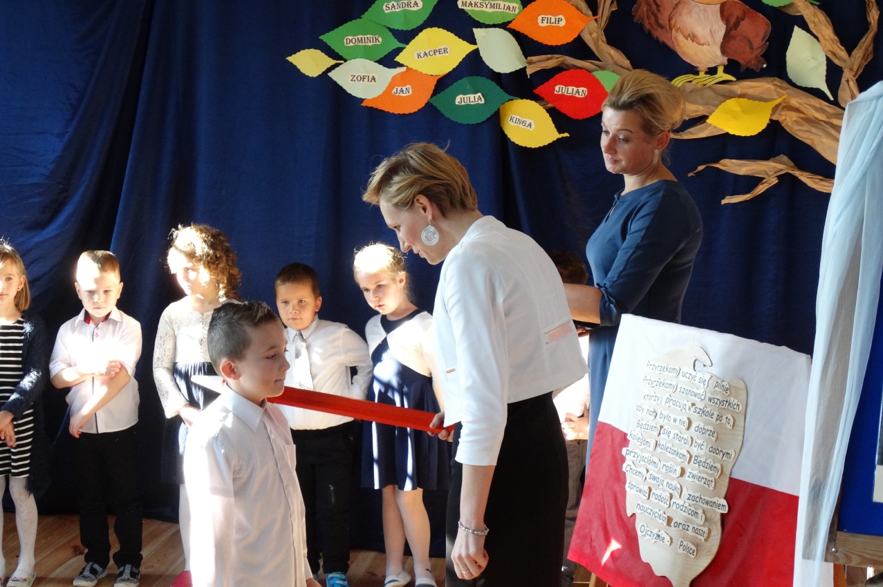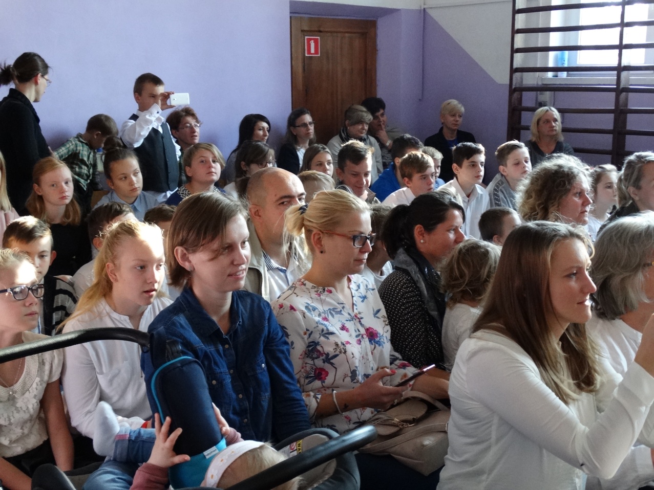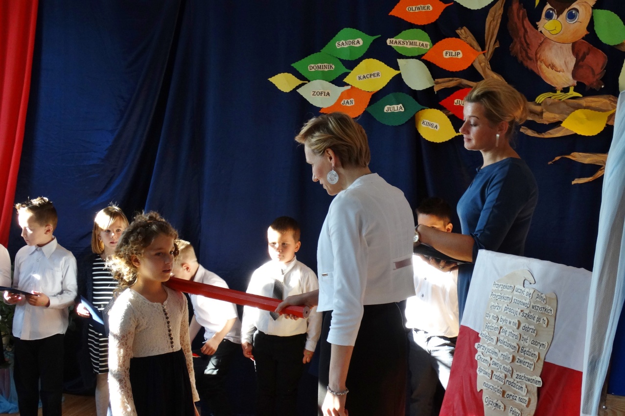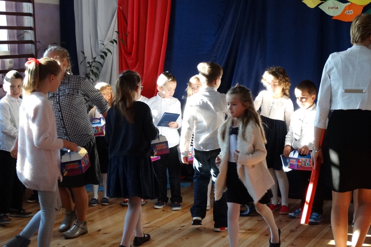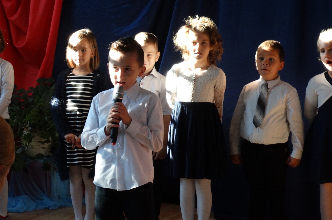 Dzień 02 października był kolejnym wyjątkowym  dniem w naszej szkole, ponieważ odbyło się wtedy Pasowanie na Ucznia. Wszyscy uczniowie klasy pierwszej przybyli do szkoły ze swoimi gośćmi: rodzicami, rodzeństwem, babciami i dziadkami, bo przecież pasowanie  to jedno z najważniejszych wydarzeń w szkolnym życiu pierwszoklasisty. Od tego dnia każde dziecko czuje się już prawdziwym uczniem, czyli pełnoprawnym członkiem naszej szkolnej rodziny. Po programie artystycznym, w którym dzieci zaprezentowały swoje zdolności recytatorskie oraz muzyczne, przystąpiono do ślubowania. W jego trakcie uczniowie z wielką powagą obiecali, że będą przynosić chlubę rodzicom, nauczycielom, szkole i ojczyźnie, że będą dobrymi kolegami i pilnymi uczniami. Wszyscy trzymamy za nich kciuki i służymy pomocą, aby nie mieli trudności w realizacji tych postanowień. Największym przeżyciem dla dzieci był moment pasowania. Pani Dyrektor Kamila Sobiech poprzez dotknięcie ogromnym, zaczarowanym ołówkiem ramienia każdego dziecka  zamieniała go w prawdziwego ucznia. Dzięki hojnej pomocy rodziców po pasowaniu czekał na dzieci w klasie pyszny poczęstunek. Pani dyrektor na pamiątkę tego wydarzenia wręczyła dzieciom dyplomy. Ponadto pierwszoklasiści otrzymali prezenty w postaci kuferków obfitości od swoich kolegów z klasy II.