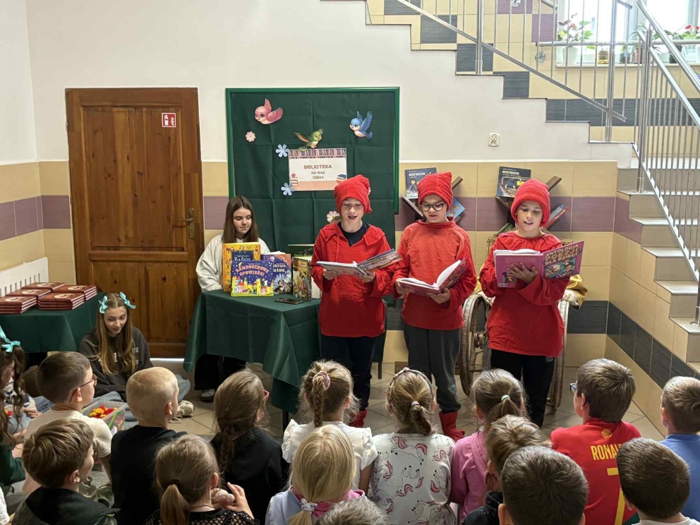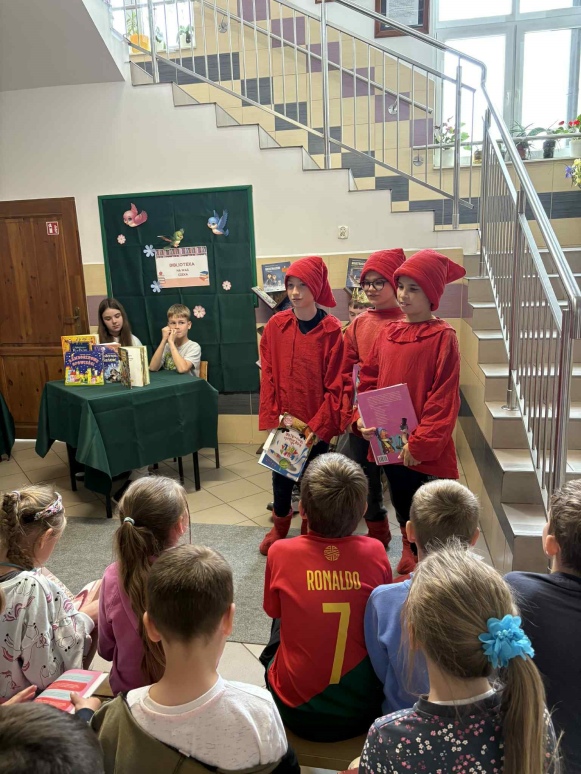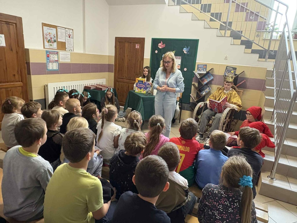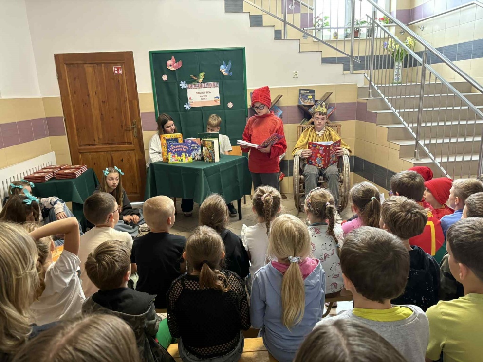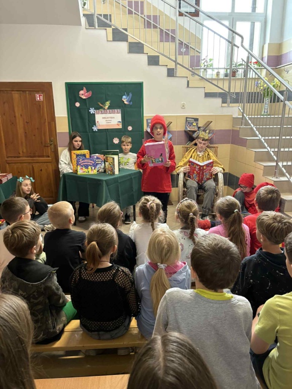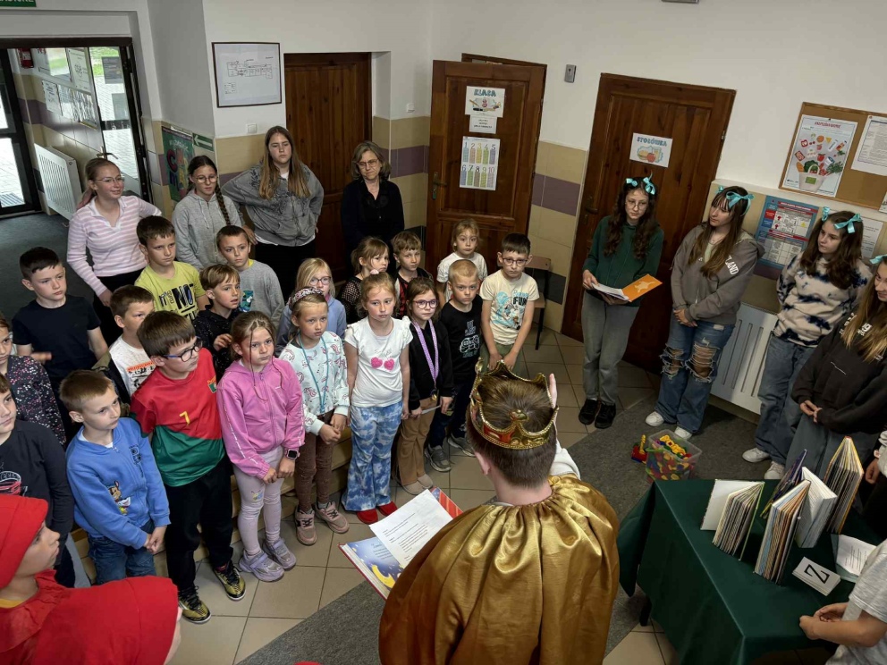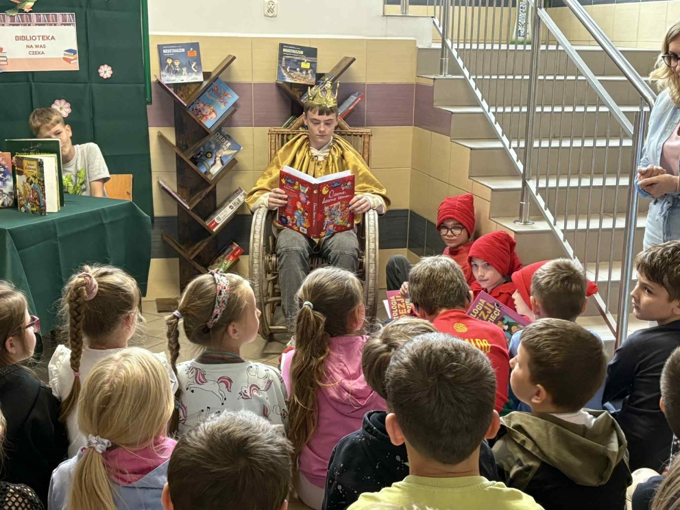 W ramach promocji czytelnictwa, 30 maja odbyło się wyjątkowe pasowanie uczniów klasy I na czytelników szkolnej biblioteki. Uroczystość uświetniło przedstawienie „Król Książek”, które przygotowali uczniowie klasy VI pod opieką nauczycielki bibliotekarki Kamili Sobiech. Młodzi czytelnicy mieli okazję nie tylko poznać zasady korzystania z biblioteki, ale także w magiczny sposób wkroczyć do świata książek, dzięki barwnej i pełnej humoru inscenizacji. Pasowanie na czytelnika to ważny moment, który ma zachęcić dzieci do regularnego sięgania po książki i rozwijania swojej wyobraźni. Gratulujemy nowym czytelnikom i życzymy wielu fascynujących przygód z książką!