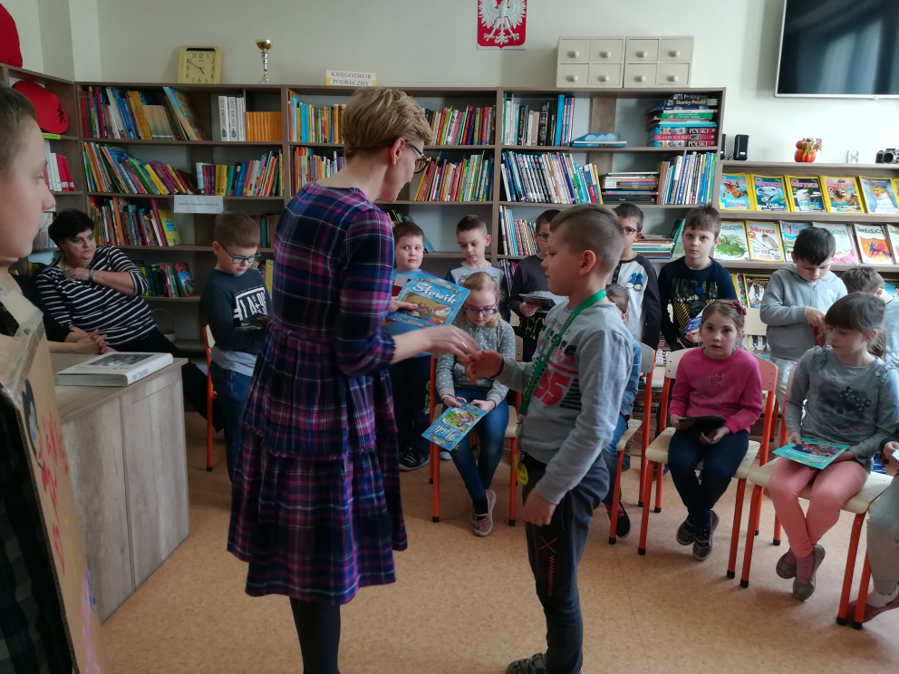 18 marca odbyło się uroczyste pasowanie na czytelnika biblioteki szkolnej uczniów klas I. Głównym celem uroczystości było zachęcenie najmłodszych uczniów do korzystania z biblioteki szkolnej, wypożyczania książek oraz nieustannego rozwijania umiejętności czytania. W naszej szkole pasowanie uczniów klas pierwszych na czytelników biblioteki na stałe wpisało się do kalendarza uroczystości szkolnych. Zazwyczaj uroczystość ta odbywa się na przełomie I/ II semestru, kiedy uczniowie znają już prawie cały alfabet. Specjalnie na tę okazję uczniowie klasy V pod kierunkiem bibliotekarki pani Kamili Sobiech przygotowali część artystyczną, podczas której przekazano dzieciom wiedzę o książce i bibliotece. Po takim wprowadzeniu przyszli czytelnicy złożyli uroczyste przyrzeczenie, że będą kochać i szanować książki, korzystać z ich mądrości i sumiennie wypełniać obowiązki czytelnika. Po przyrzeczeniu nastąpiło uroczyste pasowanie na czytelnika. Spotkanie przebiegło w miłej i przyjaznej atmosferze.