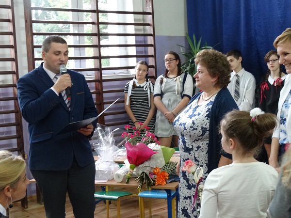„Dziękujemy Pani za ciężką, często syzyfową pracę. Dziękujemy za wszystkie legitymacje, kwity za to, że w Sekretariacie wszystko było dopięte na ostatni guzik. Wypełnione dokumenty, odebrane telefony- tego nie da się zliczyć. Wszystko to przecież wykonywała Pani dla nas oraz naszej kochanej szkoły… Jeszcze raz dziękujemy Pani za wszystko! Życzymy wielu sukcesów w życiu!” Tymi słowami przedstawiciele Samorządu Uczniowskiego, Rady Rodziców, Grono Pedagogiczne oraz Pani Dyrektor Kamila Sobiech pożegnali Panią Małgorzatę Wiśniewską-sekretarkę szkoły.