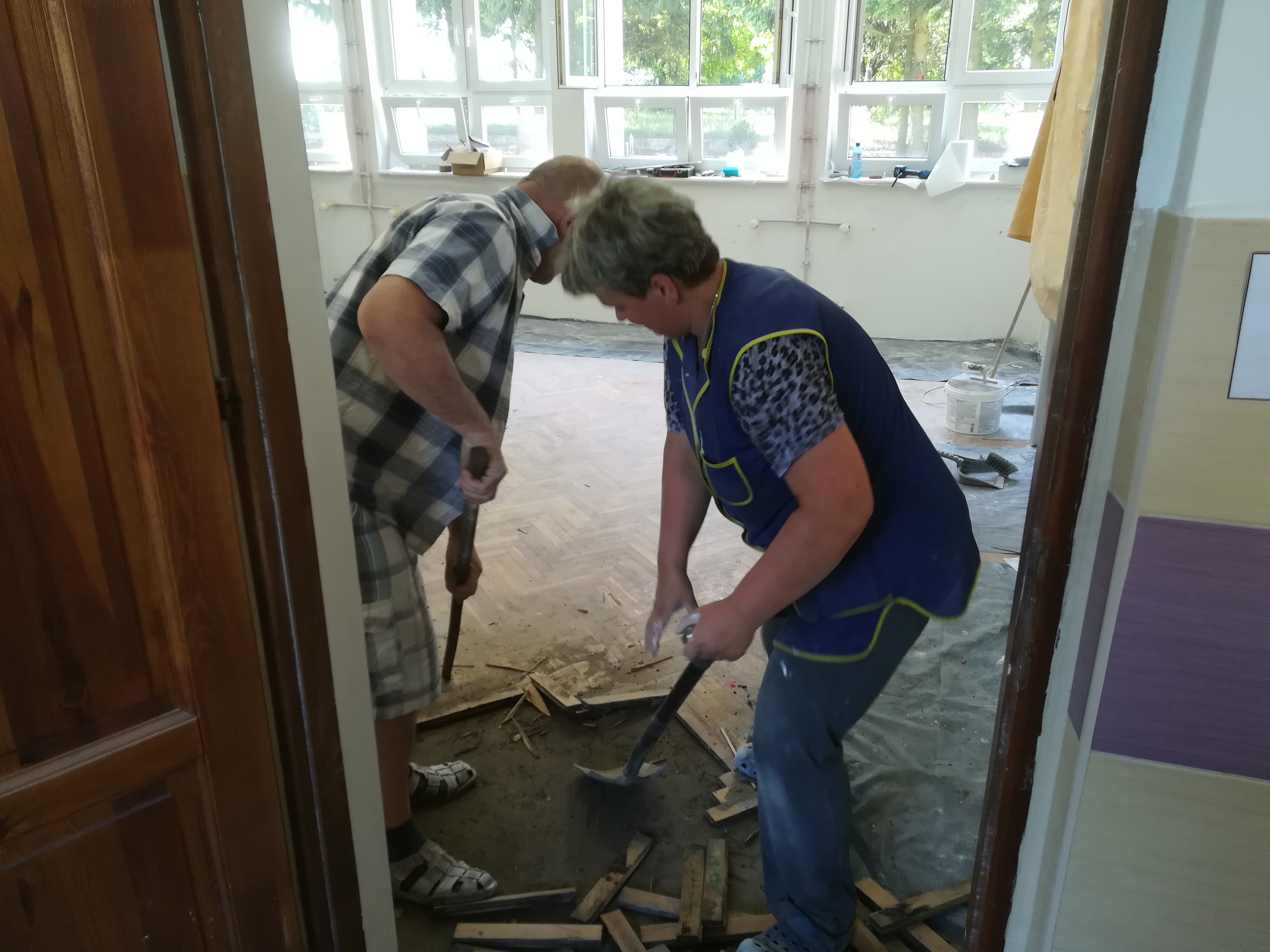 Kiedy starsi i młodsi uczniowie korzystali z wakacyjnego wypoczynku, w naszej szkole trwały prace remontowe. Największe na parterze. Pomalowano oddział „0” oraz klasy I-III. W dwóch klasach wymieniono podłogę. Ponadto udało się wydzielić pomieszczenie na stołówkę szkolną. Wymieniono oświetlenie klas. Remontu doczekał się również gabinet pani dyrektor i sekretariat. Odnowiono zewnętrzną elewację szkoły. Jednak największą inwestycją było wybudowanie nowego boiska szkolnego. Mamy nadzieję, że coraz lepsze warunki nauki i pracy w nowym roku szkolnym będą przynosiły satysfakcję i wysokie wyniki w nauce.