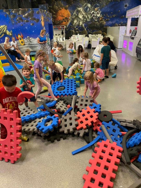 19 czerwca najmłodsi uczniowie naszej szkoły udali się na wycieczkę do Centrum Zabaw „Galaktyka” do Grudziądza, gdzie bardzo intensywnie spędziły dzień. Celem wyjazdu była przede wszystkim dobra zabawa oraz integracja grupy. Dzieci znalazły tam przestrzenny tor przeszkód, super długą trzytorową zjeżdżalnię falistą, strefę „Malucha” z atrakcyjnymi modułami, kapsuły statków kosmicznych, tunele, gwiezdne labirynty, baseny z piłkami. Z dużym zaangażowaniem brały udział w zabawach z animatorkami. Po super zabawie czekał na nich przepyszny obiad. To był bardzo udany dzień. Wszyscy bardzo zadowoleni wrócili do przedszkola.