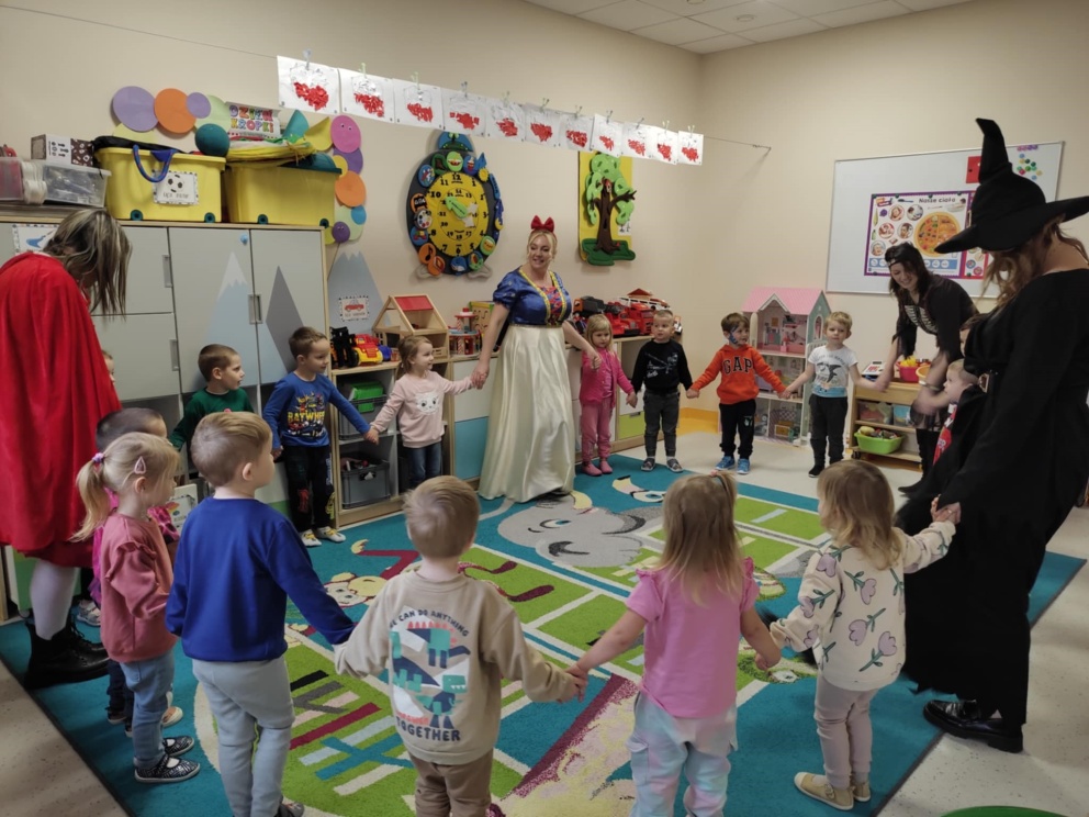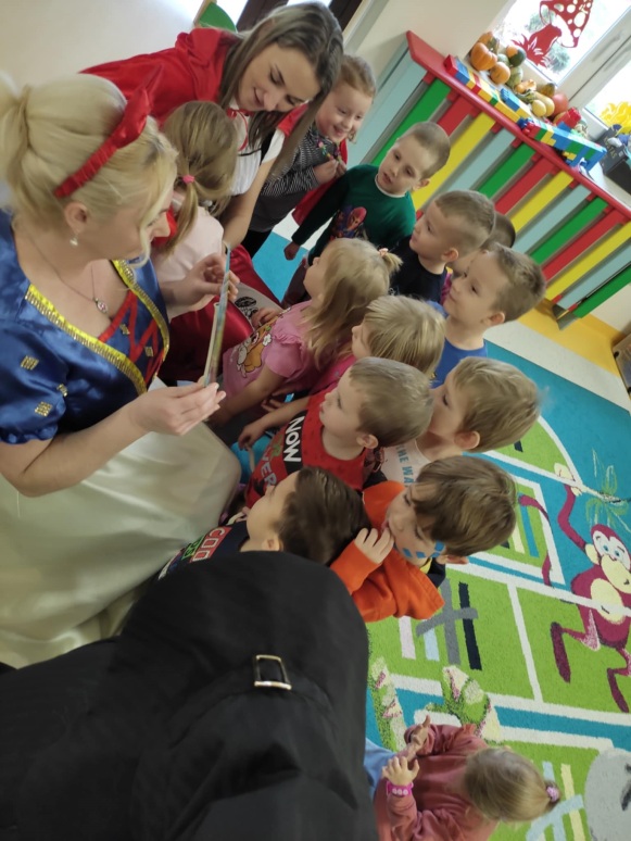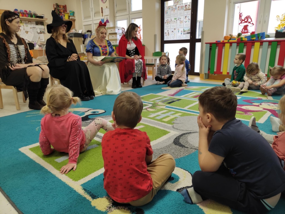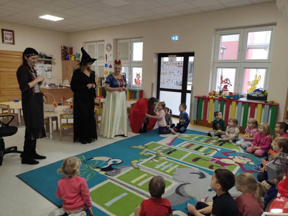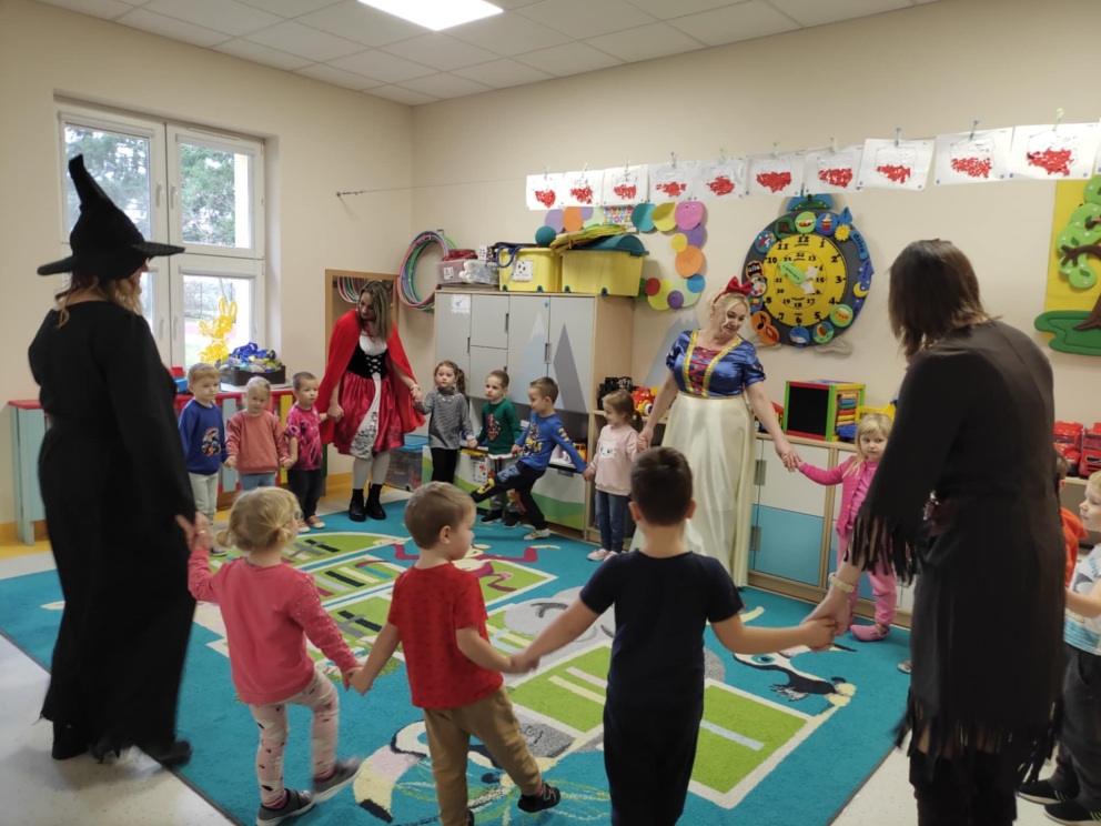 18 listopada najmłodszych uczniów naszej szkoły odwiedziły bajkowe postacie. Przedszkolaczki z wielką uwagą słuchały bajek czytanych przez Królewnę Śnieżkę, Babę Jagę, Czerwonego Kapturka oraz Pocahontas. Magiczne spotkanie zakończyło się wspólnym tańcem.