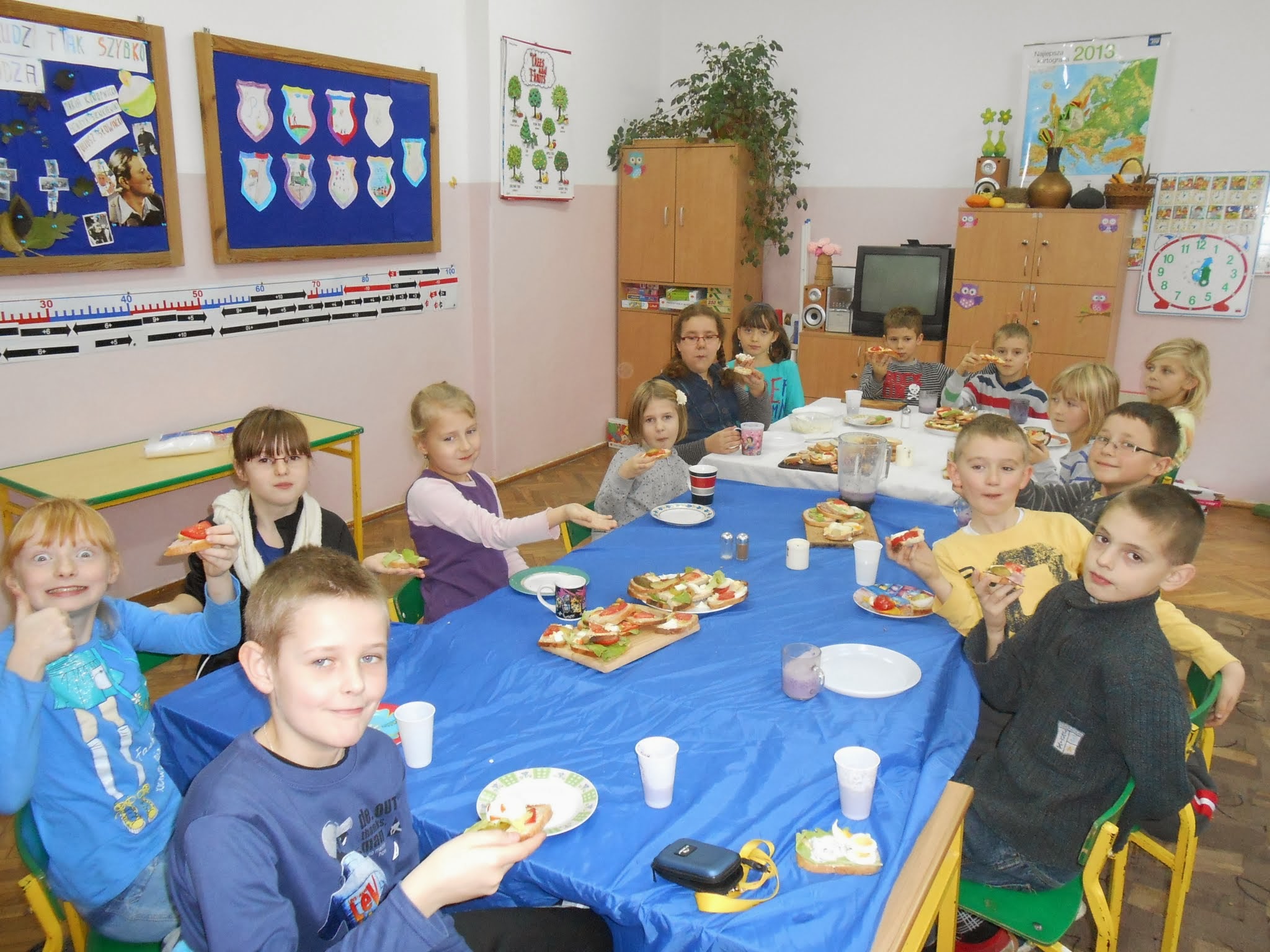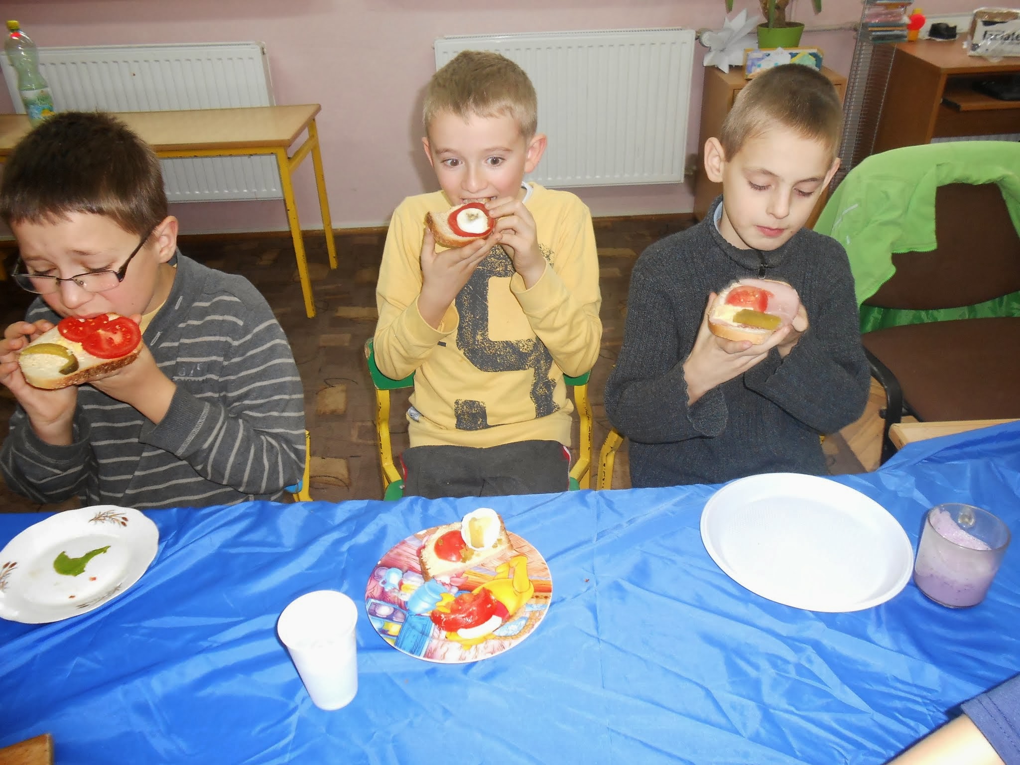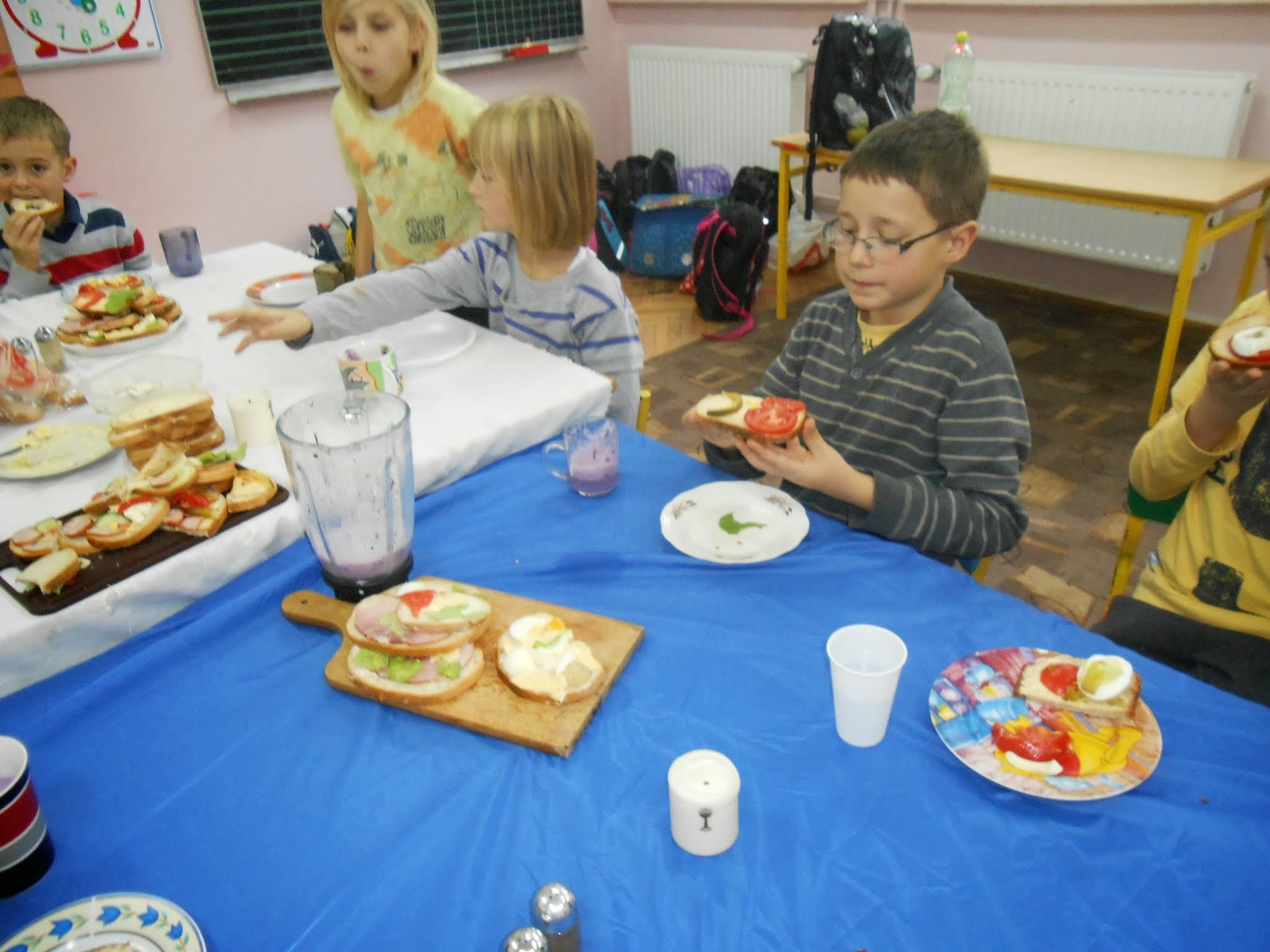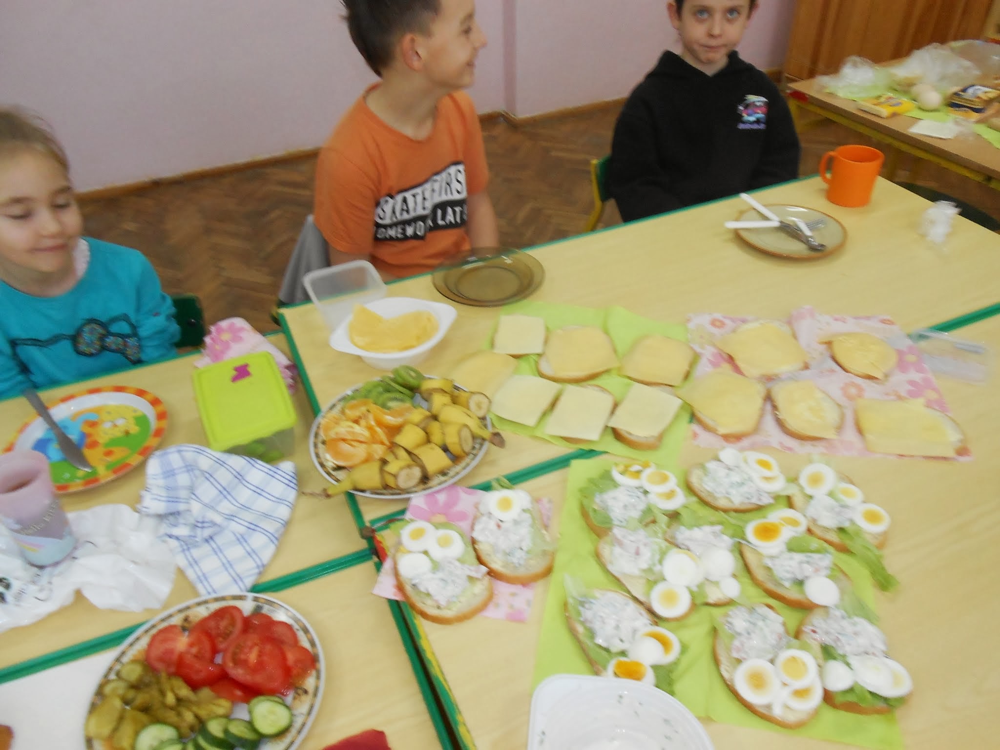 Nasi młodsi uczniowie 8 listopada po raz kolejny przystąpili do programu „Śniadanie daje moc”.” Śniadanie to najważniejszy posiłek dnia. Dzięki niemu dzieci mają energię do nauki, lepiej koncentrują się podczas lekcji i mają siłę do zabawy. To najlepszy start w nowy dzień!”. Pod takim hasłem uczniowie klas I-III przygotowywali pyszne i zdrowe kanapki. Zadaniem programu było zwiększenie świadomości na temat zdrowego odżywiania i roli śniadania jako pierwszego posiłku w ciągu dnia. Uczniowie po wykonanej pracy z uśmiechami na twarzy zajadali się własnoręcznie zrobionymi kanapkami.