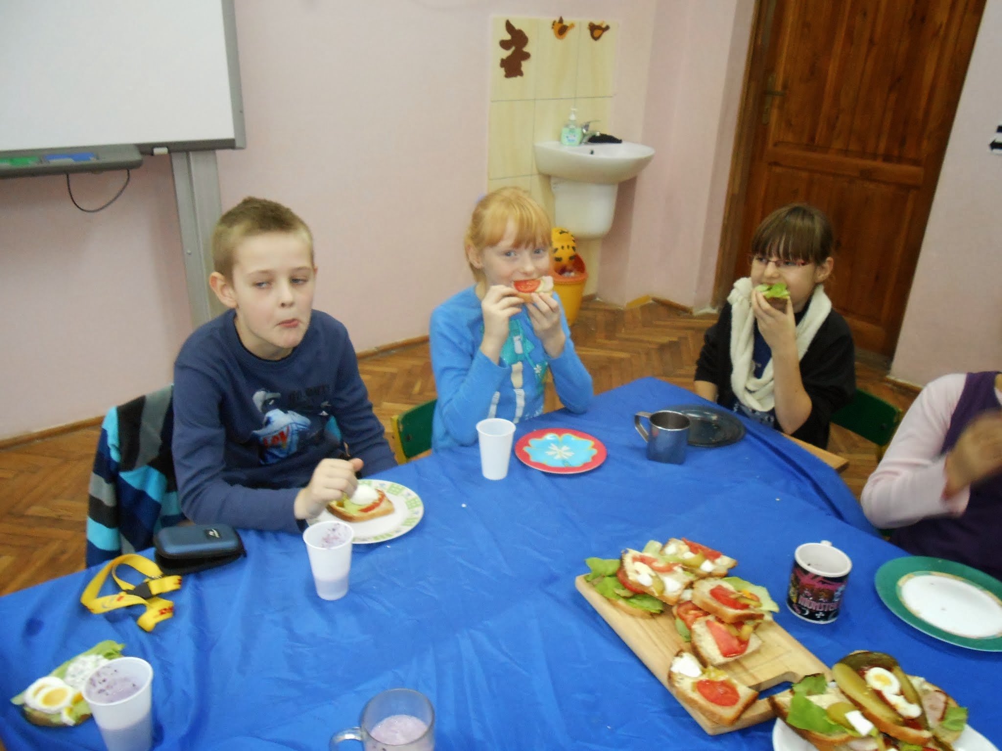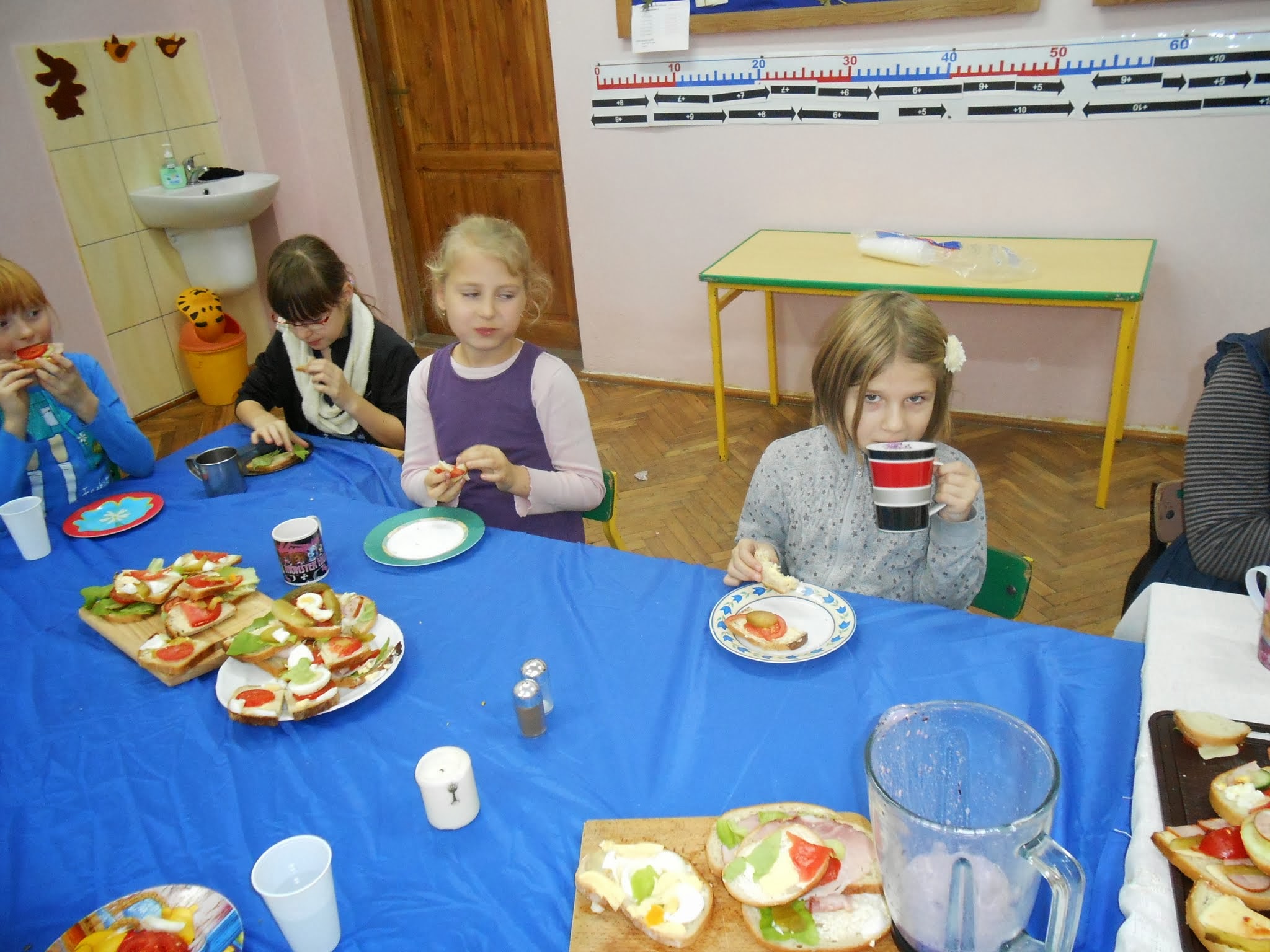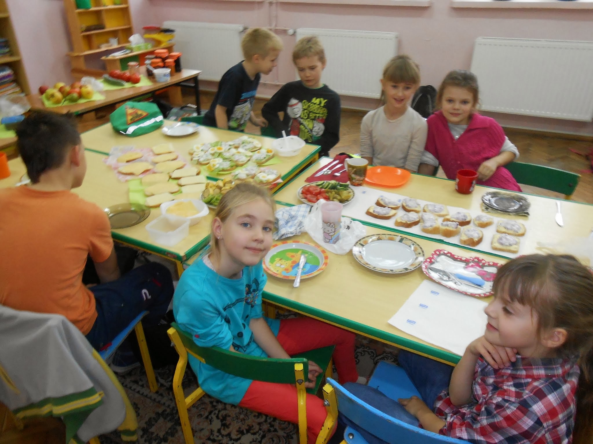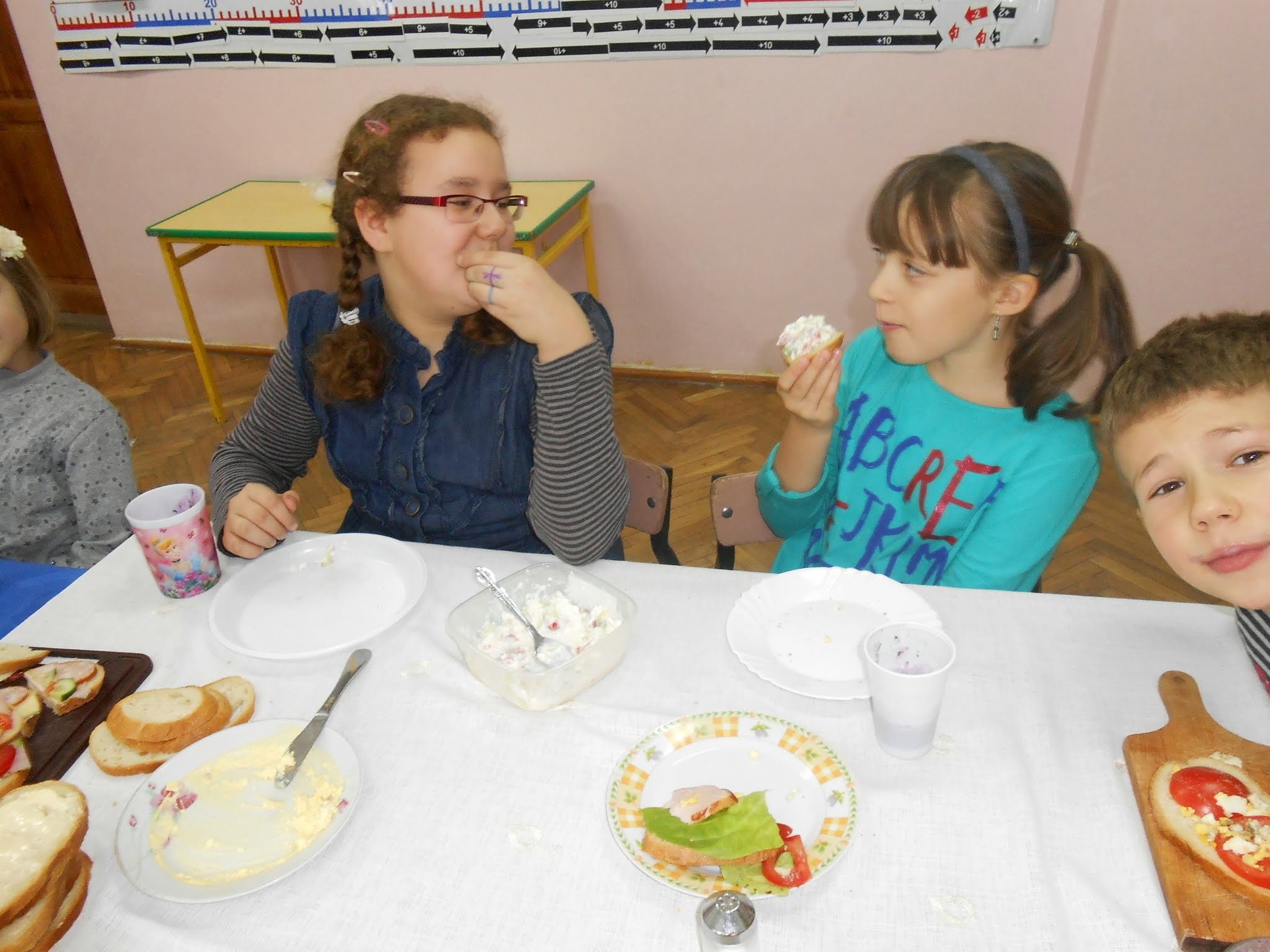 Nasi młodsi uczniowie 8 listopada po raz kolejny przystąpili do programu „Śniadanie daje moc”.” Śniadanie to najważniejszy posiłek dnia. Dzięki niemu dzieci mają energię do nauki, lepiej koncentrują się podczas lekcji i mają siłę do zabawy. To najlepszy start w nowy dzień!”. Pod takim hasłem uczniowie klas I-III przygotowywali pyszne i zdrowe kanapki. Zadaniem programu było zwiększenie świadomości na temat zdrowego odżywiania i roli śniadania jako pierwszego posiłku w ciągu dnia. Uczniowie po wykonanej pracy z uśmiechami na twarzy zajadali się własnoręcznie zrobionymi kanapkami.