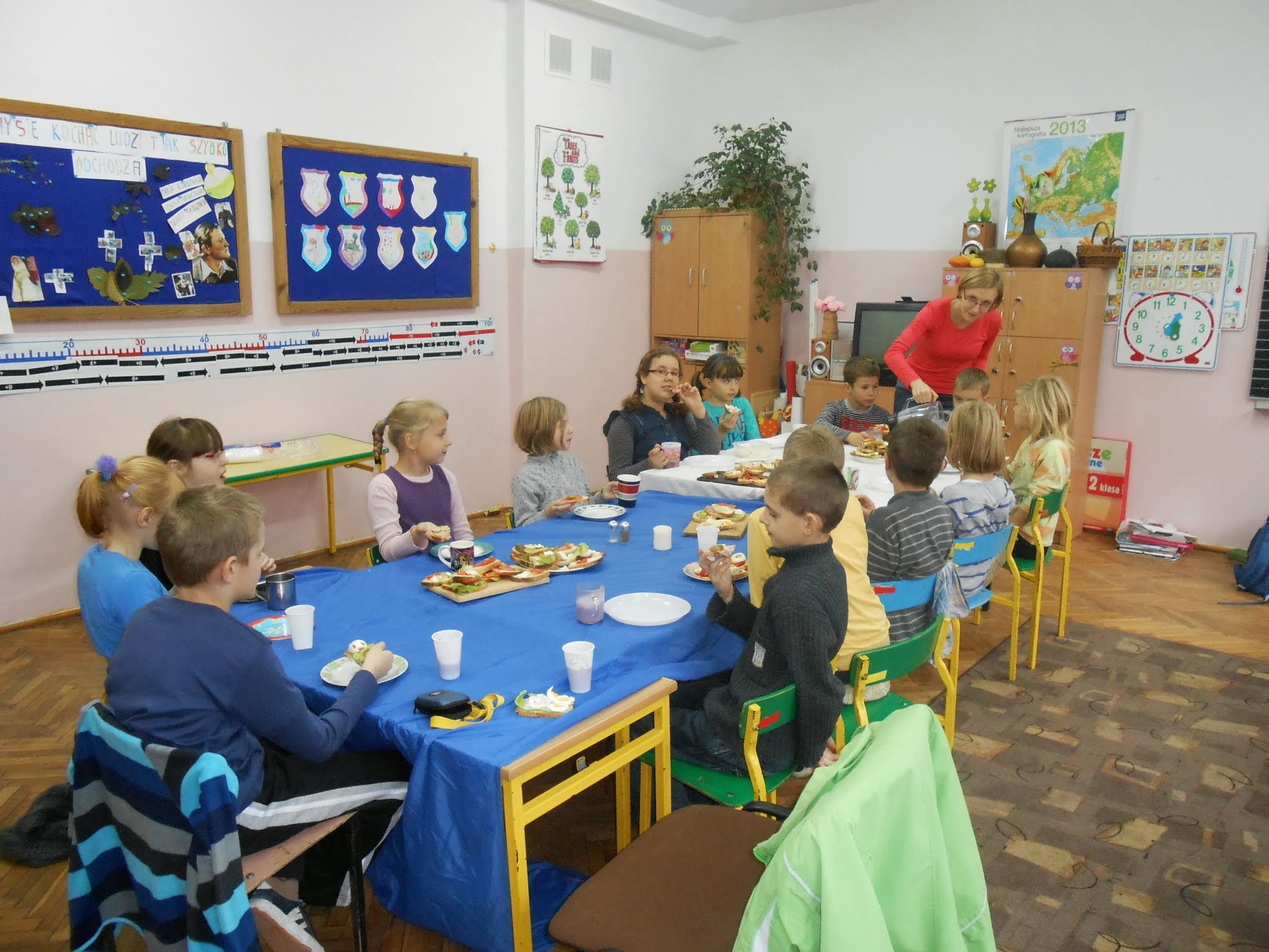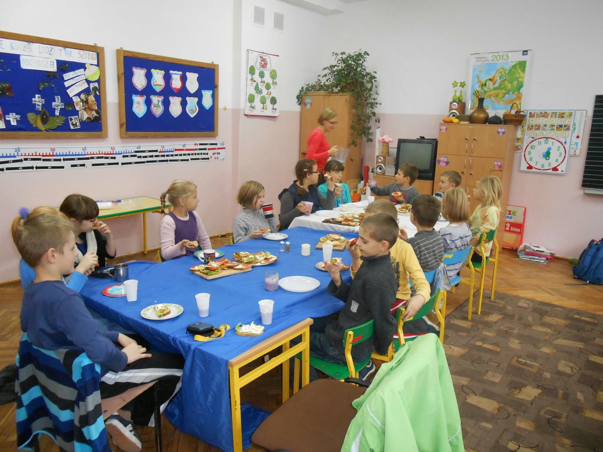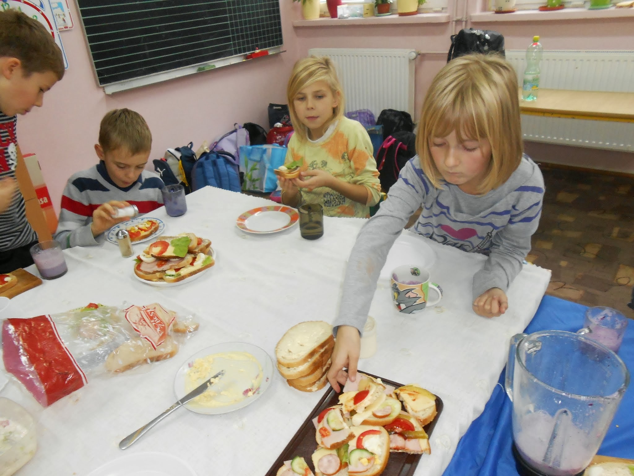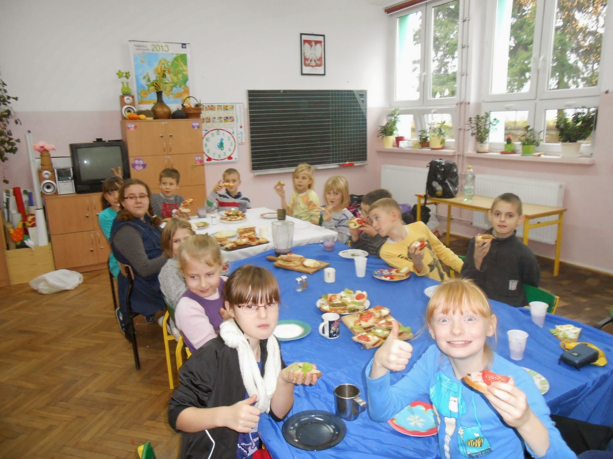 Nasi młodsi uczniowie 8 listopada po raz kolejny przystąpili do programu „Śniadanie daje moc”.” Śniadanie to najważniejszy posiłek dnia. Dzięki niemu dzieci mają energię do nauki, lepiej koncentrują się podczas lekcji i mają siłę do zabawy. To najlepszy start w nowy dzień!”. Pod takim hasłem uczniowie klas I-III przygotowywali pyszne i zdrowe kanapki. Zadaniem programu było zwiększenie świadomości na temat zdrowego odżywiania i roli śniadania jako pierwszego posiłku w ciągu dnia. Uczniowie po wykonanej pracy z uśmiechami na twarzy zajadali się własnoręcznie zrobionymi kanapkami.