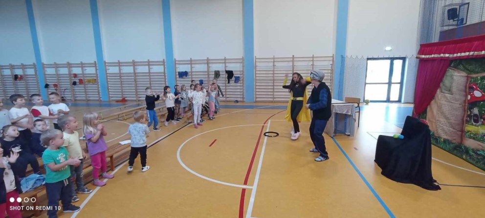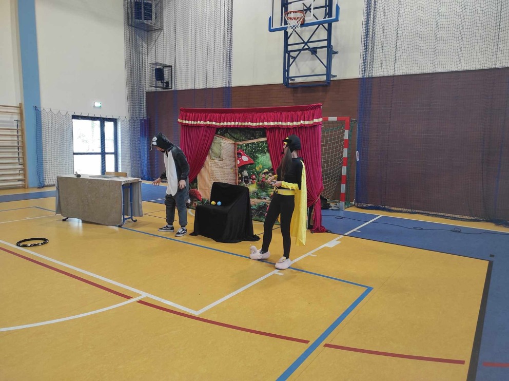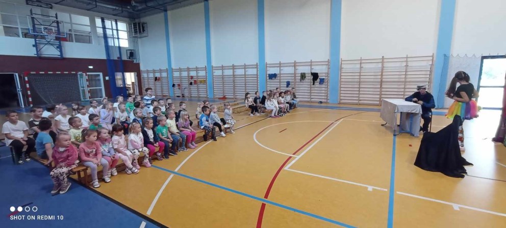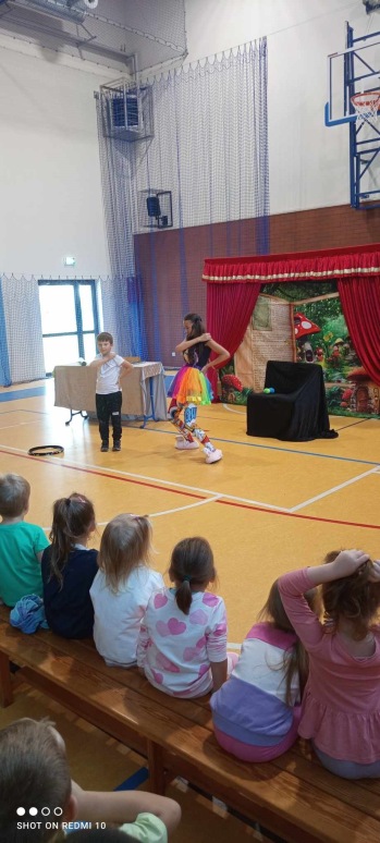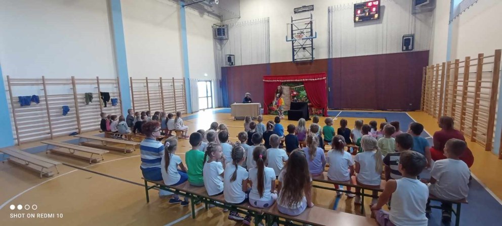 16 września naszą szkołę odwiedzili aktorzy z Teatru „Magiczna Scena” z Krakowa. Przyjechali ze spektaklem profilaktycznym „Księga życzeń”. Bajka skierowana była do przedszkolaków i najmłodszych uczniów klas 0-IV, wypełniona akcją i muzyką. Spektakl mówił o przyjaźni, dobrym zachowaniu, szacunku do osób starszych oraz promował podstawowe zasady dbałości o zdrowie własne i innych. Kształtował umiejętności nawiązywania i podtrzymywania relacji z innymi. Główną bohaterką przedstawienia była przebojowa dziewczynka, na którą czekała cała masa niesamowitych przygód, podczas których dziewczynka musiała podejmować trudne decyzję, wykazać się rozsądkiem i wiedzą zdobytą w domu i szkole. Przedstawienie bardzo podobało się małym widzom, którzy z wielkim zaangażowaniem w nim uczestniczyli. Dziękujemy aktorom za ciekawy i pouczający występ.