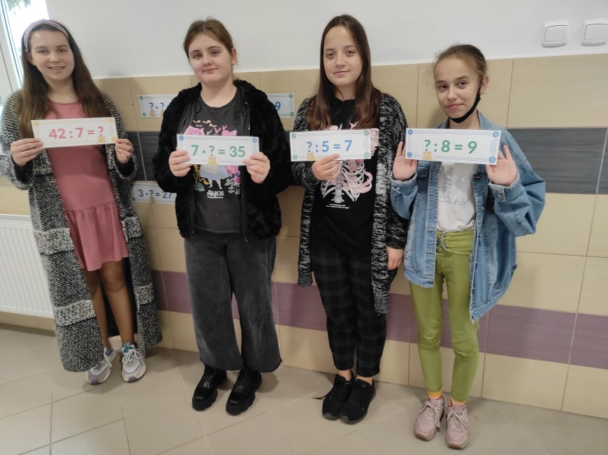 4 października w naszej szkole obchodzono Światowy Dzień Tabliczki Mnożenia. Już kilka dni wcześniej na szkolnych korytarzach pojawiły się plakaty zachęcające do udziału w akcji oraz kąciki z zagadkami, gdzie każdy uczeń miał możliwość przypomnieć sobie tabliczkę mnożenia. W piątek tabliczka mnożenia była już obecna wszędzie. Uczniowie klas 4-8 byli egzaminowani z tabliczki mnożenia przez nauczycielkę matematyki. Następnie uczniowie z najlepszymi wynikami sami zostali egzaminatorami i egzaminowali swoich kolegów i koleżanki. Tego dnia podczas lekcji matematyki uczniowie rozwiązywali szereg zadań, zagadek, łamigłówek dotyczących mnożenia. Kolorowali zakodowane obrazki, szukali tabliczki mnożenia w wykreślankach, grali w gry związane z mnożeniem. Nie zabrakło również zabaw z mnożeniem przy użyciu tablicy interaktywnej.