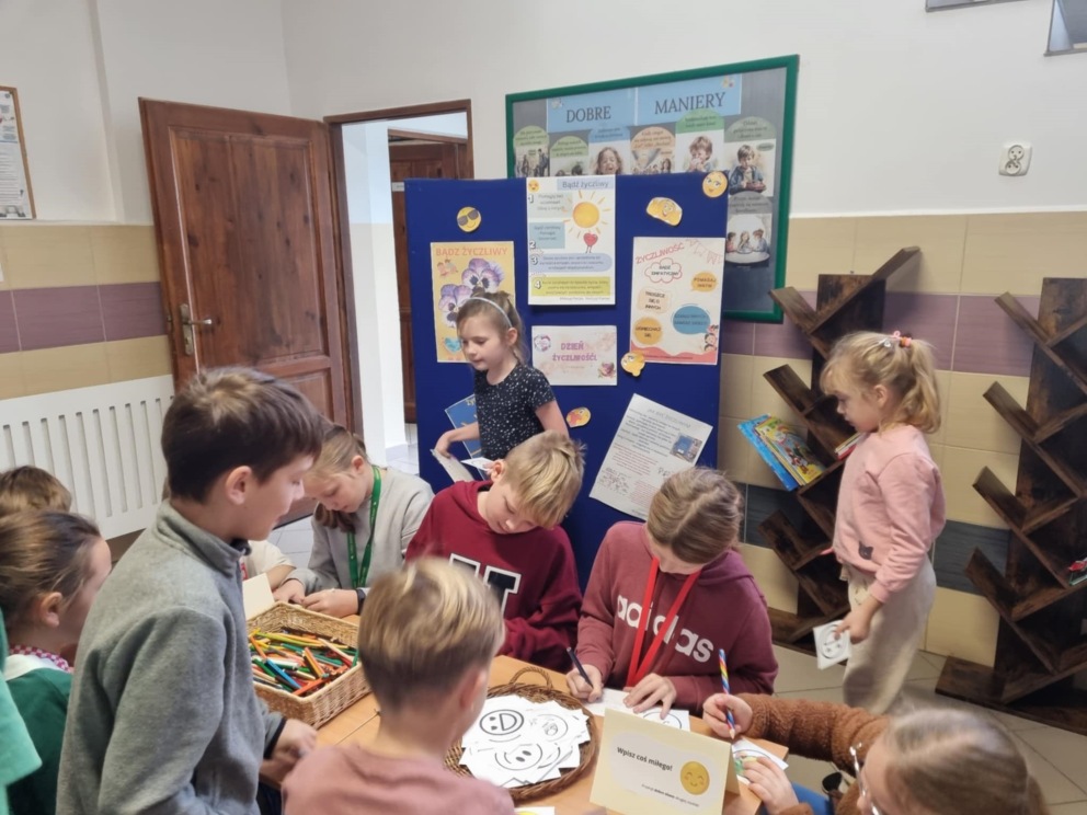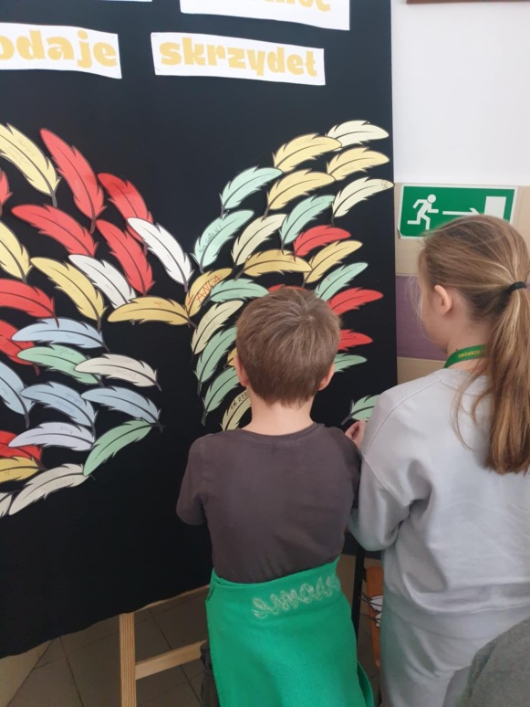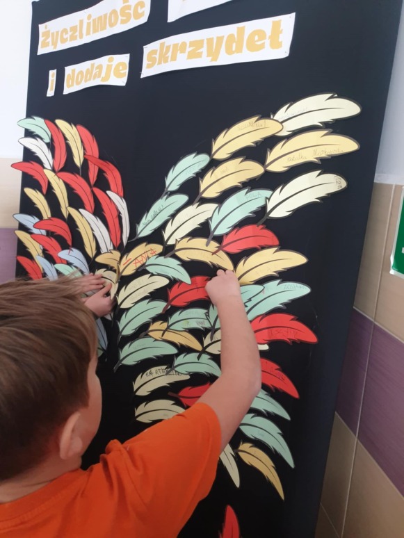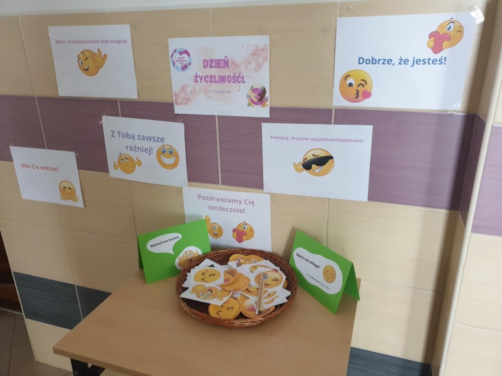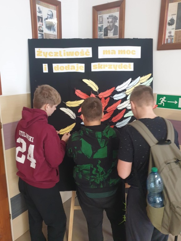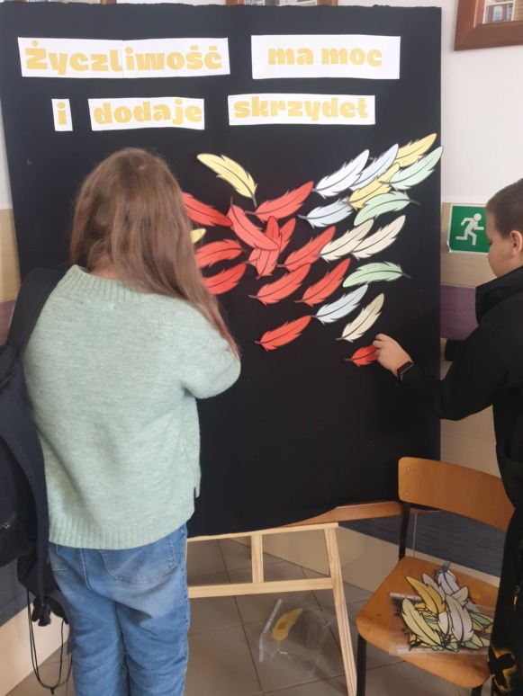 Już po raz kolejny 21 listopada obchodziliśmy w naszej szkole Światowy Dzień Życzliwości. Dzień ten służy promowaniu idei pokoju na całym świecie poprzez okazywanie przyjaznych emocji. Dzień Życzliwości to wspaniały moment do przypomnienia, ile w naszych codziennych relacjach znaczą proste słowa: proszę, dziękuję, przepraszam, dzień dobry, miłego dnia, a także jak cudowną i ciepłą atmosferę wprowadza serdeczny uśmiech na twarzy. Uczniowie klas VI-VIII podczas zajęć z pedagogiem specjalnym i psychologiem szkolnym omówili istotne kwestie dotyczące tolerancji i przemocy rówieśniczej. Klasa VI i VII wykonała plakaty związane z tematyką „ Życzliwości”, które zostały rozwieszone na szkolnym korytarzu. Dodatkowo, uczniowie mieli okazję samodzielnie przekazać miłe słowo drugiej osobie, gdyż na korytarzach szkolnych zostały wyznaczone dwa miejsca do tworzenia miłych emotek. Życzliwość dodaje skrzydeł – dosłownie i w przenośni. Zwieńczeniem wszystkich działań było powstanie pięknych skrzydeł współtworzonych przez uczniów naszej szkoły, nad którymi zawisł napis „Życzliwość ma moc i dodaje skrzydeł”. Skrzydła te mają dodawać odwagi do czynienia dobra dla drugiego człowieka. Bardzo ważne jest, aby być świadomym, że należy być życzliwym nie tylko w święta, ale również, na co dzień, ponieważ warto jest traktować innych tak, jakbyśmy sami chcieli być traktowani.  Organizatorami tego wyjątkowego dnia była pani Angelika Kozłowska i pani Kamila Sobiech.