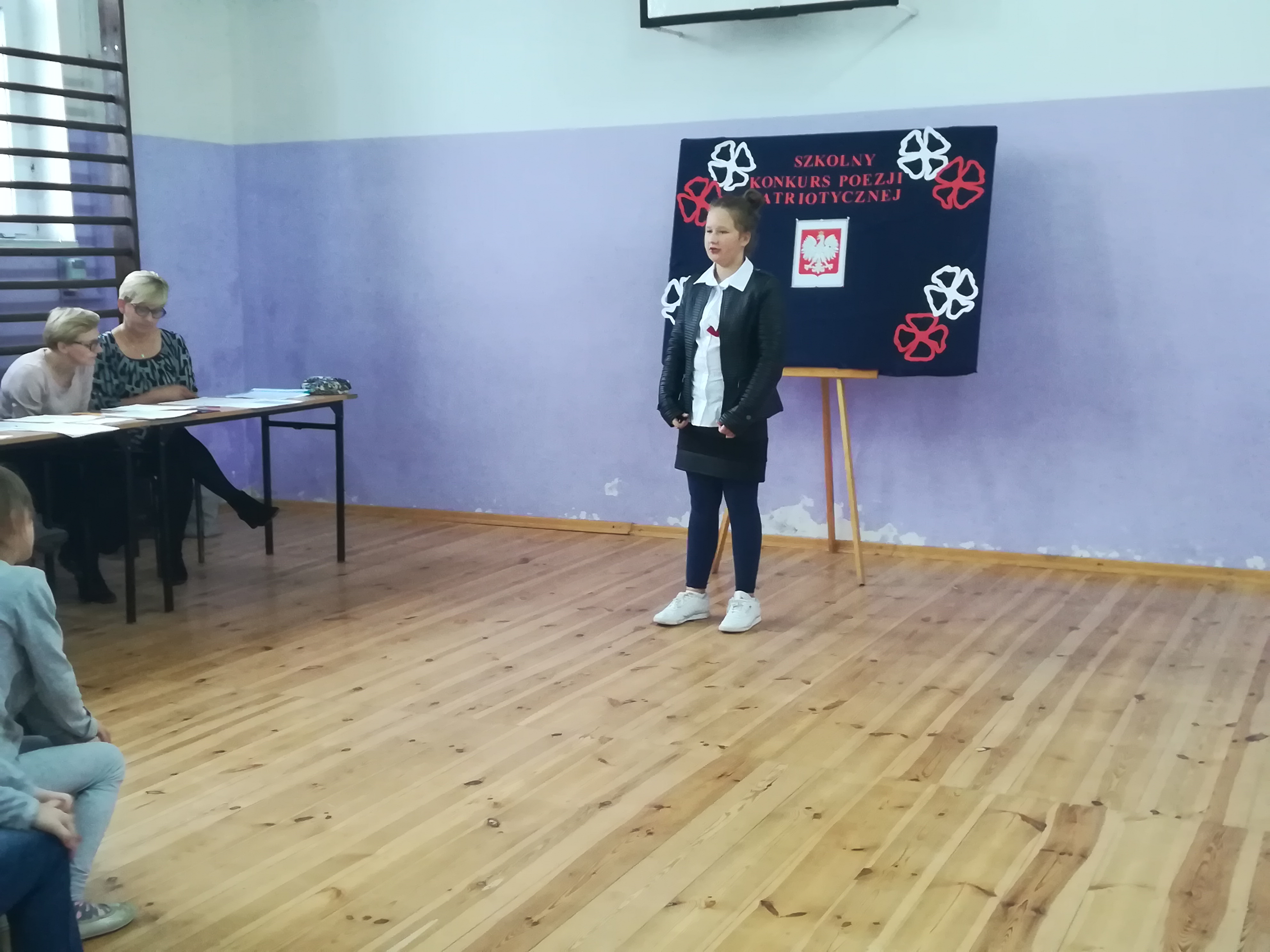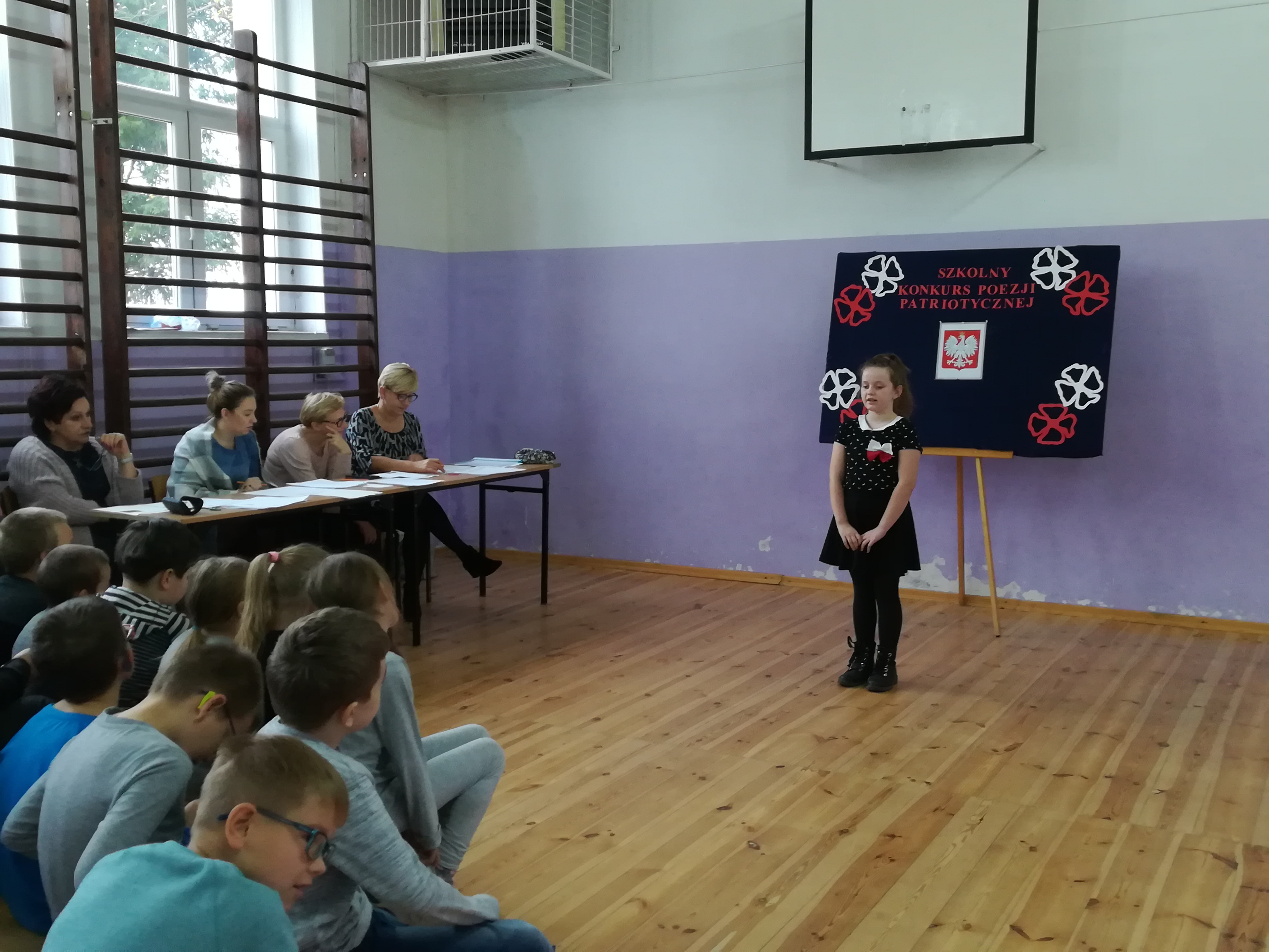 W jury konkursu zasiedli dyrektor szkoły pani Kamila Sobiech, n-l języka polskiego pani Bernadeta Cieczko, n-l języka angielskiego pani Dominika Małkiewicz oraz nauczyciel historii pani Anna Agacka. W kategorii klas IV-VI komisja wyłoniła 3 najlepszych recytatorów: