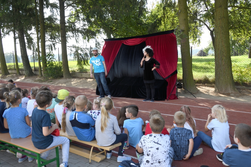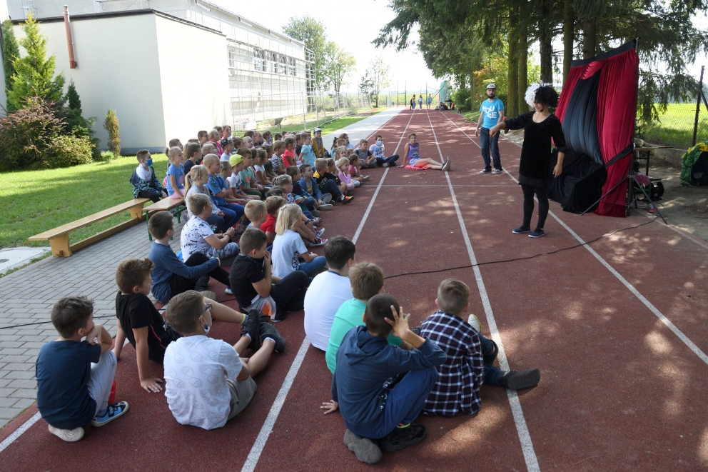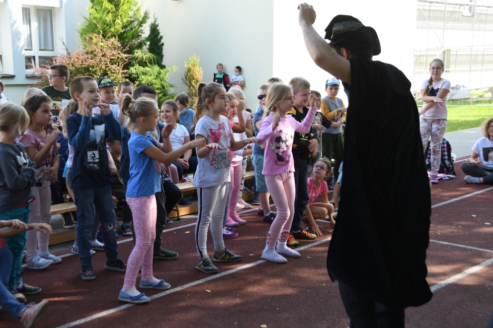 16 września gościliśmy w naszej szkole aktorów krakowskiego Teatru „Kurtyna”, którzy zaprezentowali spektakl pt.: „Magia słowa”. Aktorzy zabrali nas w magiczną podróż do świata magii i czarów. To był zabawny, a zarazem pouczający spektakl mający na celu rozbudzenie w widzu dziecięcej kreatywności oraz wyobraźni, którą zabijają urządzenia elektroniczne typu smartfony czy tablety uczący szacunku do osób starszych. Dzieci dowiedziały się, że zawsze warto mówić prawdę oraz używać magicznych słów takich jak: proszę, dziękuję, przepraszam. Wszystkim uczestnikom spektaklu spodobała się historia odegrana przez aktorów. Mali widzowie spędzili ten czas bardzo miło i pożytecznie.